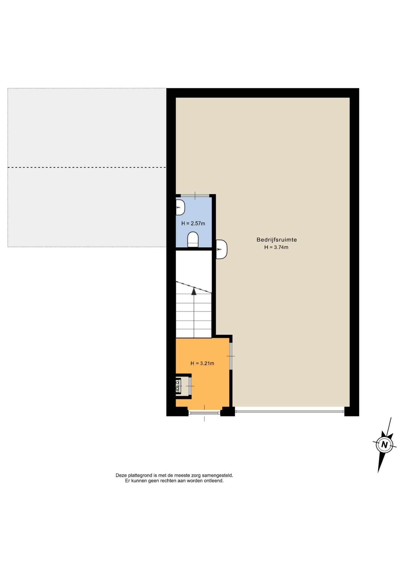 - begane grond vrije hoogte circa 3.70 m¹;
