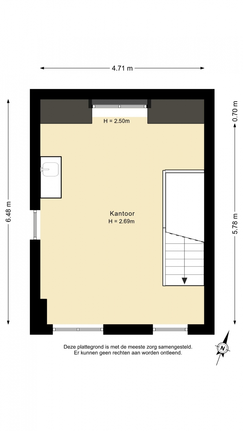 - begane grond vrije hoogte circa 3.70 m¹;