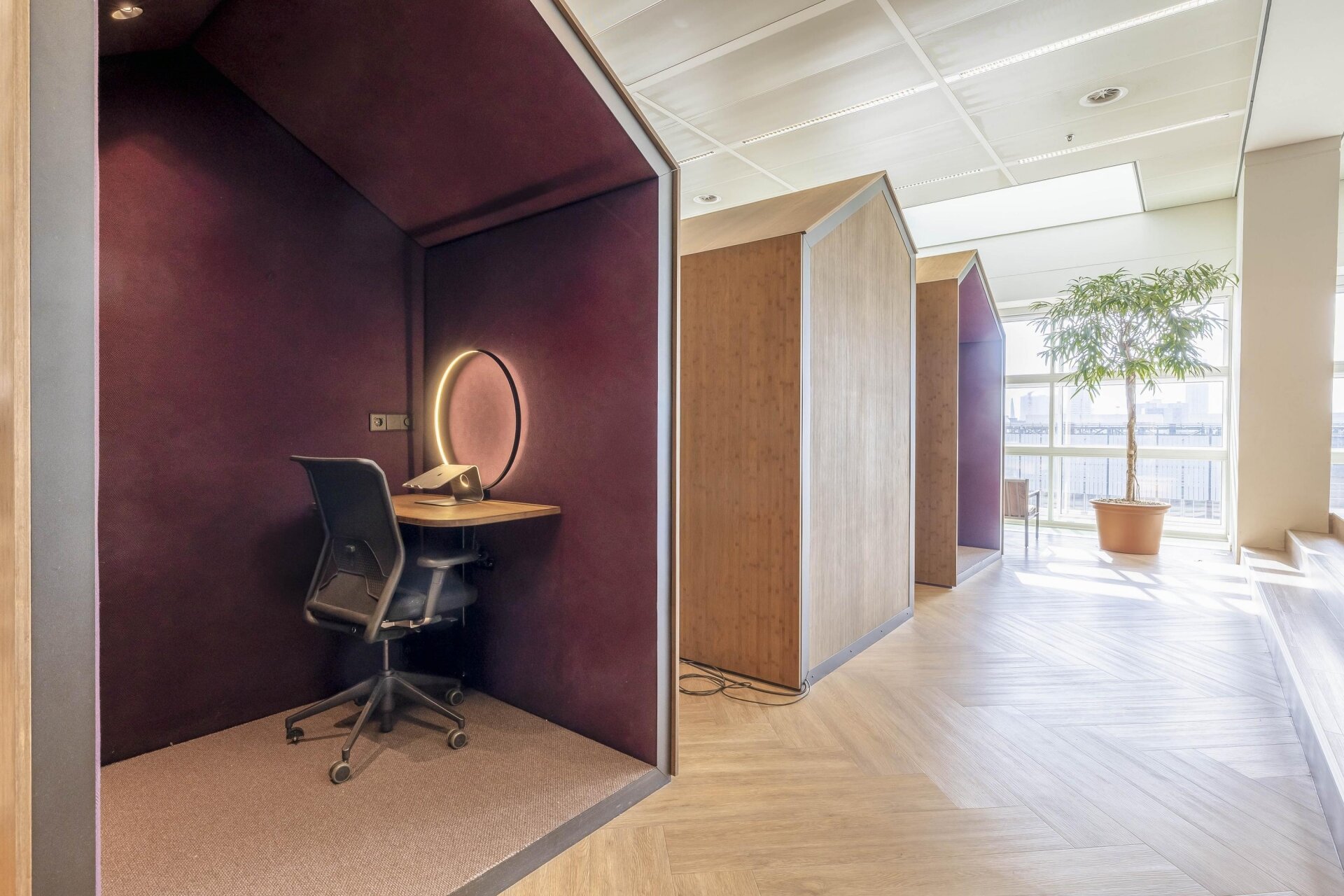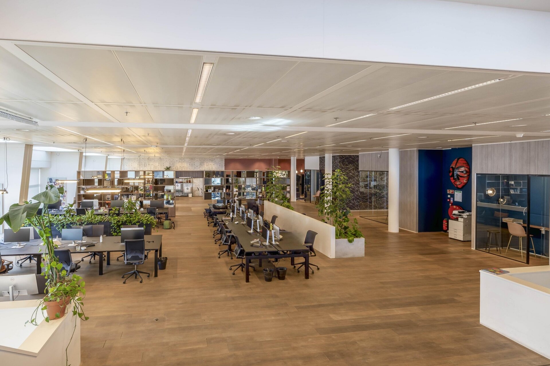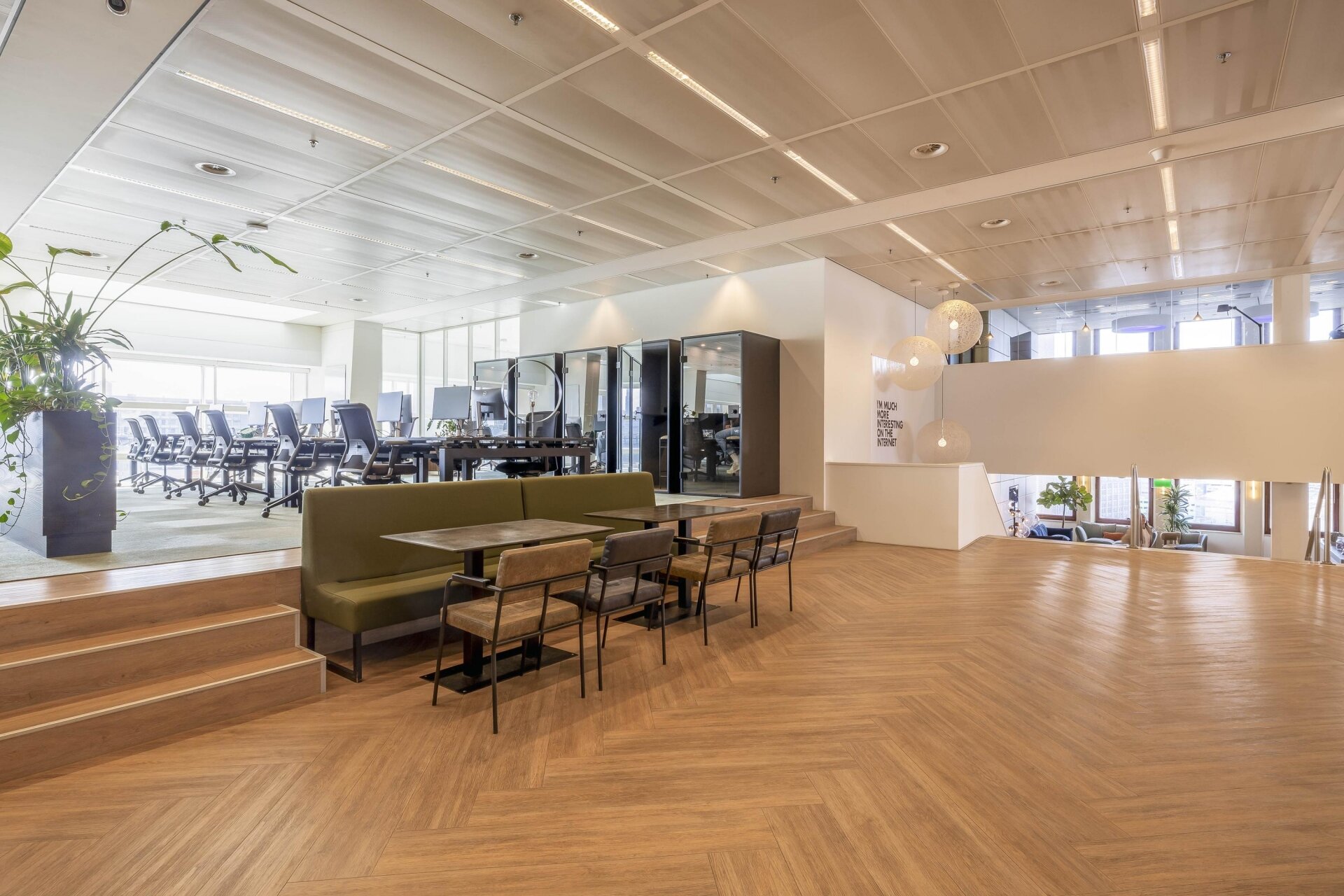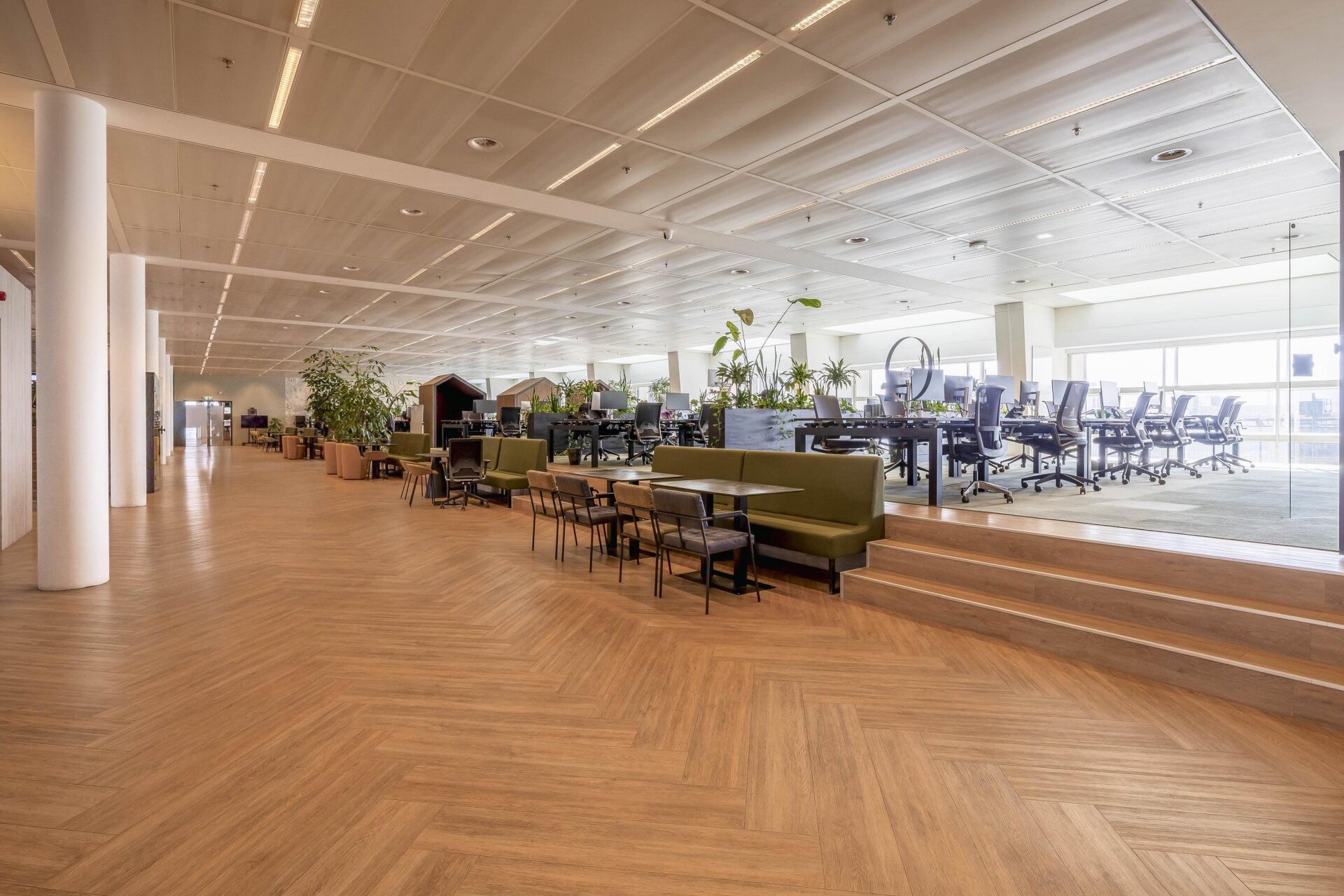 Belangrijk: de minimale afname is 12 werkplekken. Meer werkplekken huren is uiteraard mogelijk, tot een maximum van 48. De werkplekken bevinden zich in een open space omgeving, de ruimte is niet afsluitbaar.