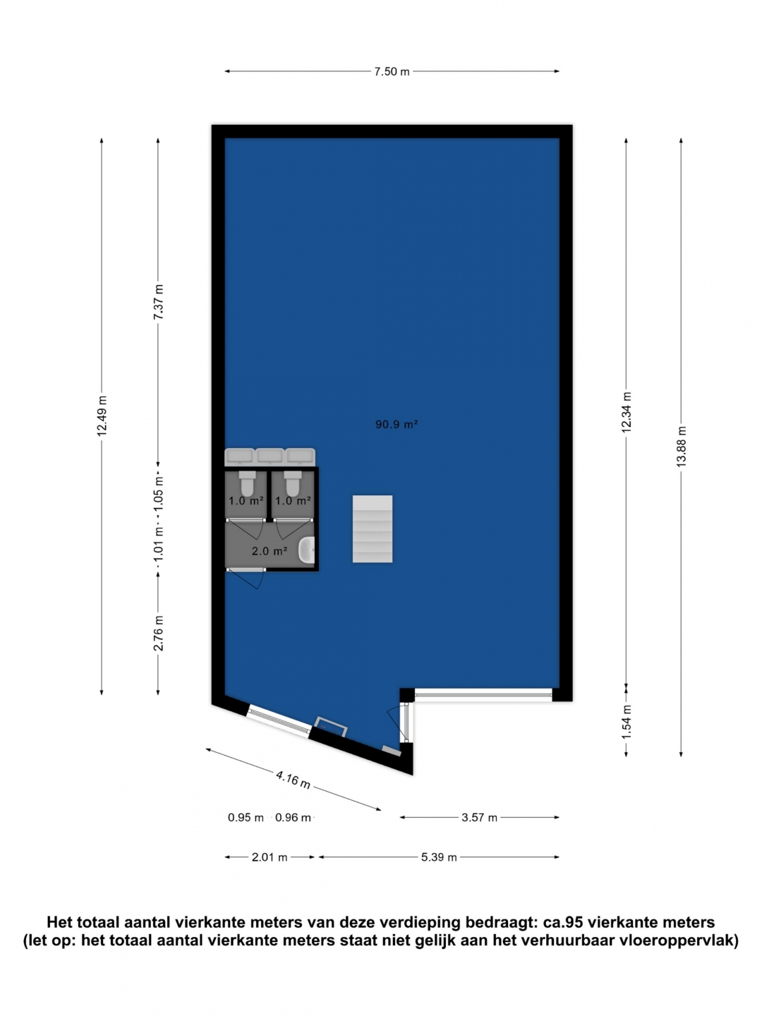 - verdieping circa 87 m² kantoorruimte.