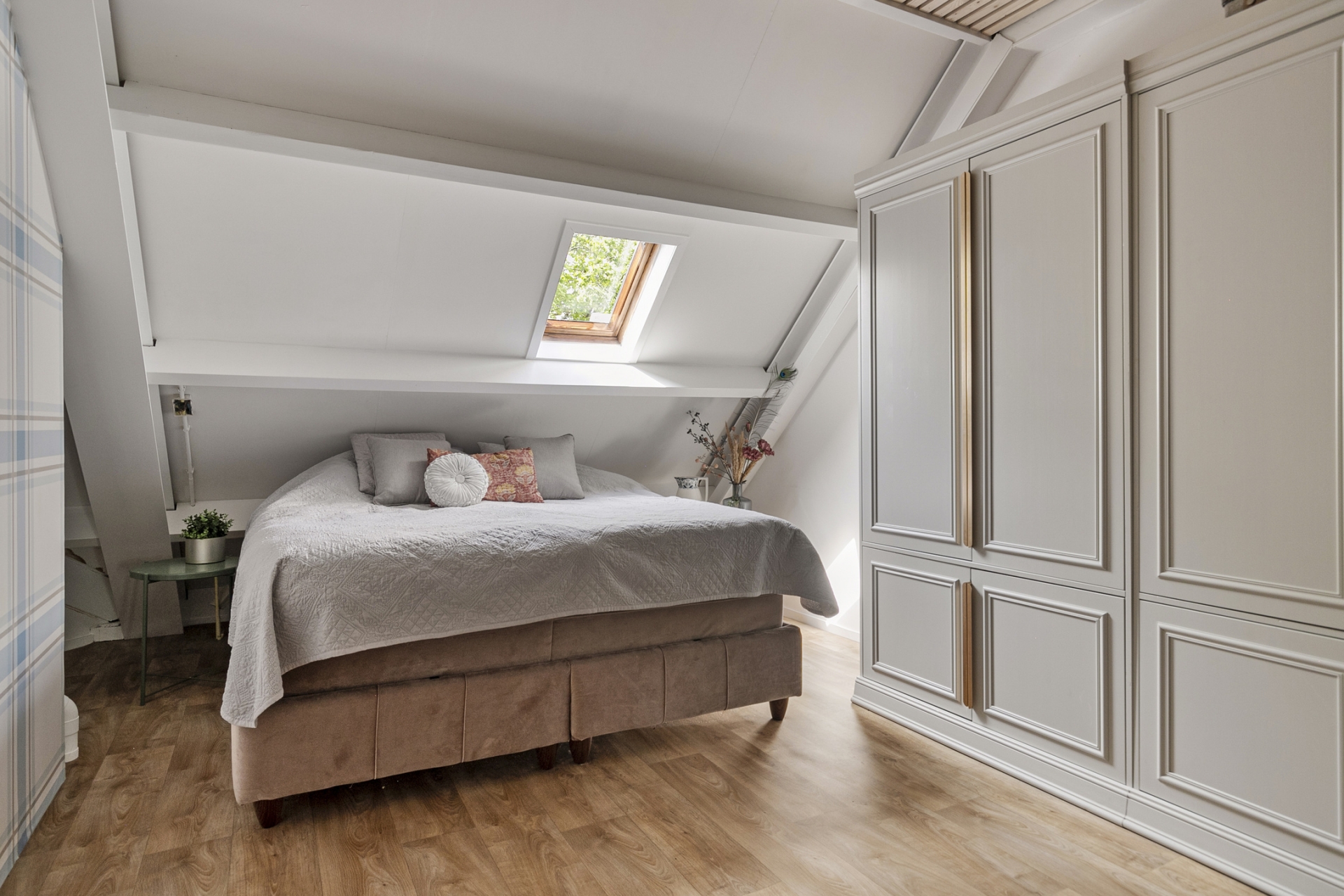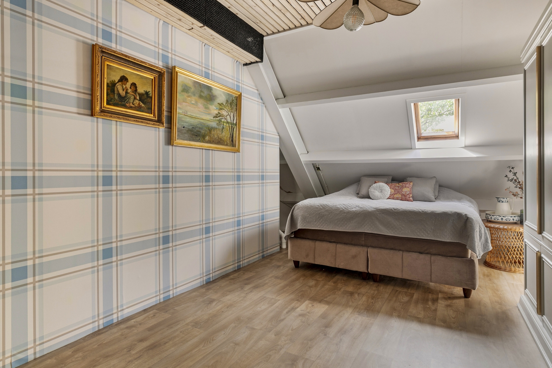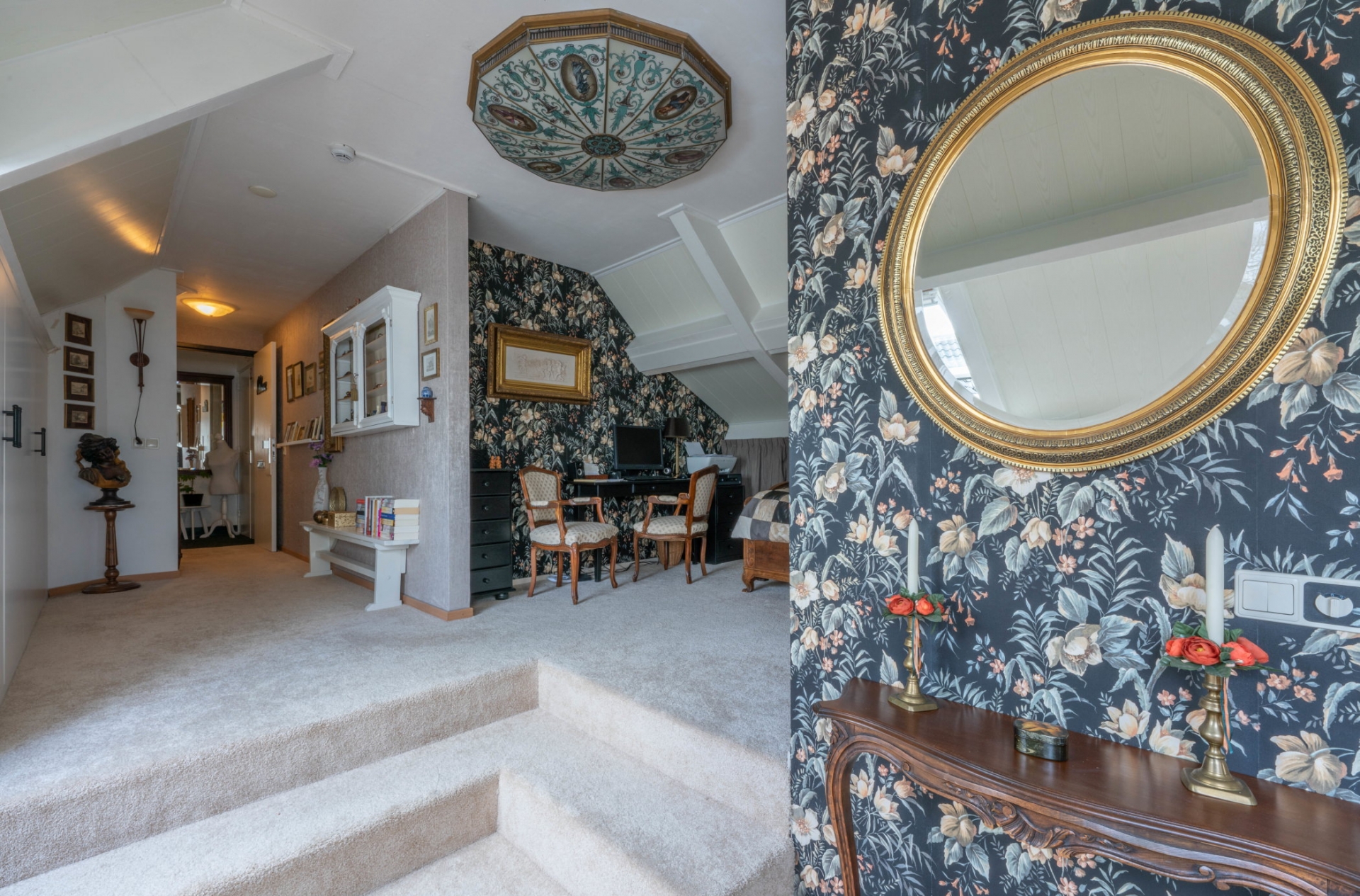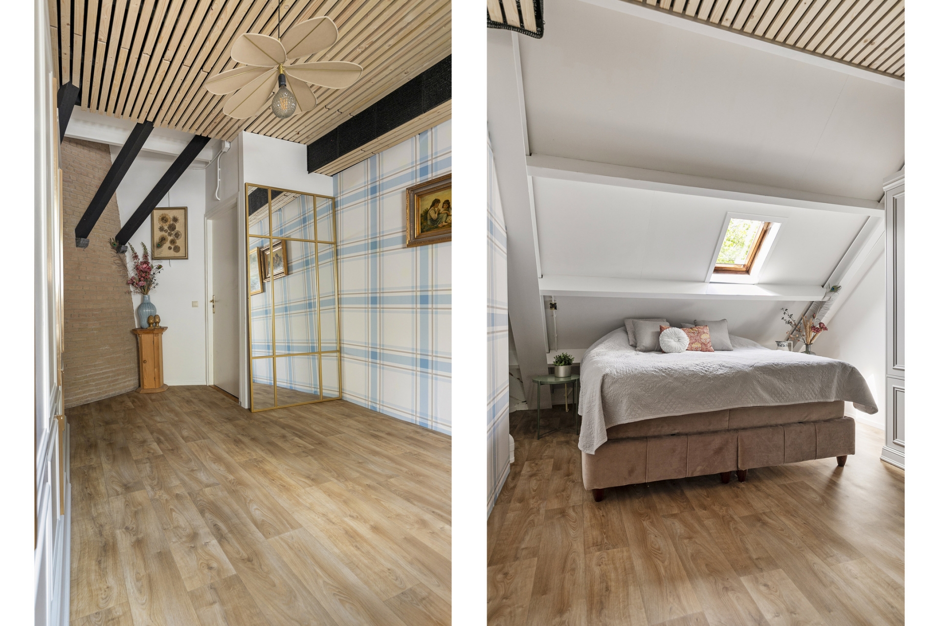 De rechtervleugel is een open ruimte waarbij u tot in de nok kunt kijken, wat een zeer ruimtelijk effect geeft mede door de vele raampartijen.