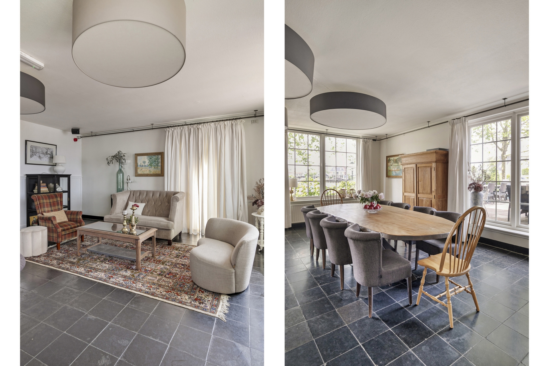 De linkervleugel heeft wel een plafond, in deze vleugel is de professionele keuken gebouwd, met daarachter een mooie kamer/serre. Vanuit alle ruimtes heeft u uitzicht op de Hollandsche IJssel.