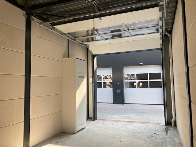- elektrische bediende geïsoleerde sectionaaldeur (3.2 m1 b. x 3.6 m1 h.) met loopdeur;