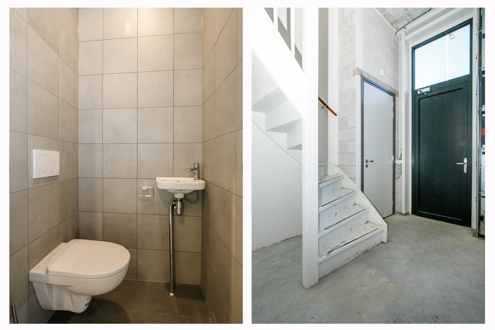- betegelde toiletruimte met toilet en fonteintje (kantoorunit);