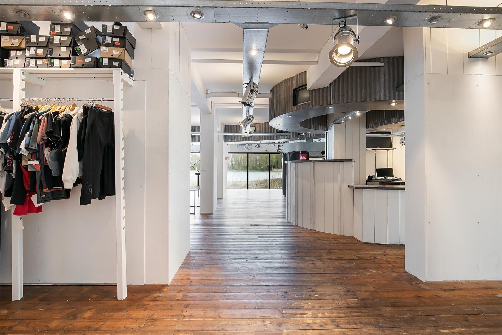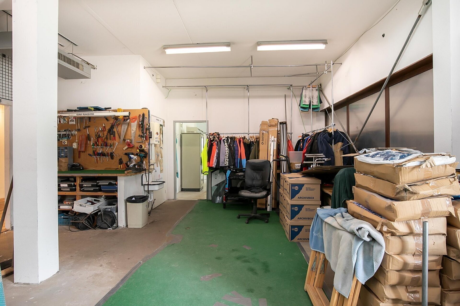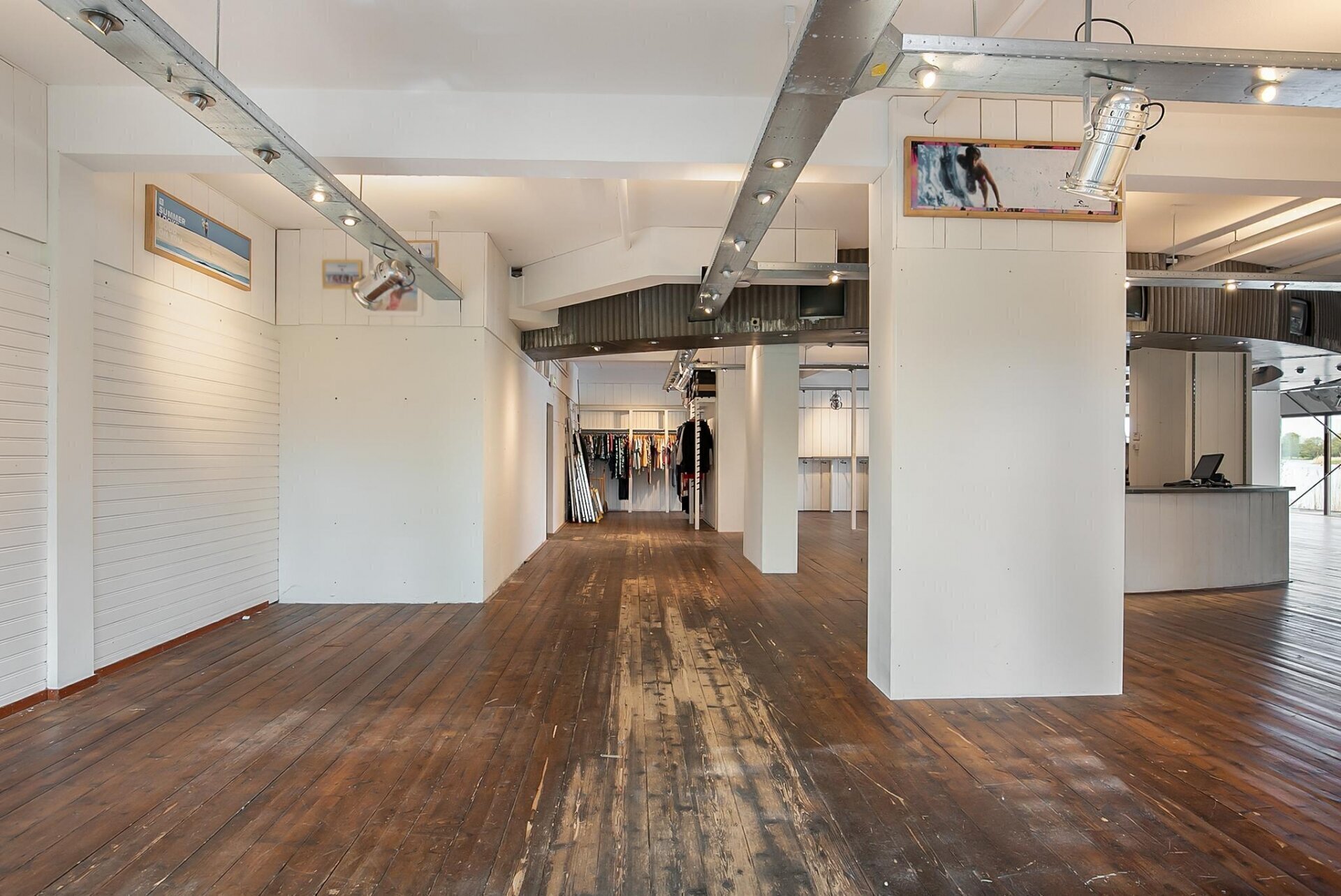 Strandweg 29 begane grond 383 m². Thans is het een mooie lichte ruimte met twee kantoren en magazijn.