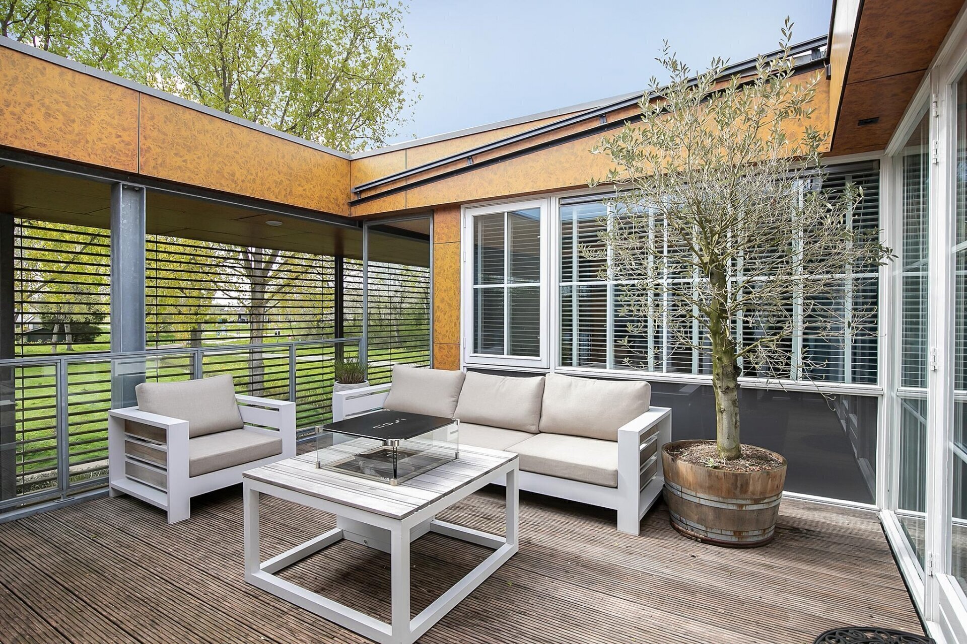 Dit luxe appartement kijkt uit over de Zevenhuizerplas, heeft 3 slaapkamers, interne berging, een riante leefkeuken, luxe badkamer en patio.