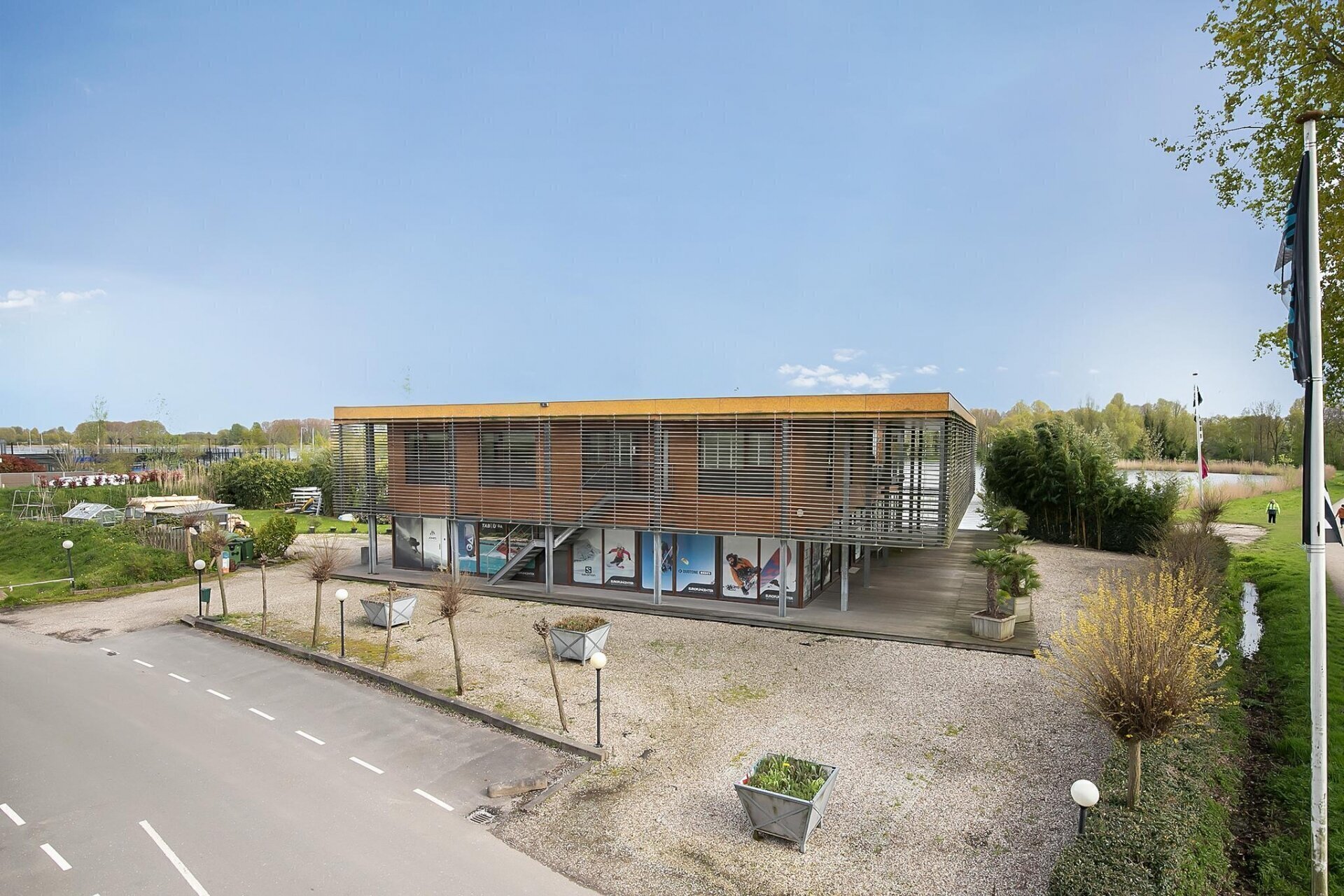 Het gebouw bestaat uit een bedrijfsruimte met daarboven twee riante appartementen met patio. Het bestemmingsplan geeft veel mogelijkheden voor de exploitatie, wij hebben een lijst van reeds besproken bedrijfsactiviteiten beschikbaar waarover al met de gemeente en recreatieschap is gesproken. In de ruime zin van het woord moet er iets ‘recreatiefs’ ondernomen worden.