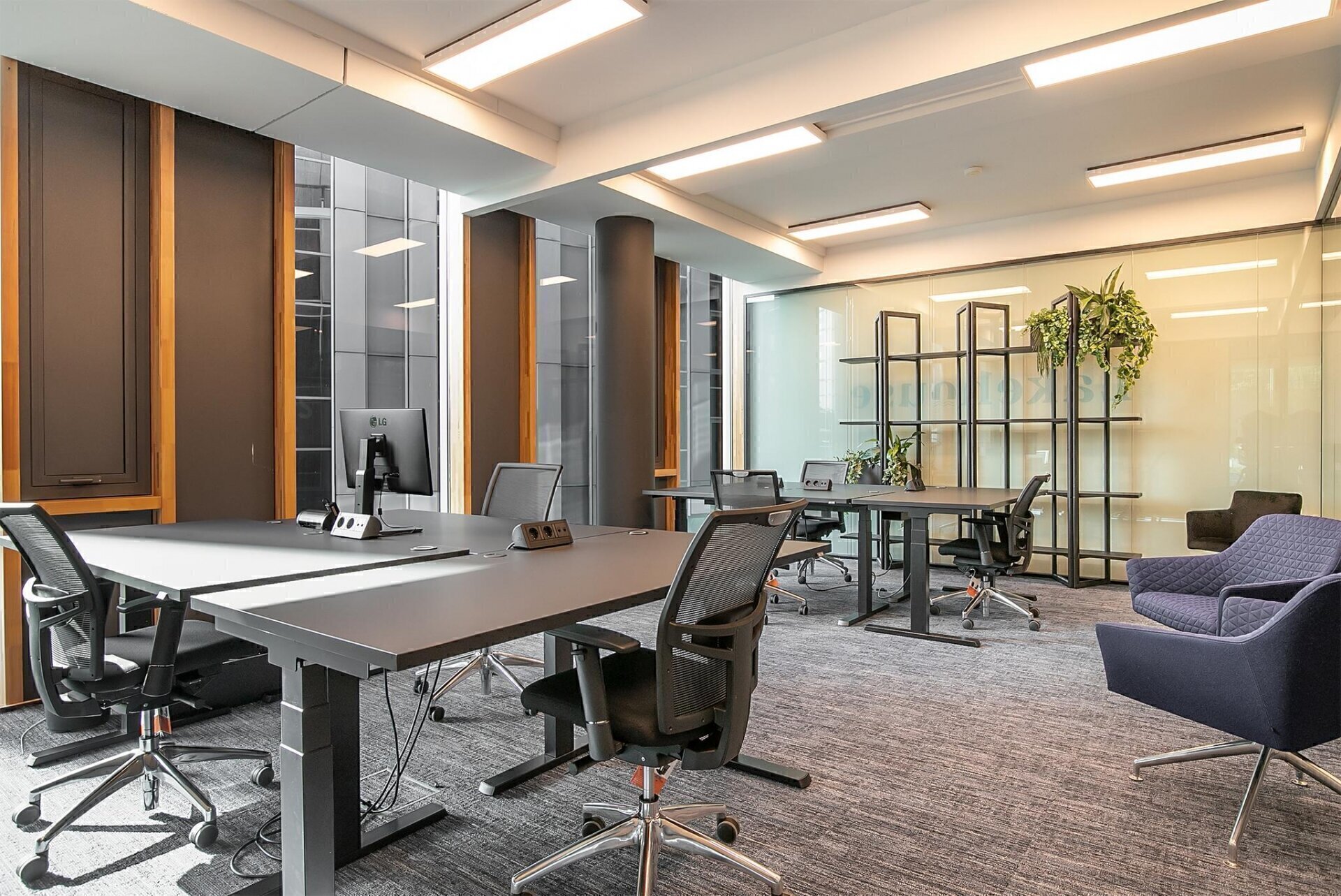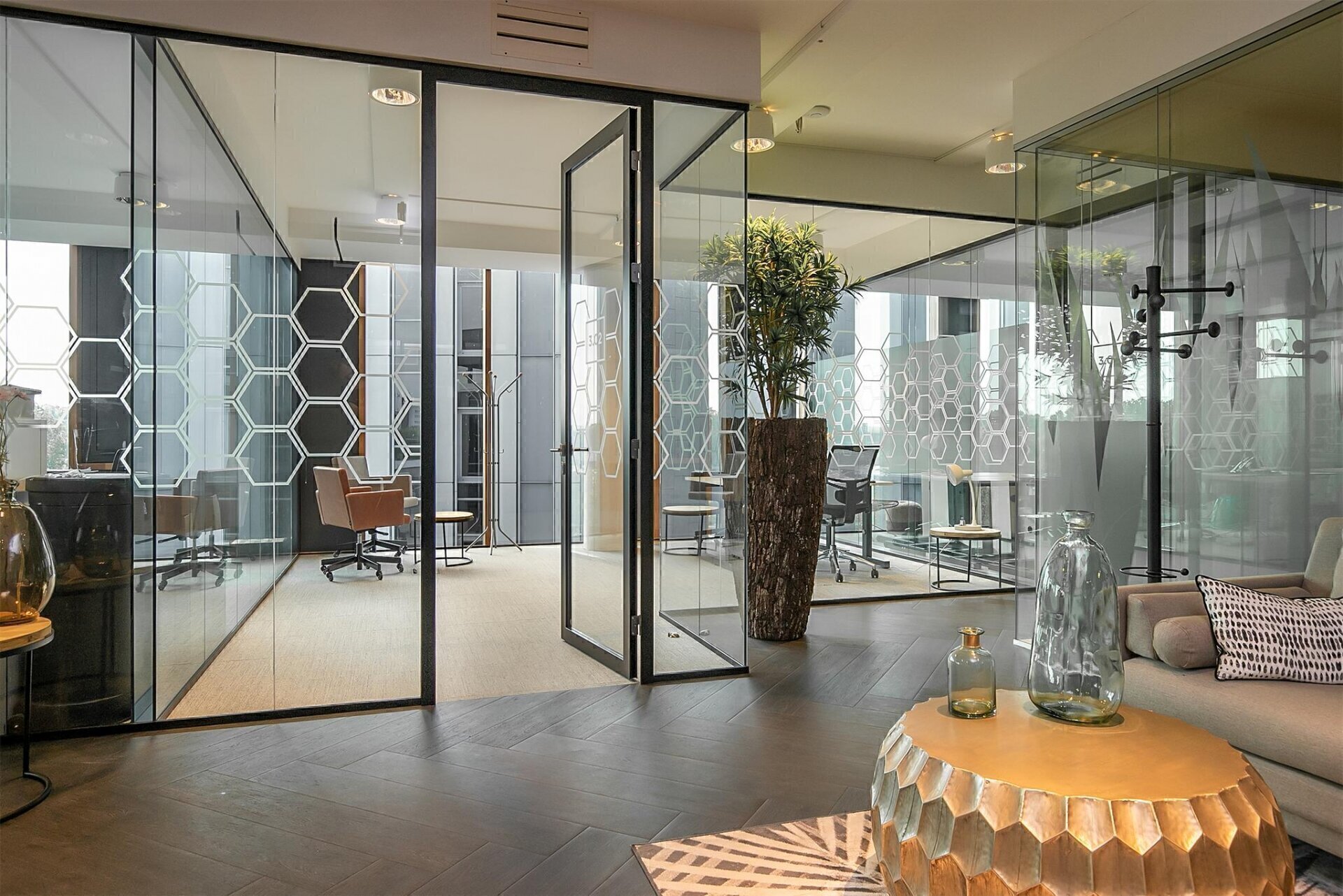 Opleveringsniveau: de begane grond is ingericht met een receptie en kleine ontvangstlobby. Op de begane grond worden kantoorruimtes ingericht met een kant en klaar opleveringsniveau. Bezoek kan, indien gewenst, opgevangen worden of worden doorverwezen. Additionele receptiediensten (zoals telefoon-/postservice) zijn in overleg af te nemen. De kern van het gebouw biedt ruimte aan een trappenhuis met lift en 2 separate sanitaire groepen. Trap en lift zijn luxe afgewerkt met bamboe treden en balustrades van glas. De kern loopt door tot in de ondergrondse parkeergarage, waardoor het kantoorpand via de parkeergarage direct bereikbaar is.