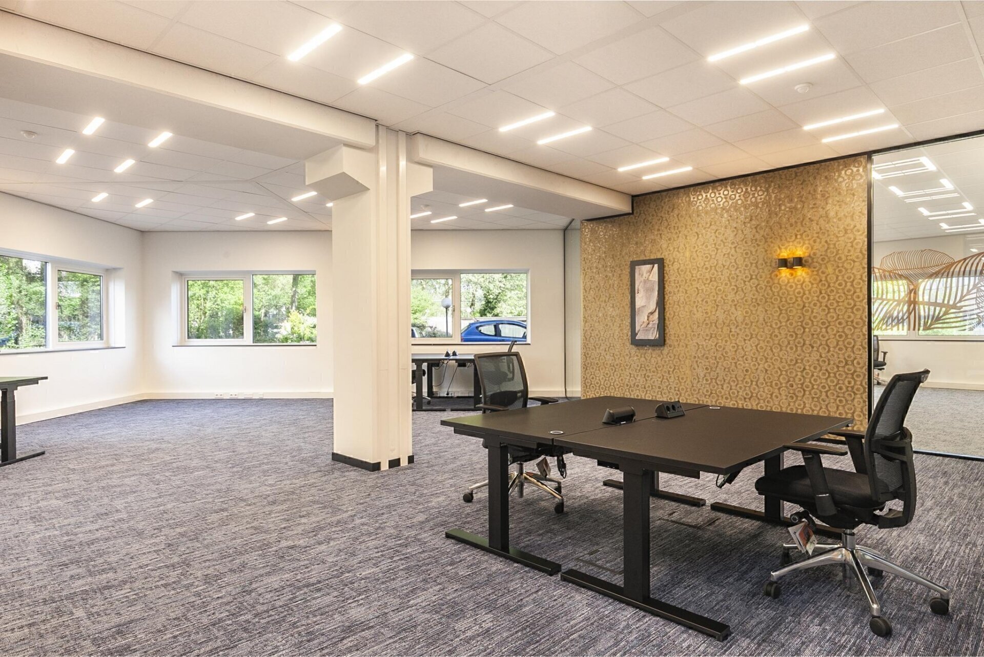 - de kantoren zijn voorzien van daglicht gestuurde LED verlichting. De verlichting wordt door middel van aanwezigheidssensoren en daglichtregeling (armaturen raamzijde) automatisch bediend. Bediening is ook mogelijk via smartphone en tablet.