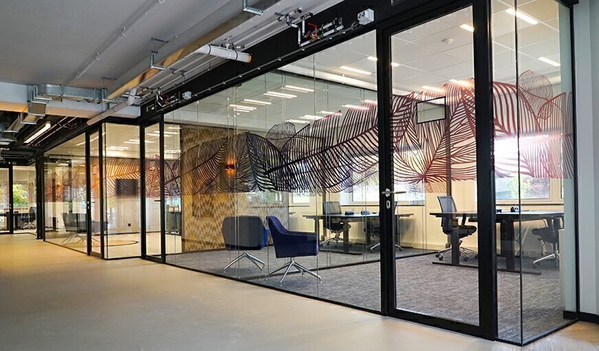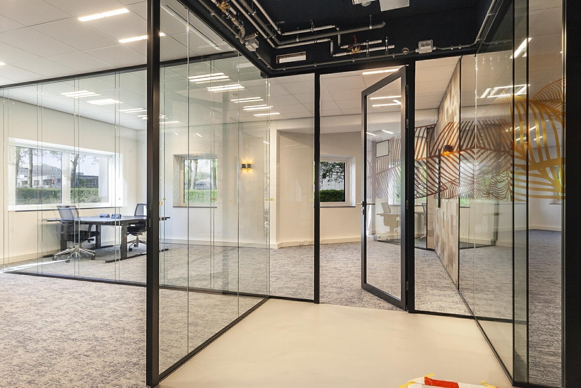 - in de kantoren is een wit uitneembaar akoestisch systeemplafond aangebracht.