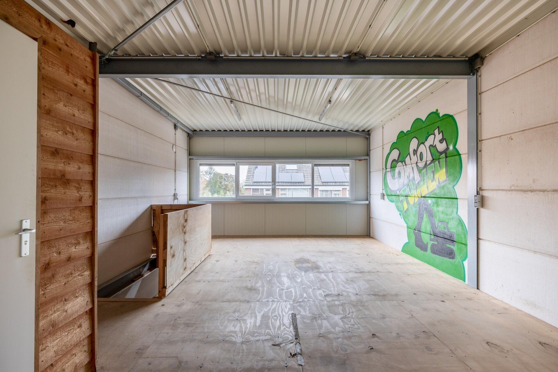 - elektronische bedienbare overheaddeur met afstandsbediening (afm. ca. 3,26/3,20 m1 (bxh);