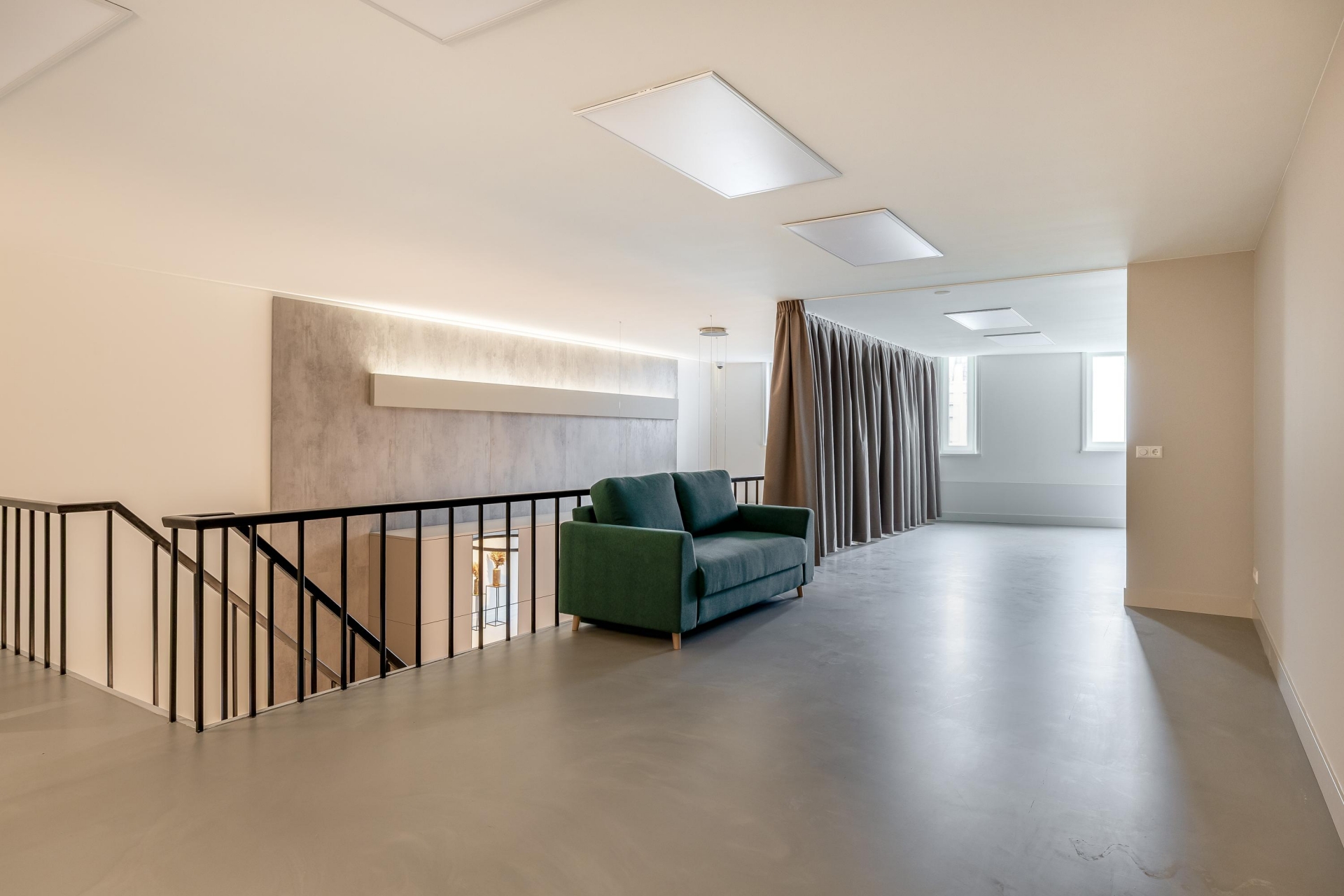 De 1e verdieping is een fraaie open vide en kan gebruikt worden als slaapkamer maar kan ook nog gesplitst worden.
