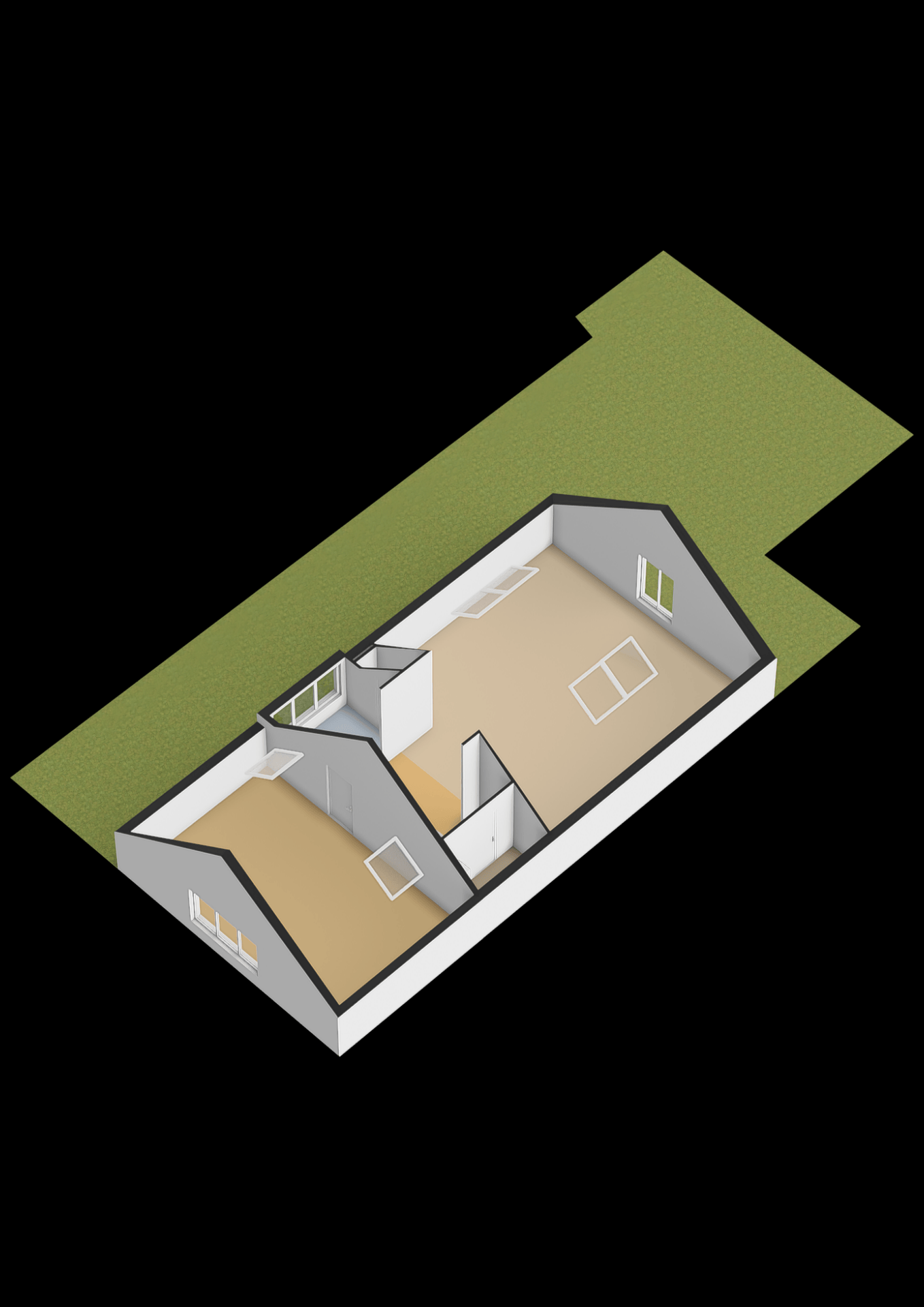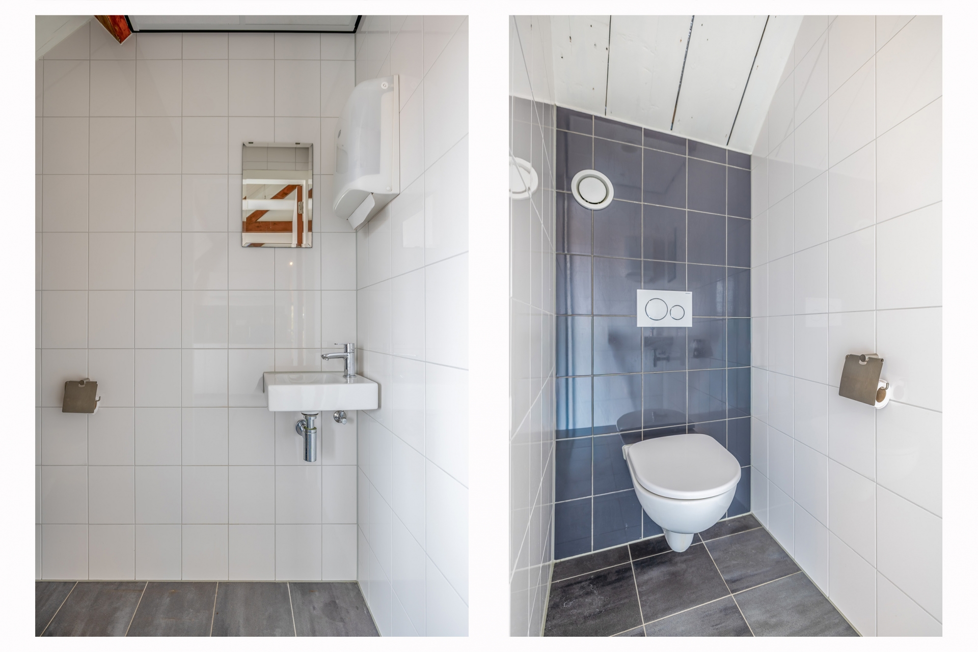 Vanuit de overloop loop je naar twee aparte kantoorruimtes: aan de linkerzijde bevindt zich een afsluitbare kamer van circa 37 m², ideaal als vergaderruimte of zelfstandig kantoor. Aan de rechterzijde ligt een royale open werkruimte van ongeveer 62 m², met een hoge nok, fraaie zichtbare balken en volop daglicht dankzij de dakramen en hoge raampartijen.