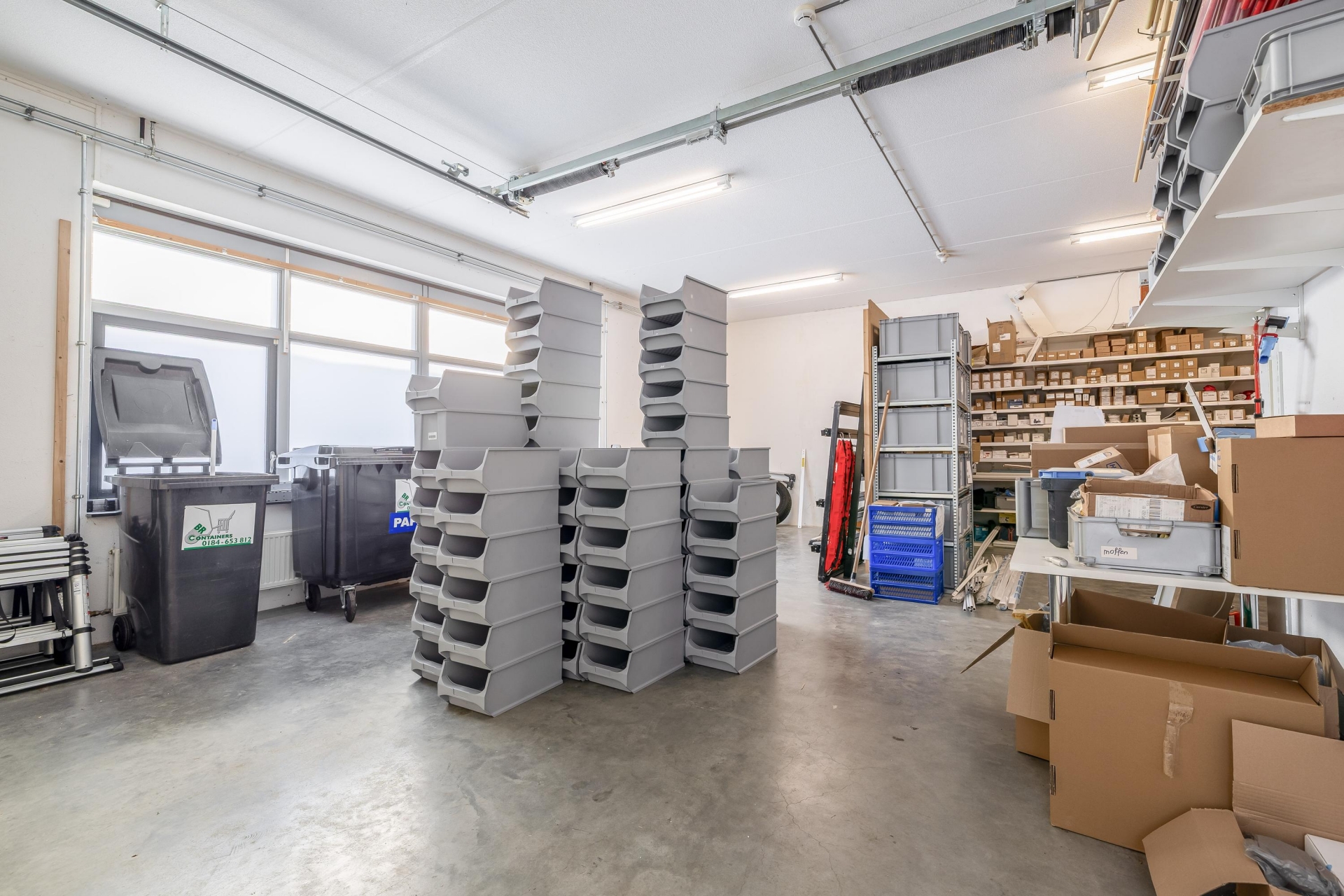 Bedrijfsruimte van circa 80 m² geschikt voor gebruik als magazijn en/of werkplaats. De ruimte is vrij indeelbaar en voorzien van een entree, hal met toilet, open trap naar de verdieping, toegang tot de bedrijfsruimte.