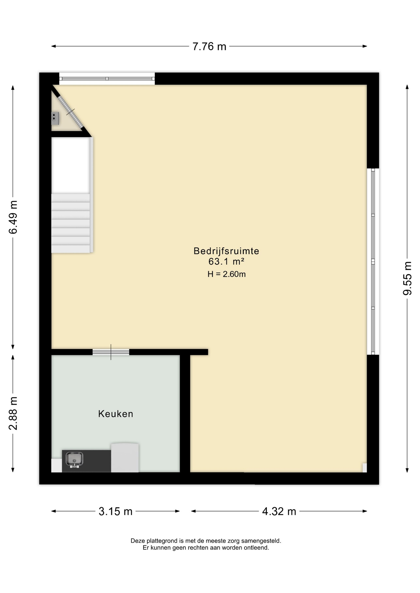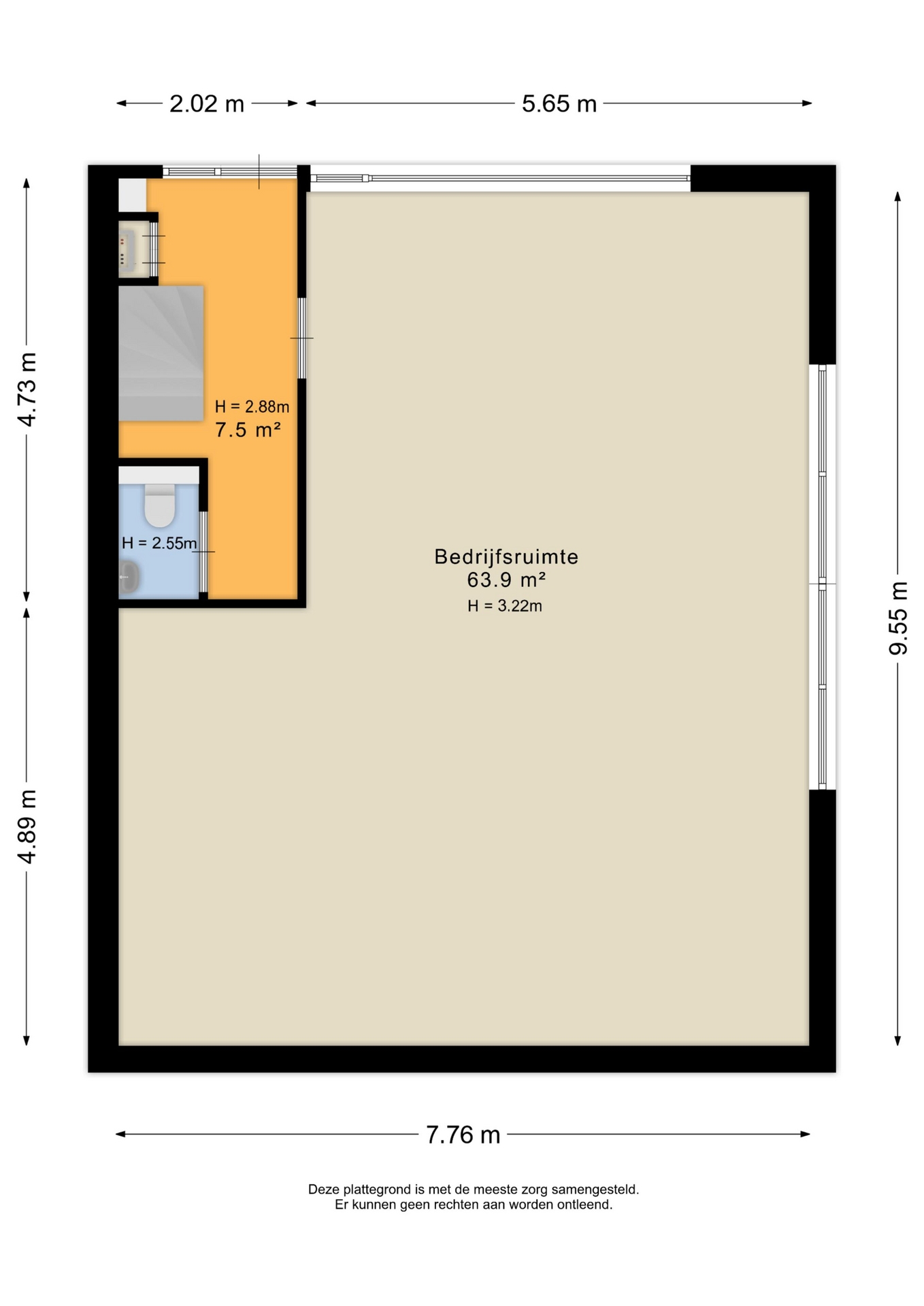 - vrije hoogte begane grond circa 3.00 m1;