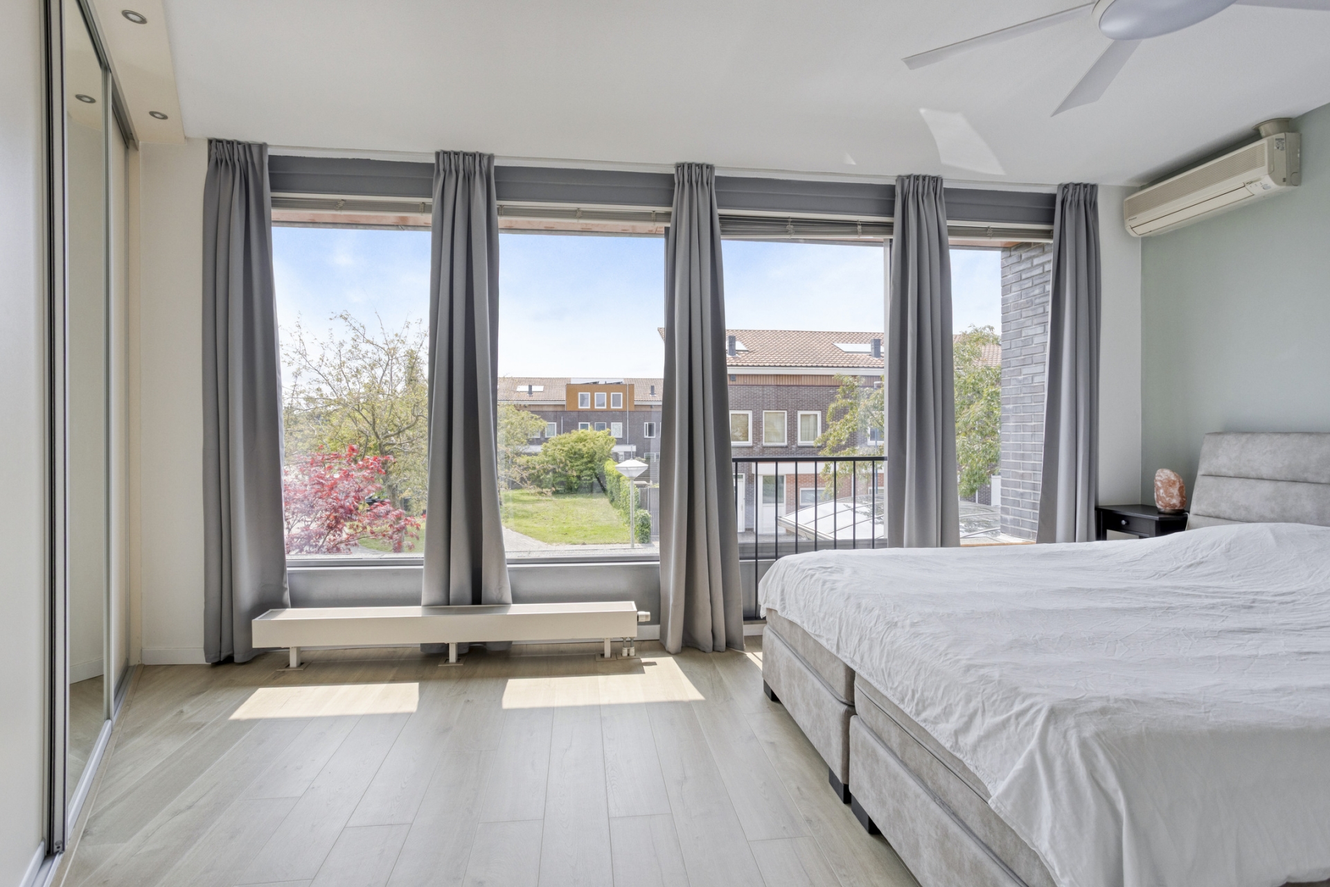 De woonruimtes zijn royaal opgezet en licht door de grote raampartijen. Elke woning heeft een eigen woonkamer met uitzicht op het groen rondom het huis. De keukens zijn praktisch ingericht en sluiten goed aan op de leefruimtes. In totaal zijn er drie moderne badkamers aanwezig, en door de verdeling over vier woonlagen is er altijd een rustige plek te vinden. De slaapkamers zijn verdeeld over alle verdiepingen, met ruimte voor grote bedden, bureaus en kasten. De huidige bewoners hebben de woning keurig onderhouden; de afwerking is strak en eigentijds. Dankzij HR++ beglazing, aluminium kozijnen, dak-, muur- en vloerisolatie, en 12 zonnepanelen is dit huis ook nog eens energiezuinig (energielabel A).