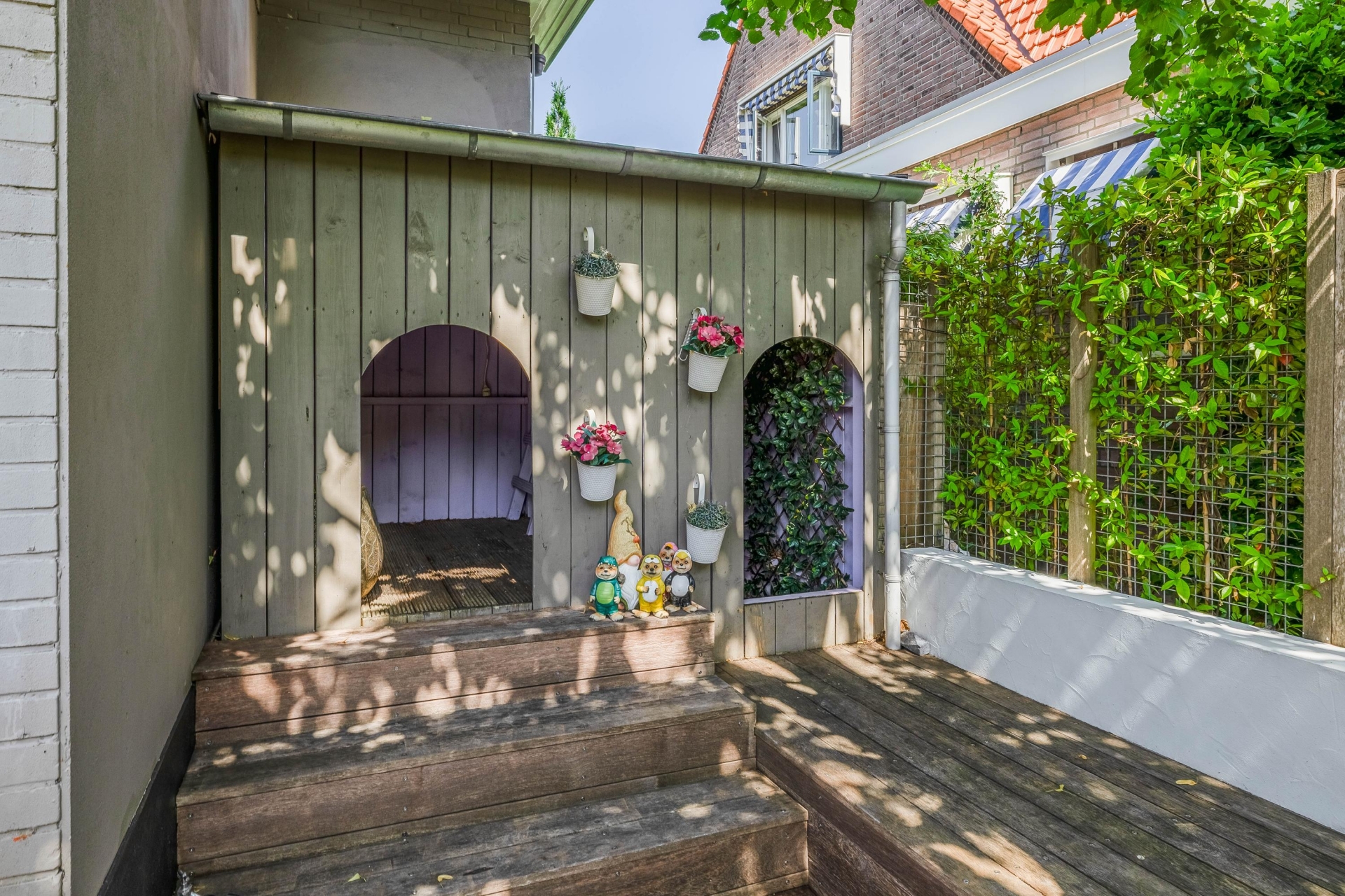 - Fraai aangelegde zonnige tuin met diverse terrassen en sfeervolle overkapping