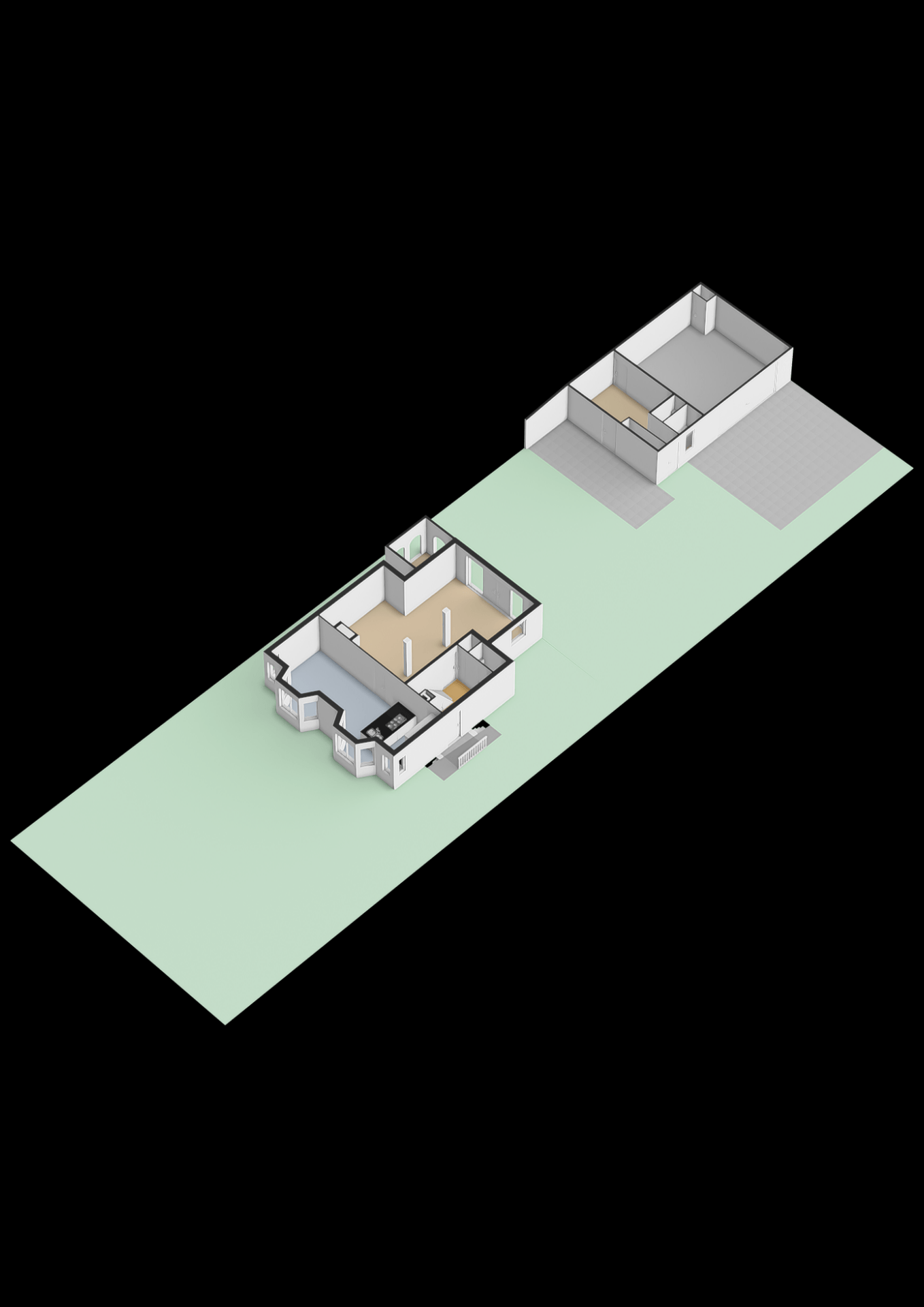 - Achtertuin nagenoeg geheel onderheid