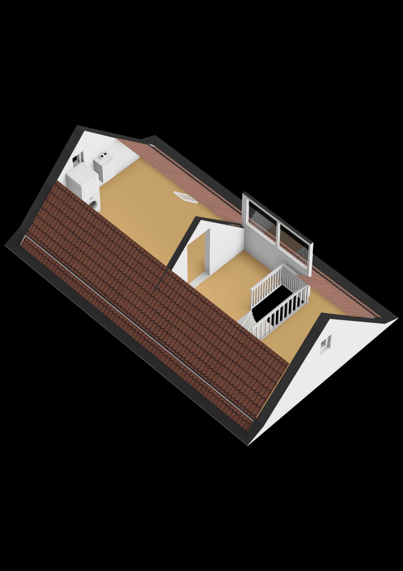 Open ruimte met dakkapel aan de achterzijde. Zeer geschikt is voor een werkplek of extra slaapkamer.