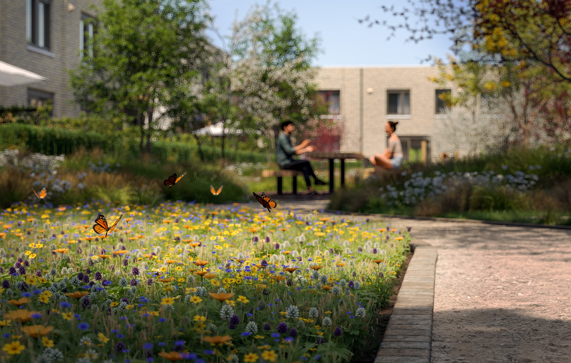 Alle herenhuizen hebben aan de achterzijde een privé-daktuin, bereikbaar vanaf de eerste verdieping. Deze tuinen sluiten aan op de gezamenlijke groene daktuin. Door deze opzet heb je een fijne plek om buiten te zijn en is er ruimte voor interactie met je buren.