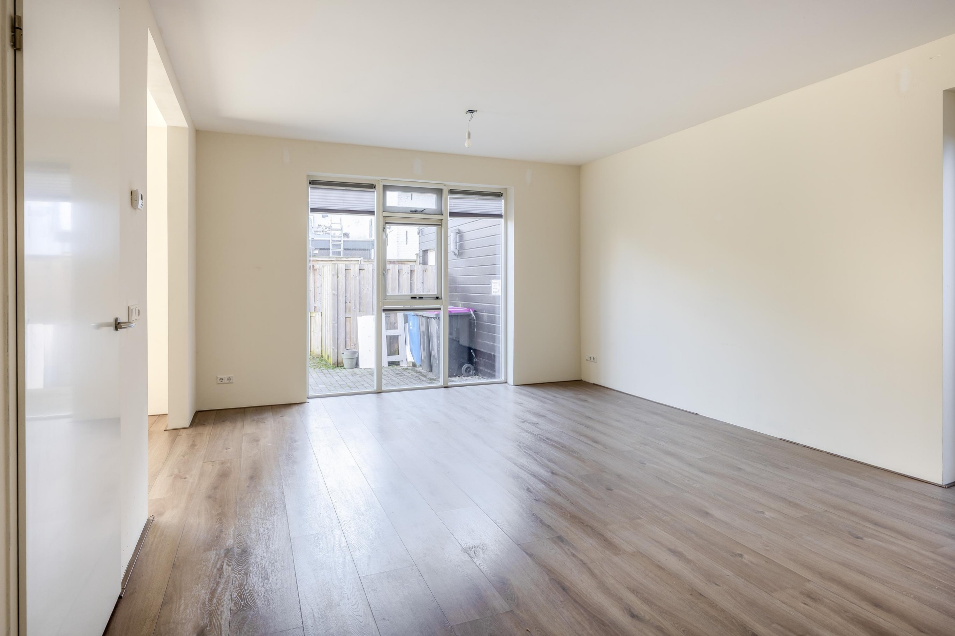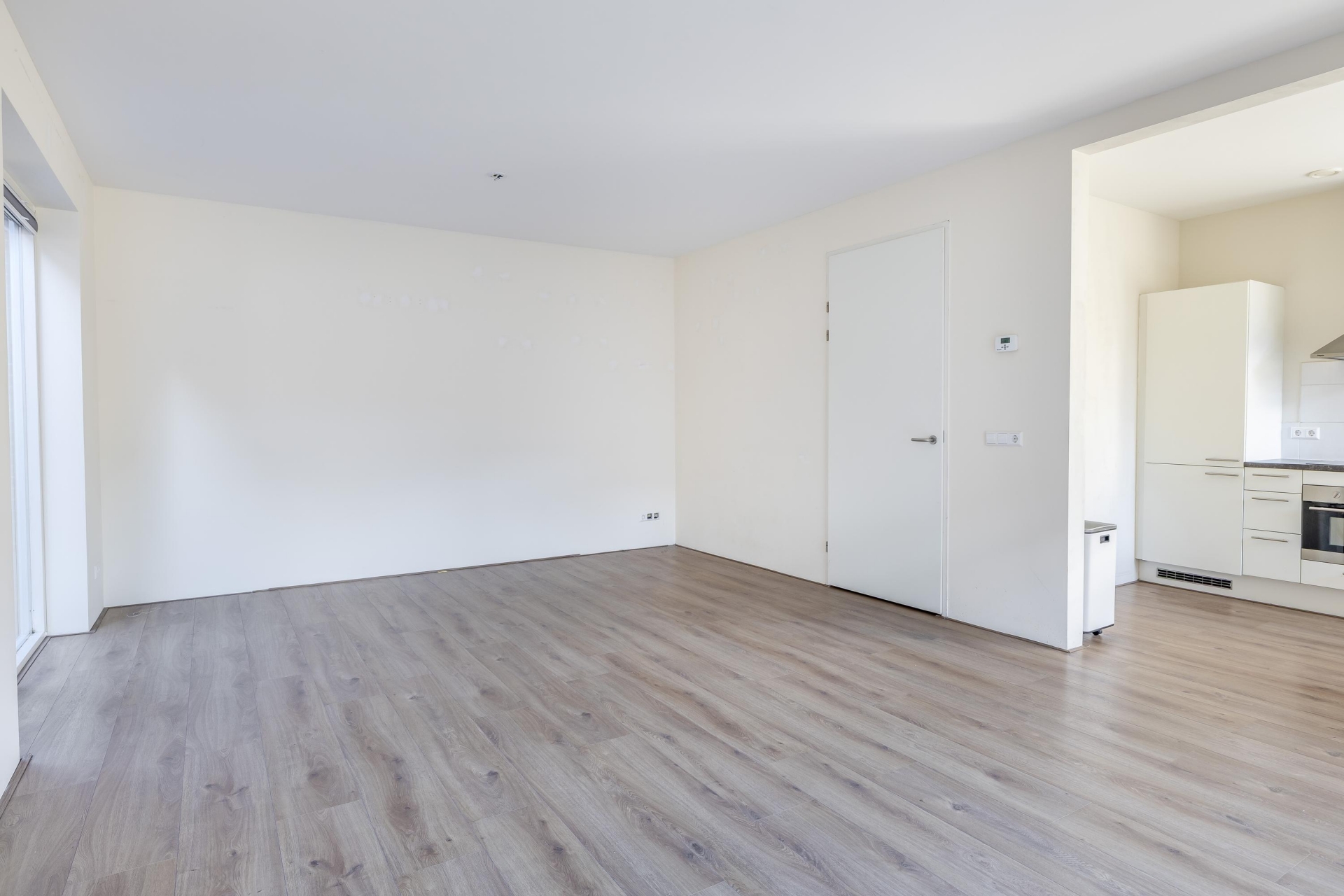Entree woning vanuit gezamenlijk terrein; hal met meterkast; ruime interne berging met technische installatie zoals de warmtepomp en de aansluiting voor de wasmachine en droger; moderne badkamer met douche, wastafel en hangend toilet. Lichte woonkamer van circa 27.5 m2 met moderne open keuken (circa 7.5 m2) v.v. een koelkast, vrieskast, kookplaat, combi-magnetron, afzuigkap en een vaatwasser. Patio van circa 9 m2.