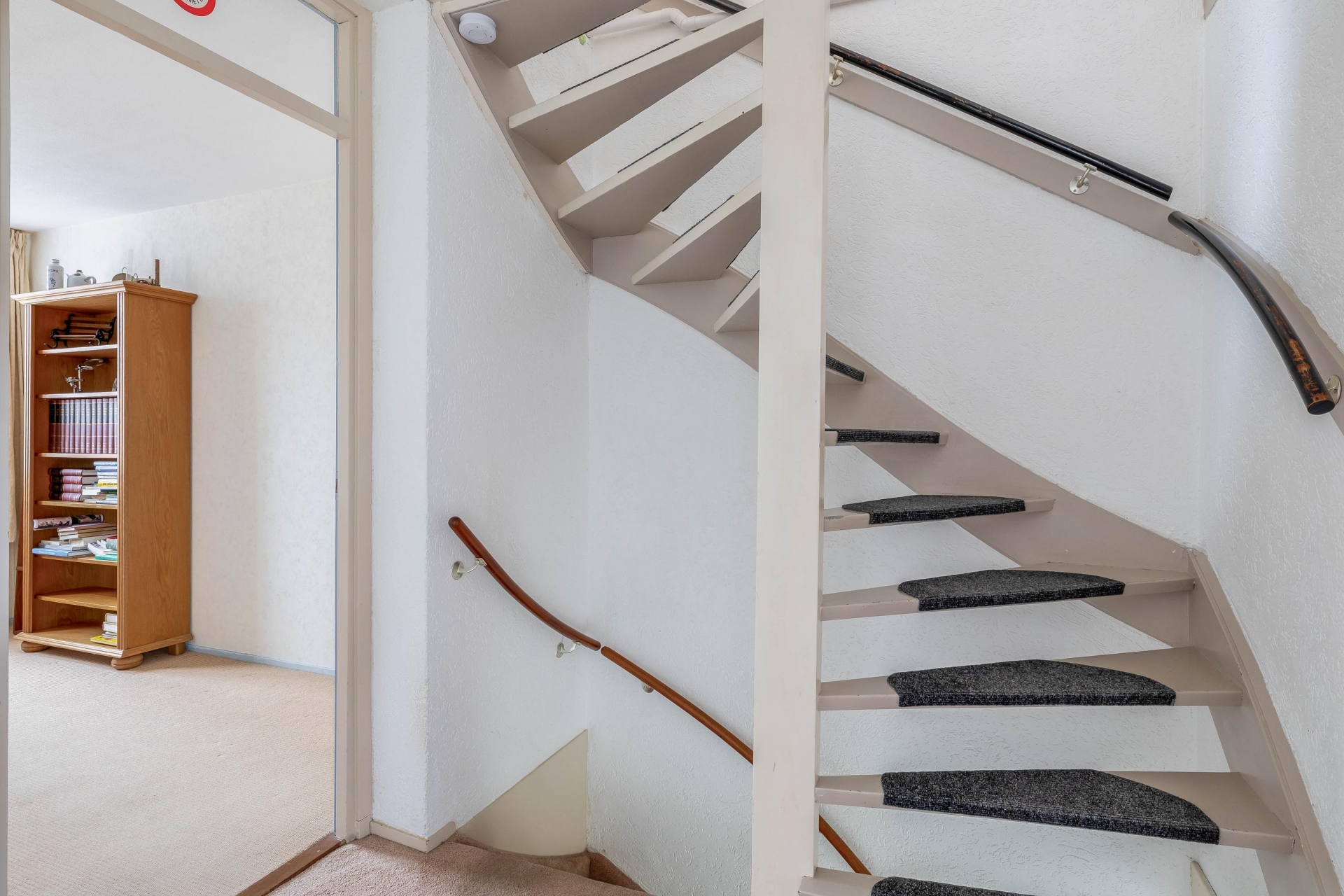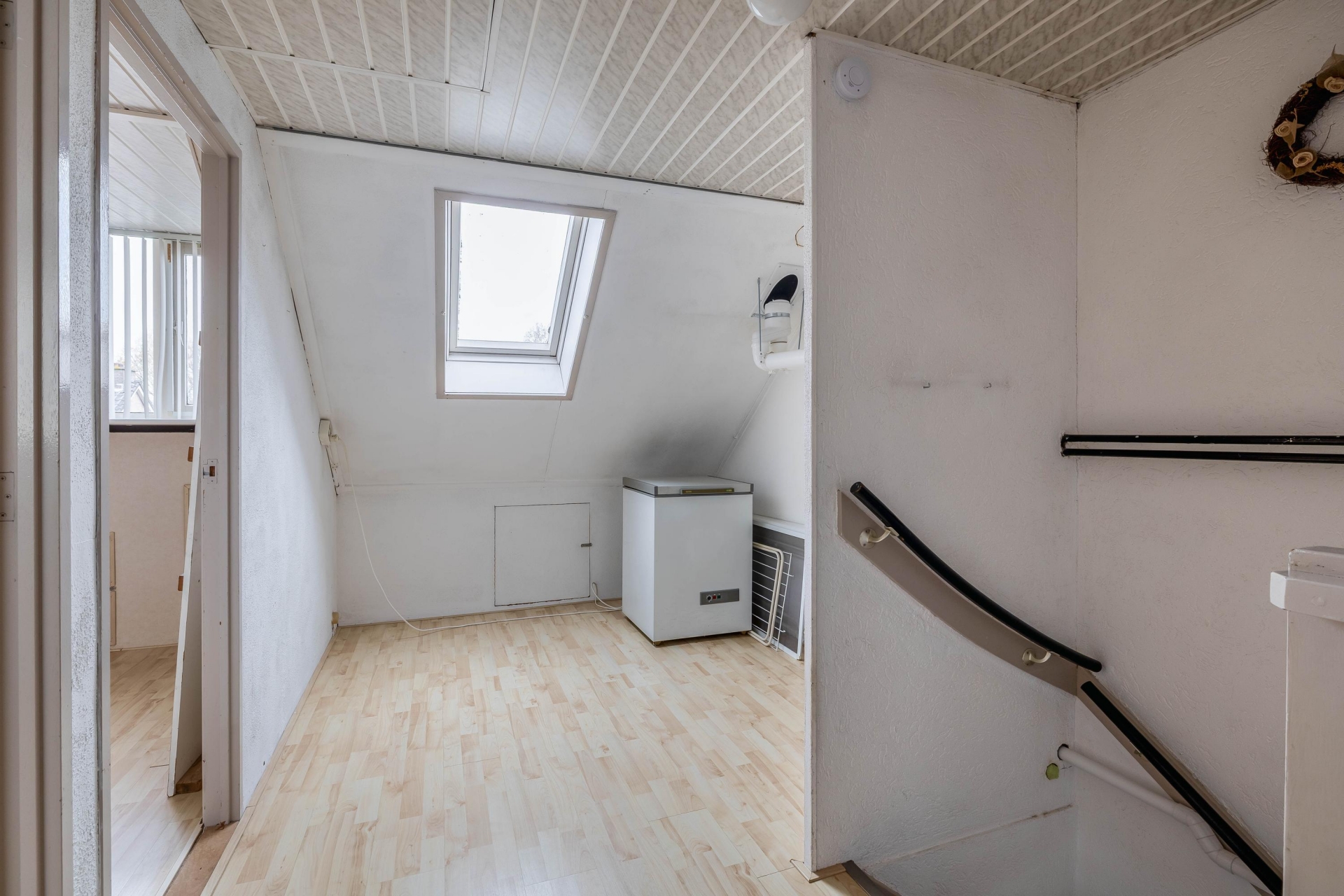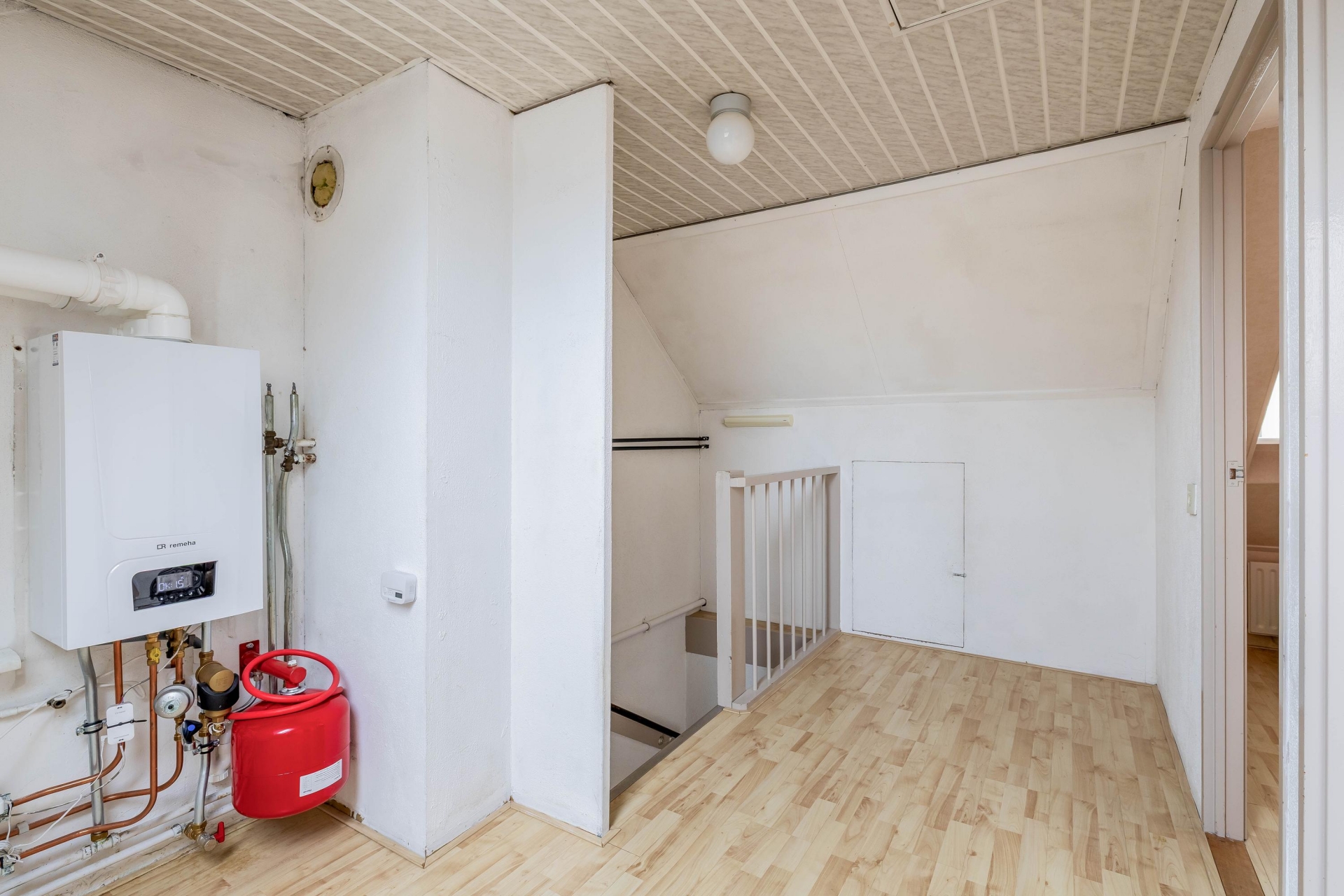 Via een vaste trap bereikt u de tweede verdieping. Hier vindt u een overloop met de opstelling van de Remeha CV-ketel (2025), een bergvliering en toegang tot nog eens twee (slaap)kamers. Beide kamers zijn voorzien van een dakkapel en praktische bergruimte achter de knieschotten.
