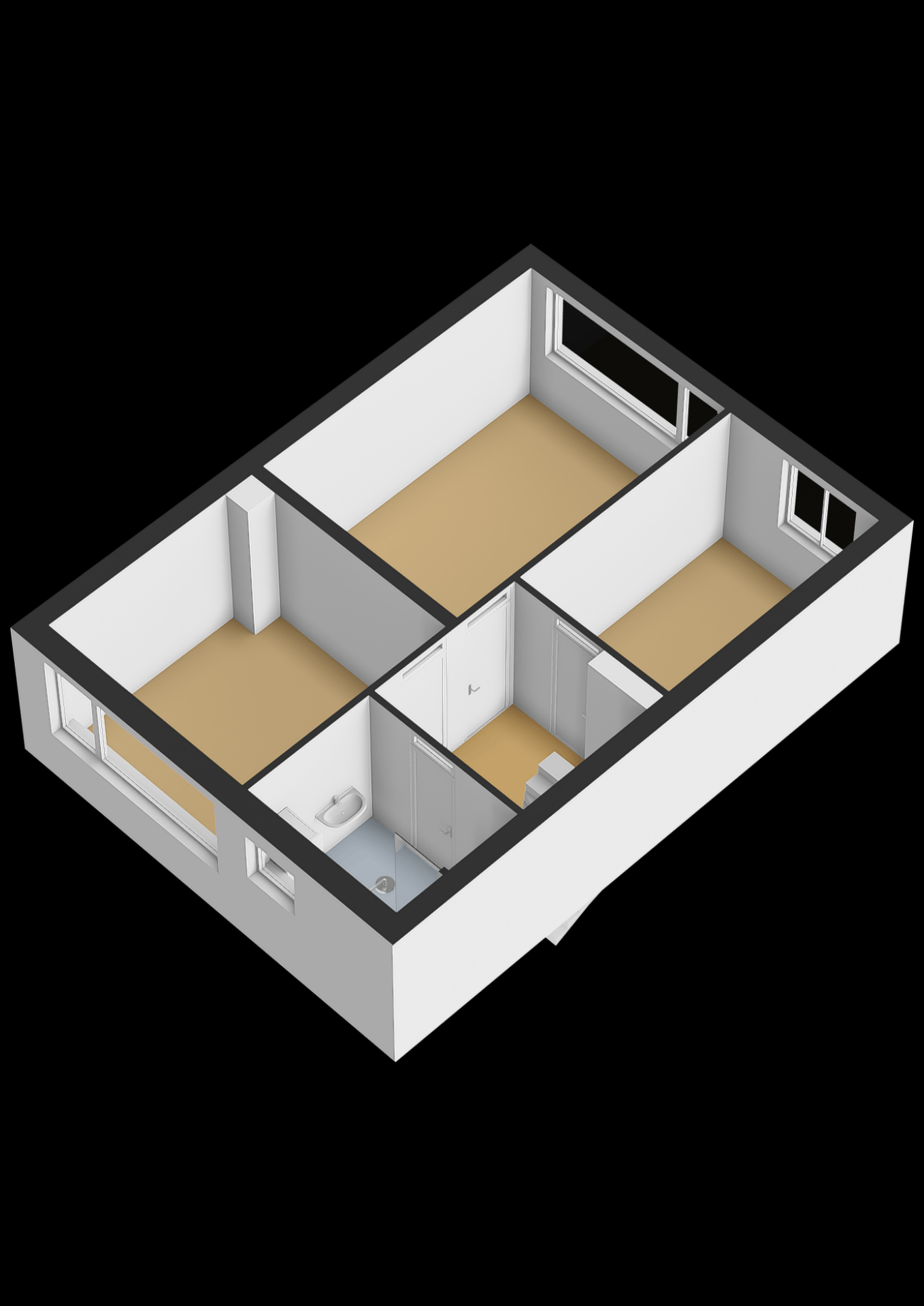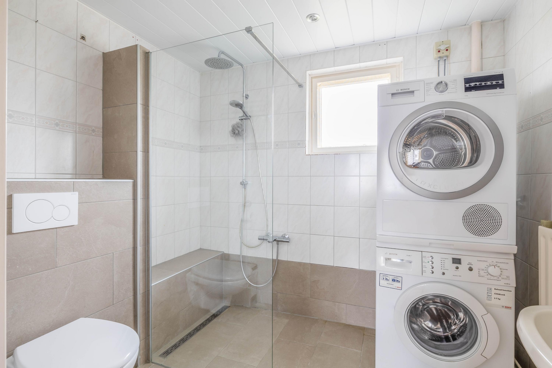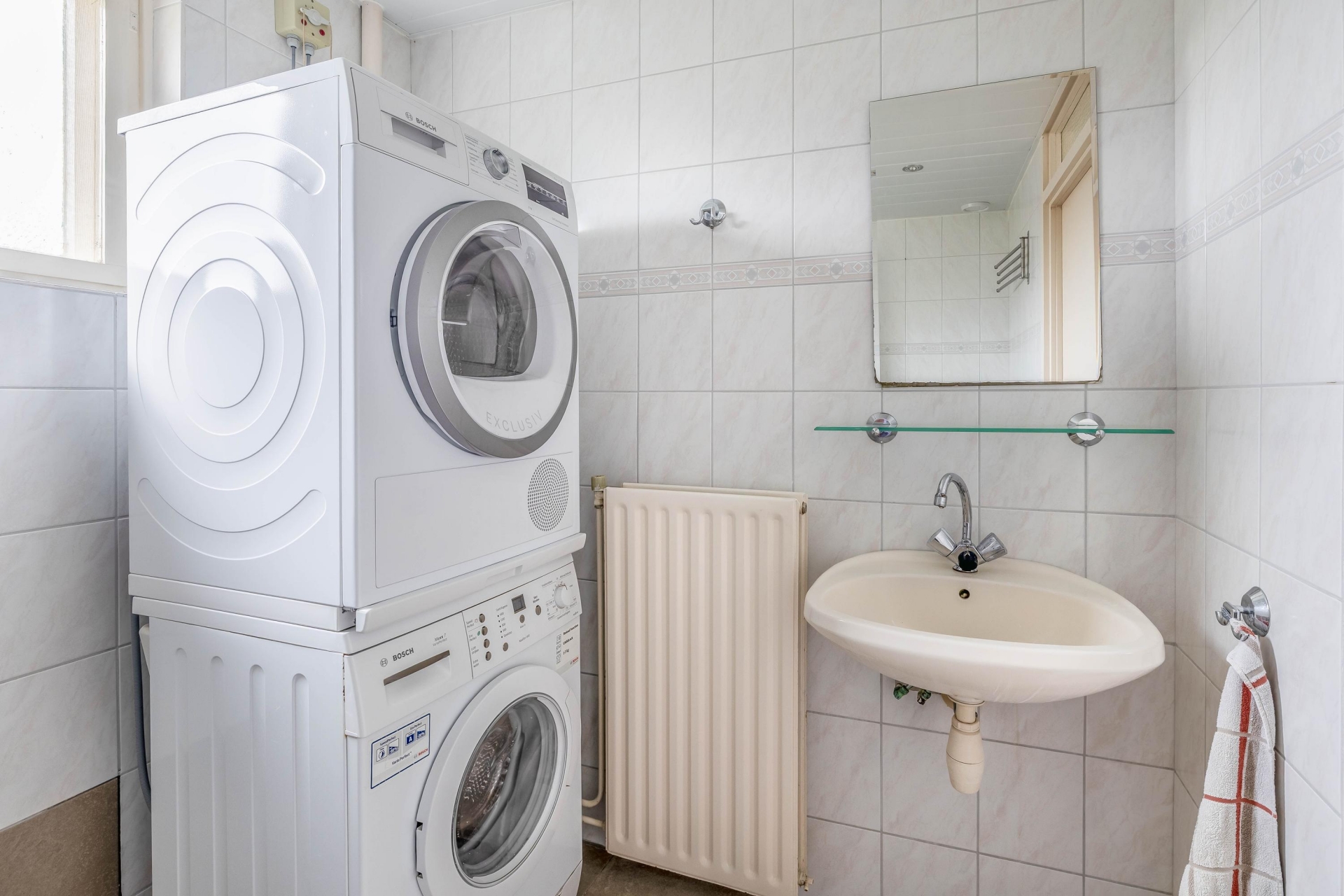 De badkamer is praktisch ingericht en voorzien van een wastafel, zwevend toilet en aansluitingen voor wasmachine en droger. Zowel aan de voor- als achterzijde bevinden zich ruime slaapkamers, ideaal voor een gezin.