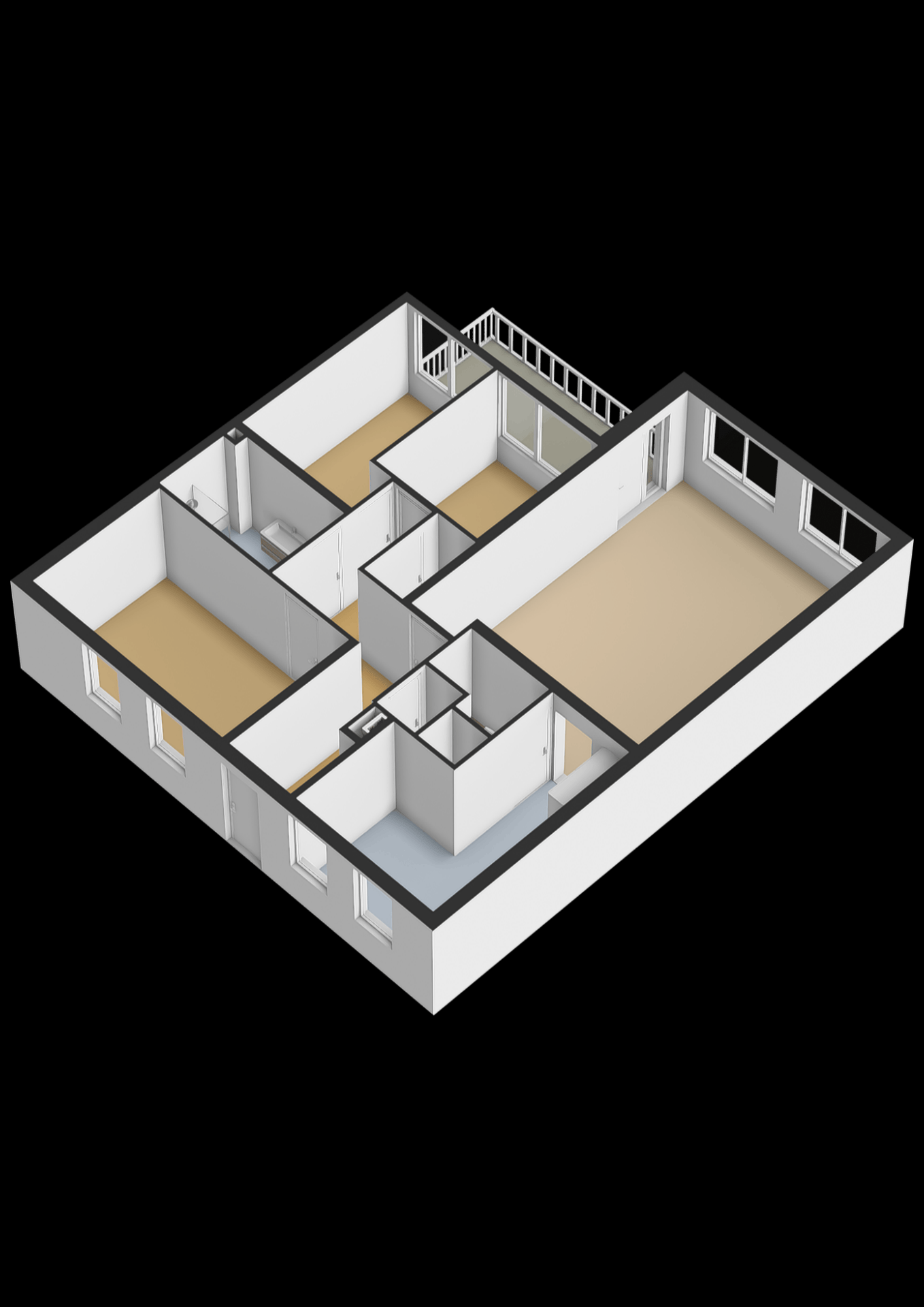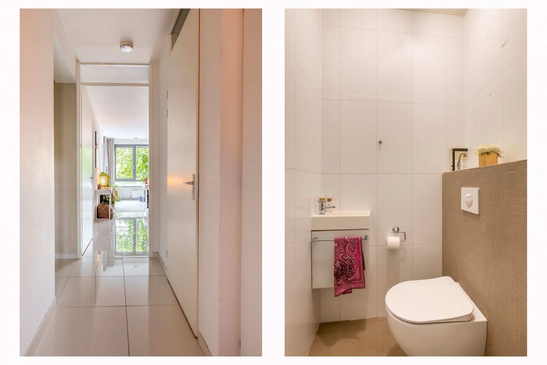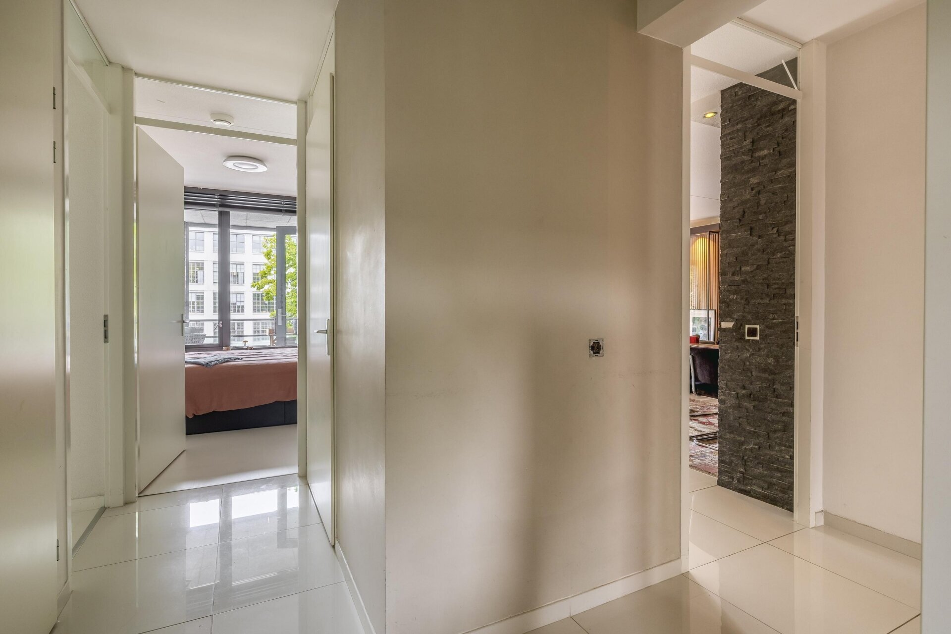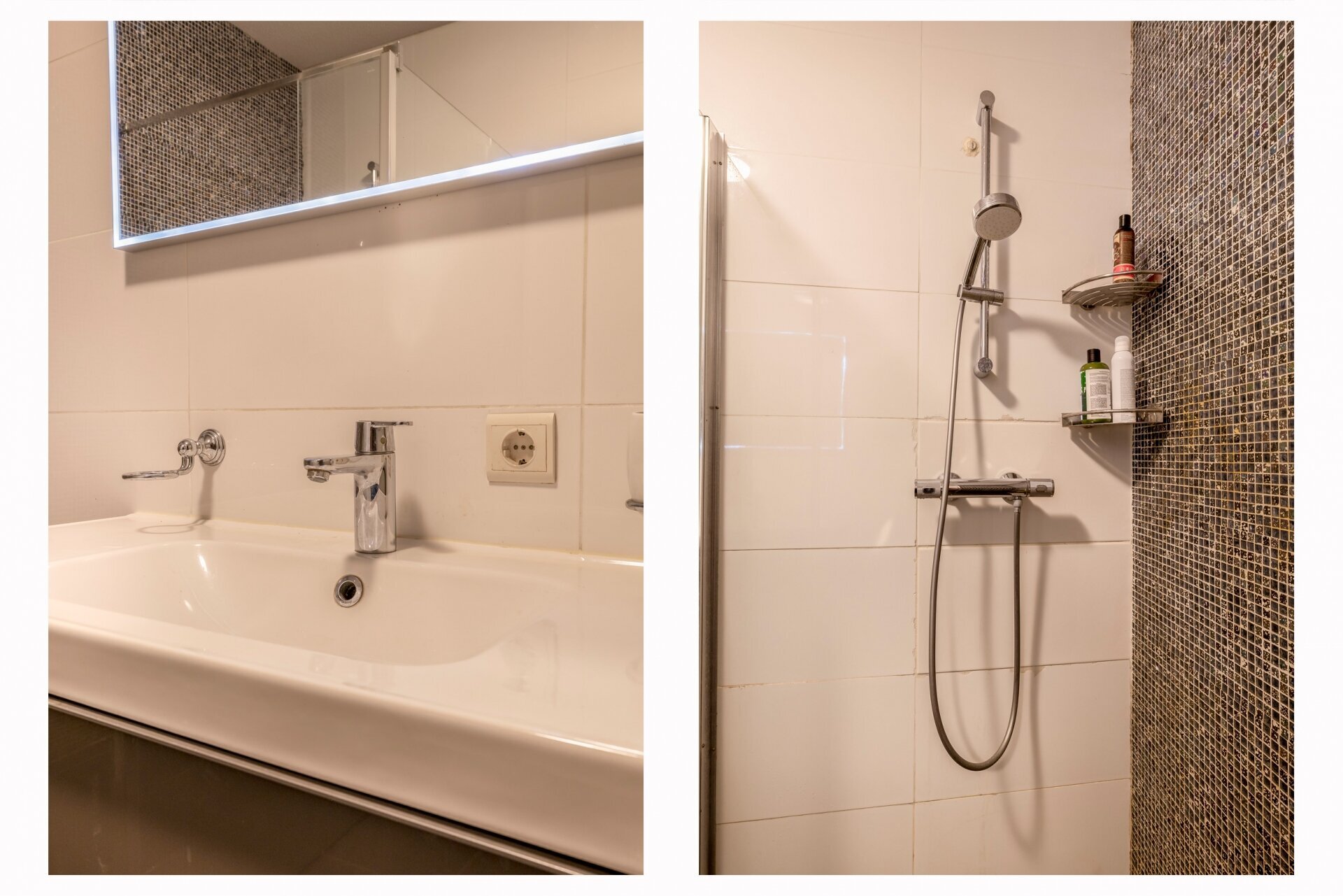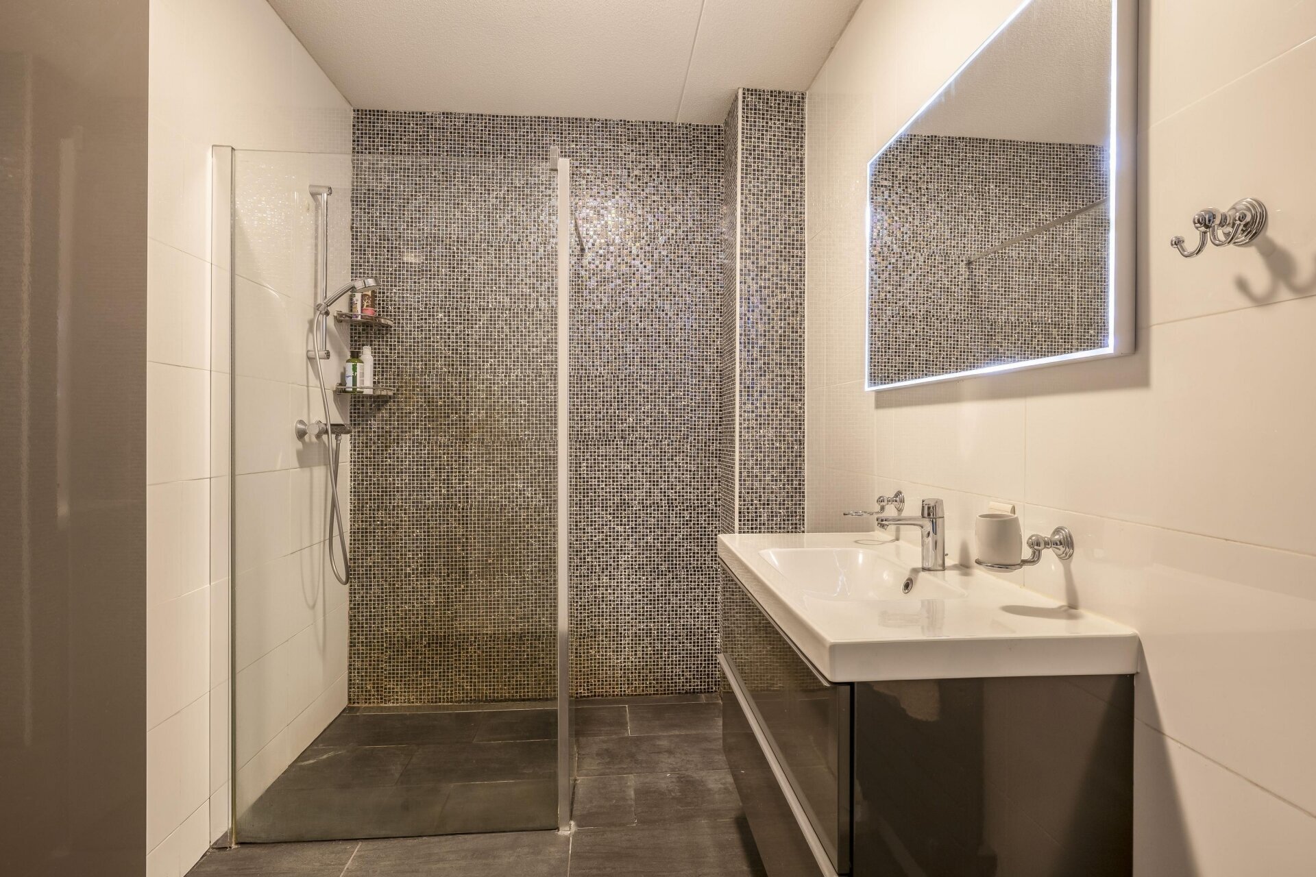 Het appartement beschikt over drie slaapkamers. De master bedroom is voorzien van maatwerkoplossingen waardoor iedere centimeter optimaal benut is. De badkamer is modern en compleet, uitgerust met een inloopdouche, wastafelmeubel en veel bergruimte. Verder is er een separaat toilet in de hal en zijn er twee inpandige bergingen, waarvan één met wasmachine-/drogeraansluiting en één ingericht als stookruimte.