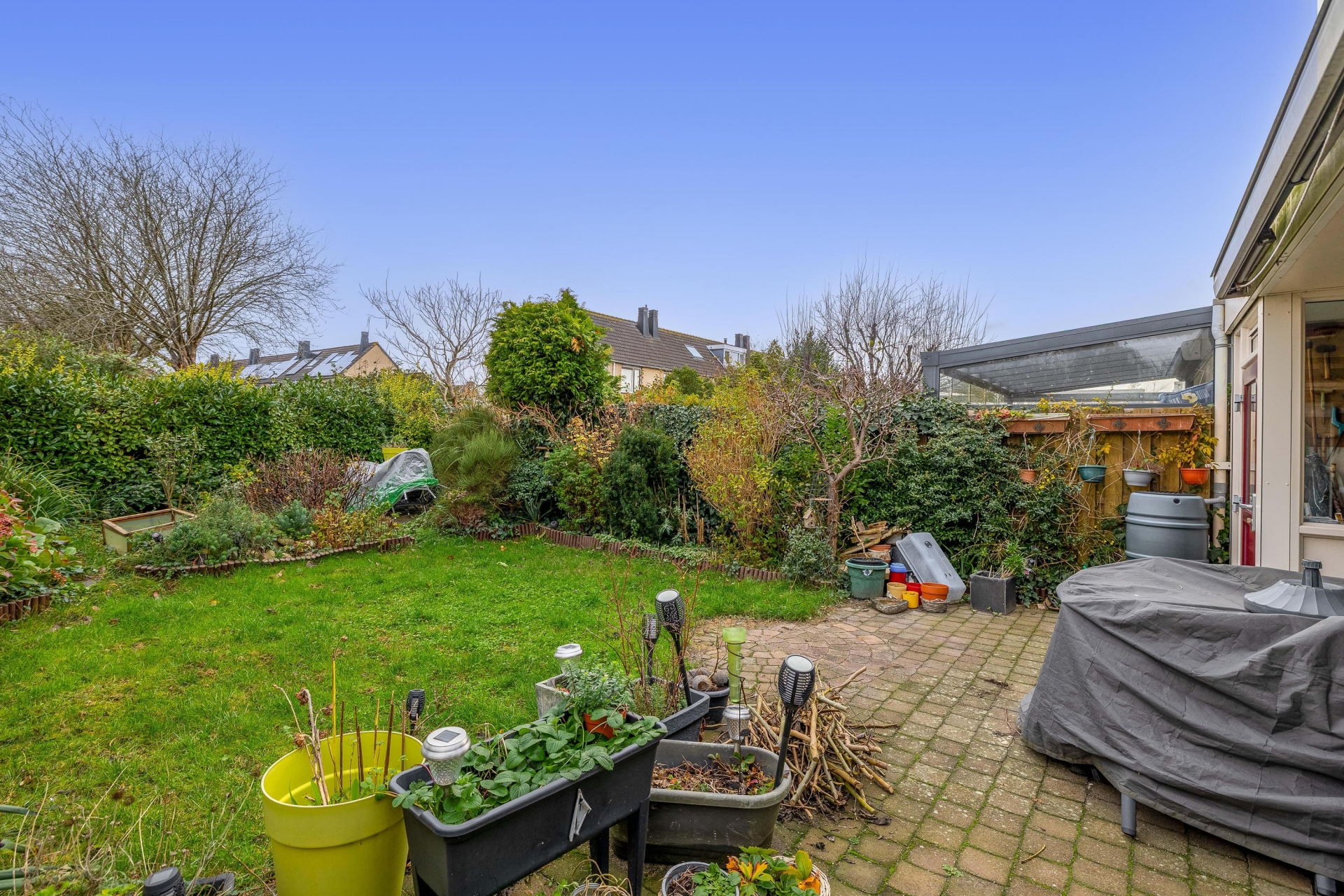 Buiten zit je hier ook goed: de tuin is gelegen op het zuidwesten en biedt volop zon vanaf de middag tot in de avond.