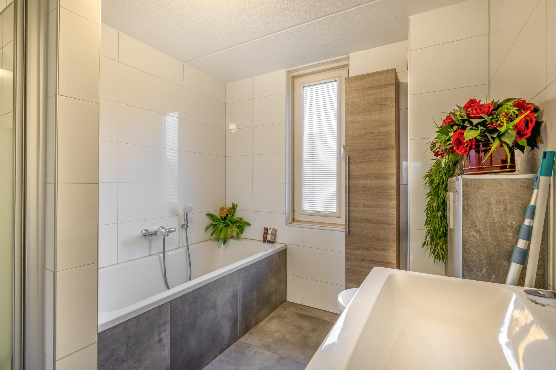 De badkamer is in 2020 volledig vernieuwd en heeft een moderne, frisse uitstraling. Je vindt hier een inloopdouche, wastafelmeubel en een tweede toilet – alles strak en functioneel afgewerkt.