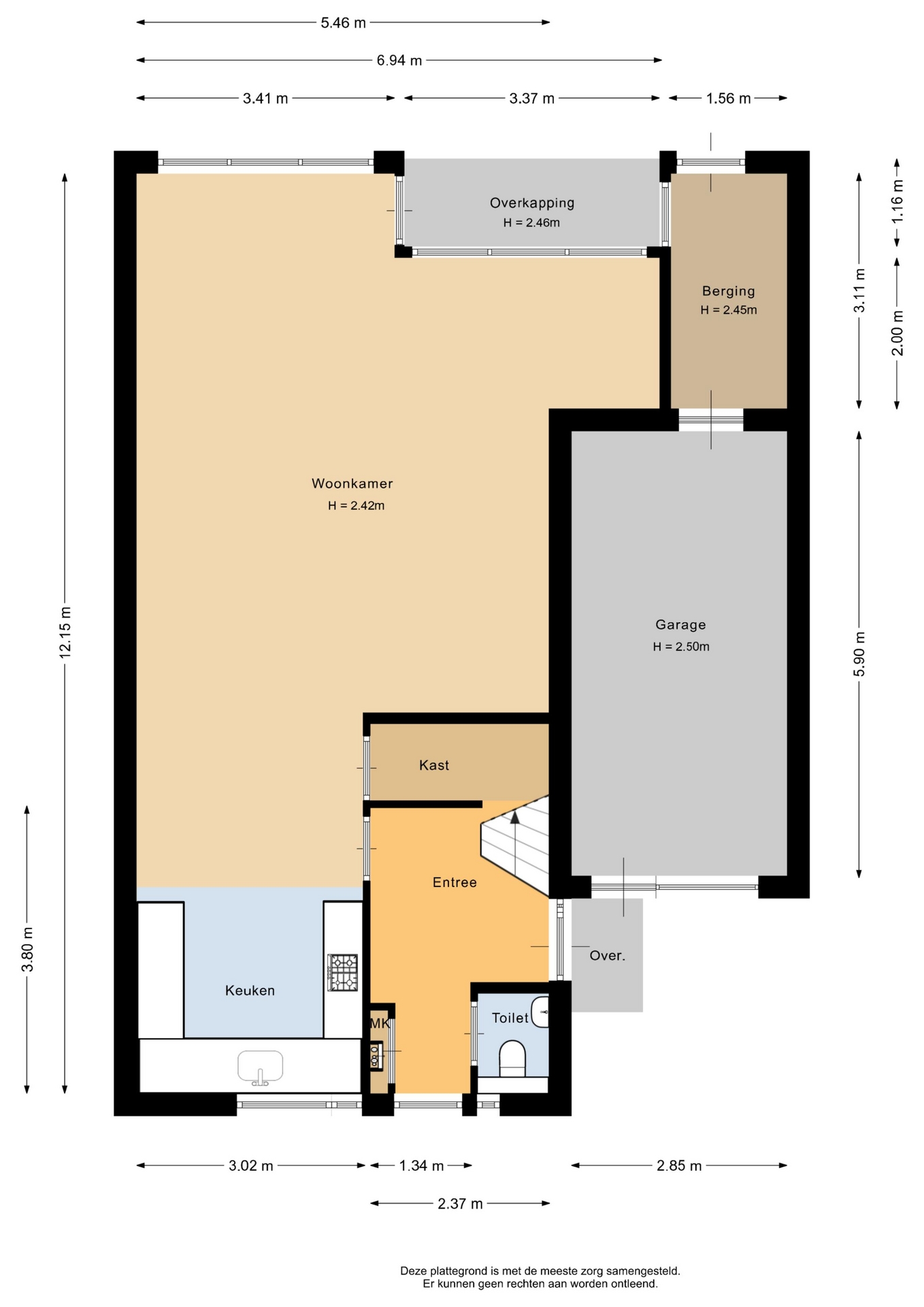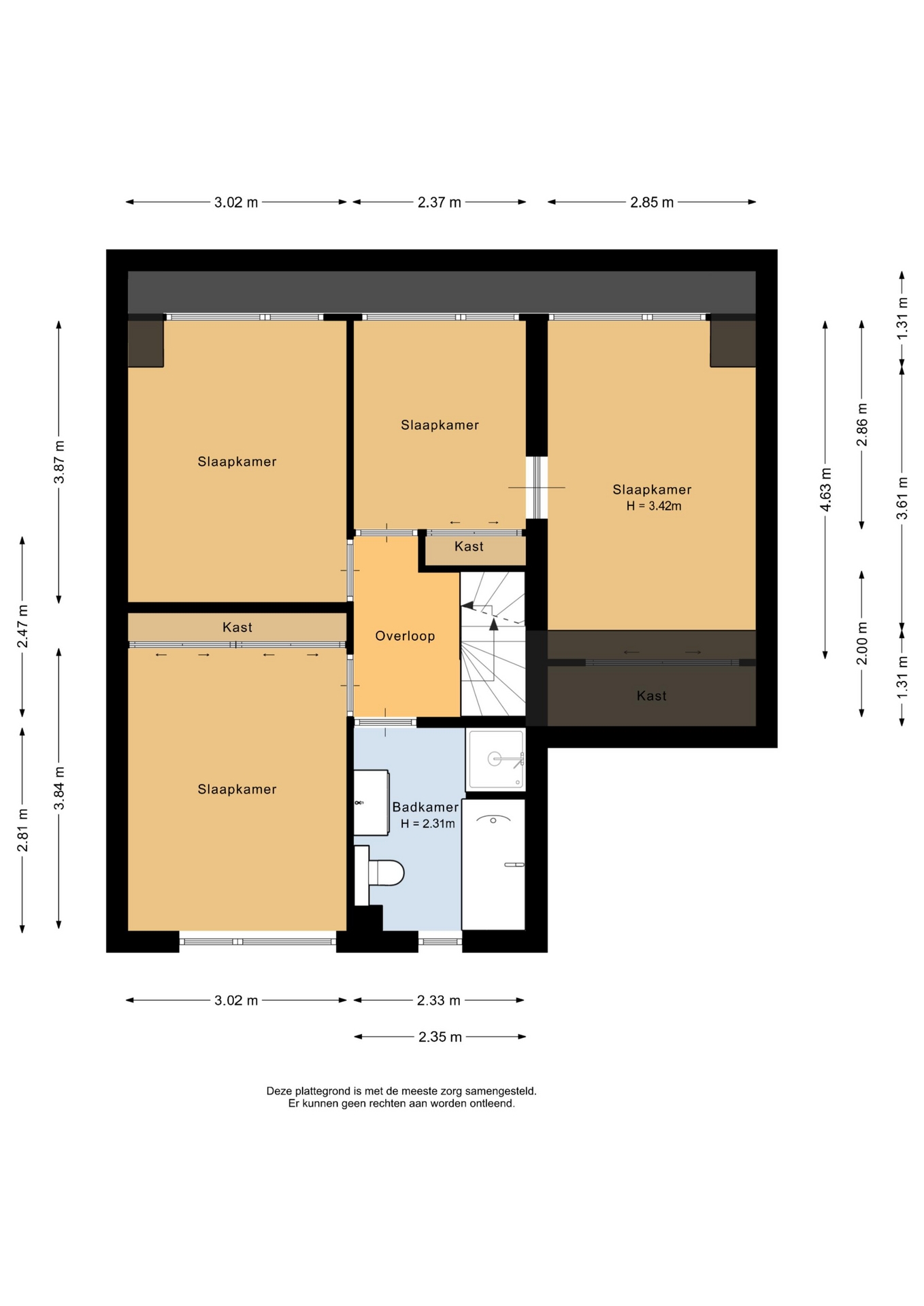 “Deze informatie is door ons met de nodige zorgvuldigheid samengesteld. Onzerzijds wordt echter geen enkele aansprakelijkheid aanvaard voor enige onvolledigheid, onjuistheid of anderszins, dan wel de gevolgen daarvan. Alle opgegeven maten en oppervlakten zijn indicatief.”
