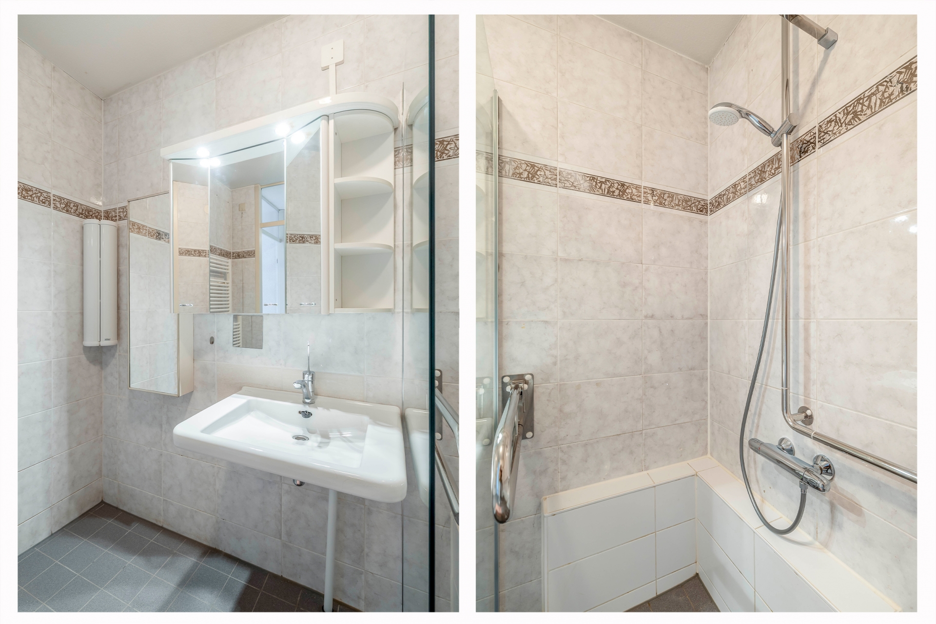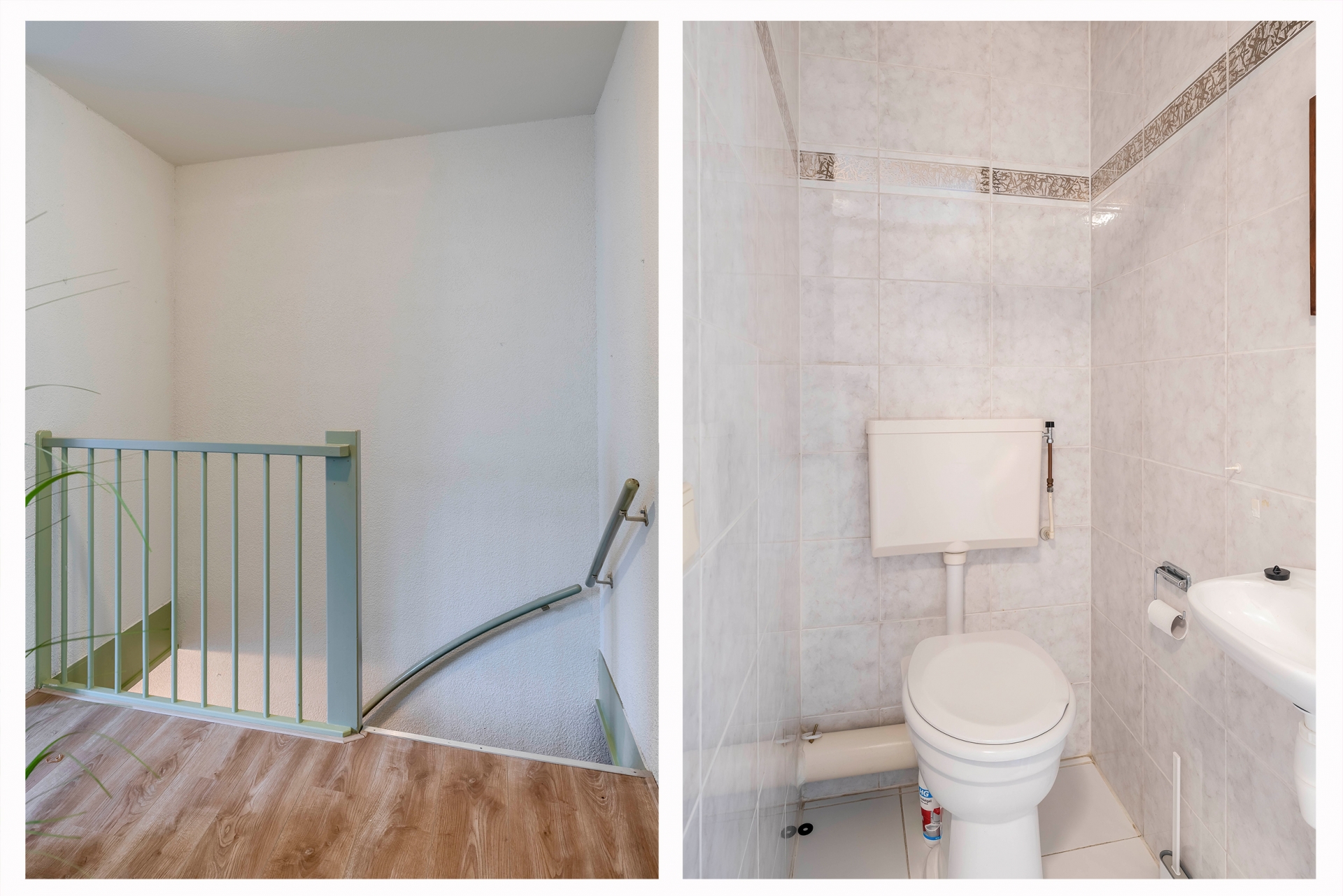 De slaapkamer beneden is multifunctioneel. Gebruik hem als werkkamer, atelier, sport- of hobbyruimte. De ruimte kan eenvoudig worden gecombineerd met de naastgelegen bijkeuken, die om te bouwen is tot badkamer, wat het ook geschikt maakt voor gelijkvloers wonen. Op de eerste verdieping bevindt zich, naast de 2 slaapkamers en vide, een apart toilet en een badkamer met douche en wastafel.