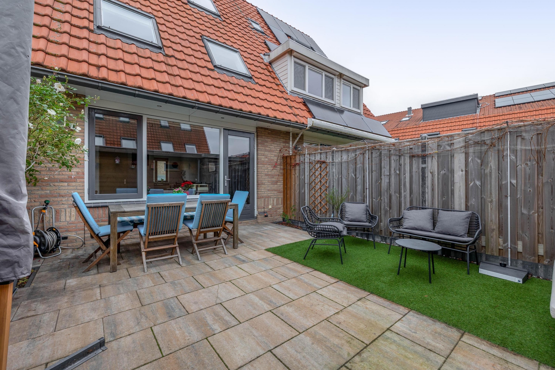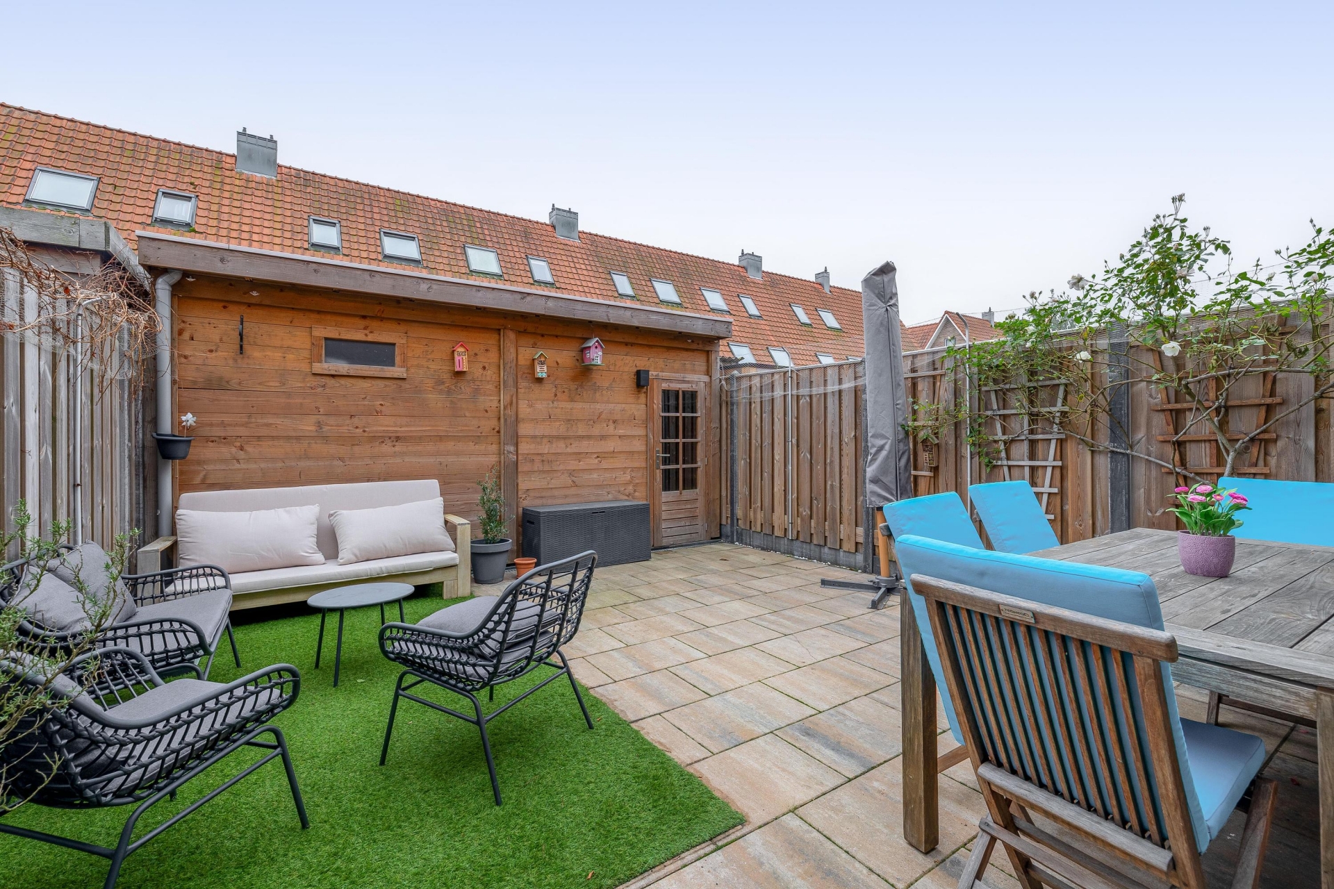 - Zonnige achtertuin met berging en achterom