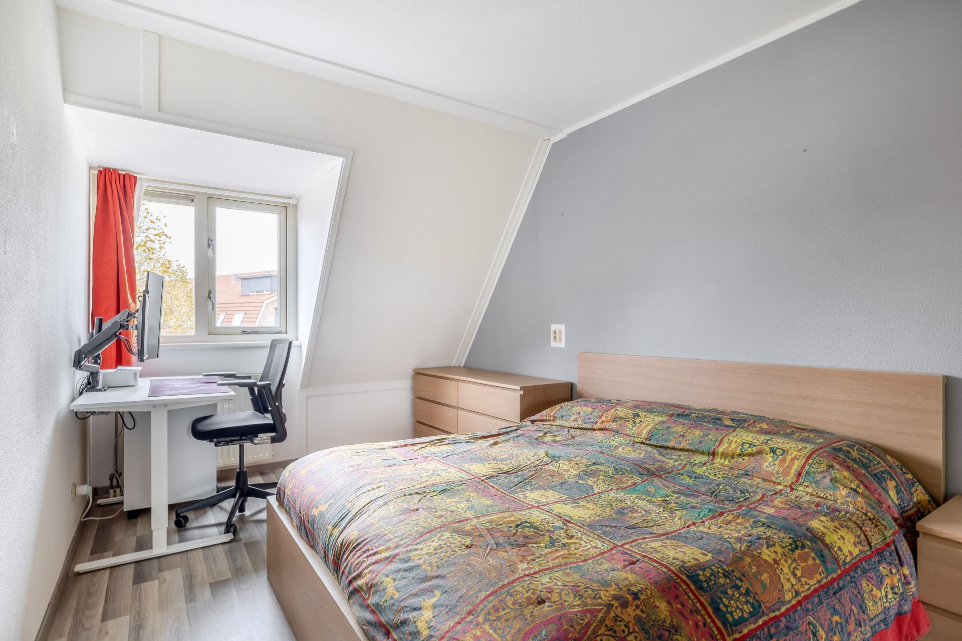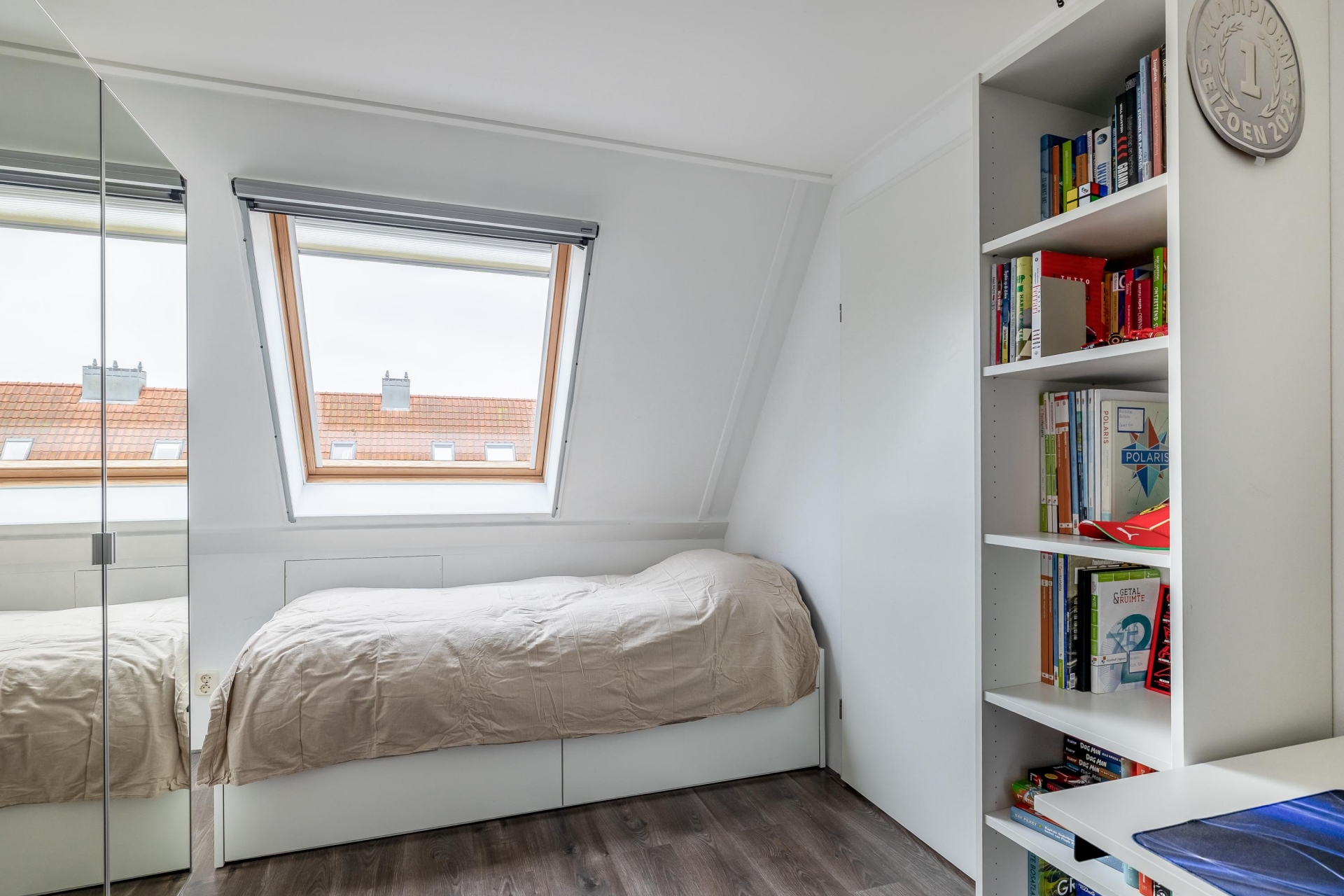 Daarnaast bevindt zich hier de derde slaapkamer, een lichte en veelzijdige ruimte met dakramen, perfect te gebruiken als hoofdslaapkamer, werkruimte of logeerkamer.