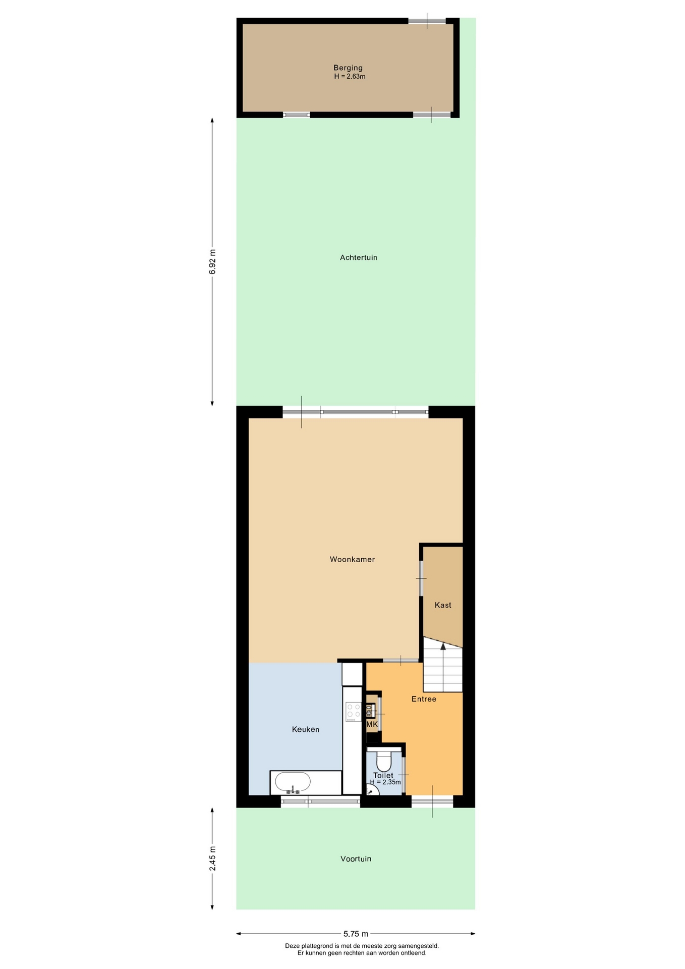 "Deze informatie is door ons met de nodige zorgvuldigheid samengesteld. Onzerzijds wordt echter geen enkele aansprakelijkheid aanvaard voor enige onvolledigheid, onjuistheid of anderszins, dan wel de gevolgen daarvan. Alle opgegeven maten en oppervlakten zijn indicatief. Van toepassing zijn de NVM voorwaarden".