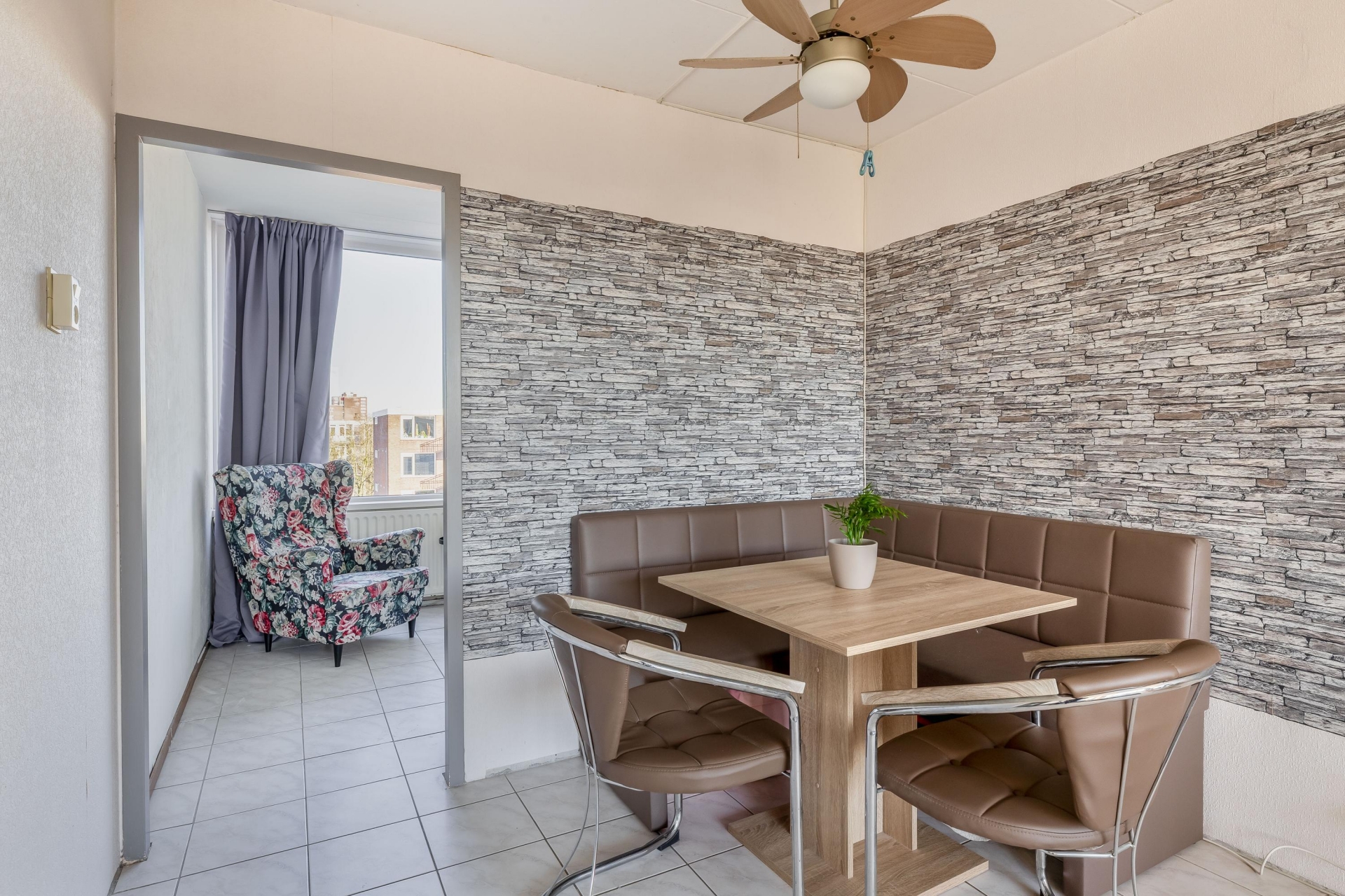 Het appartement is gelegen op de 4e verdieping van het complex. Bij binnenkomst is er toegang tot diverse vertrekken. Zo zijn er 2 ruime slaapkamers, de badkamer en een ruime woonkamer. De woonkamer heeft een oppervlakte van circa 22 m². De ruimte is verkleind voor het realiseren van een 3e slaapkamer, welke ook gelegen is aan de voorzijde van het complex. Vanuit de woonkamer is er toegang tot de halfopen keuken Deze is voorzien van diverse inbouwapparatuur. Middels een loopdeur vanuit de keuken en de woonkamer is er toegang tot het zonnige balkon. Deze is gesitueerd op het zuidwesten, wat het mogelijk maakt om lang van de zon te genieten.