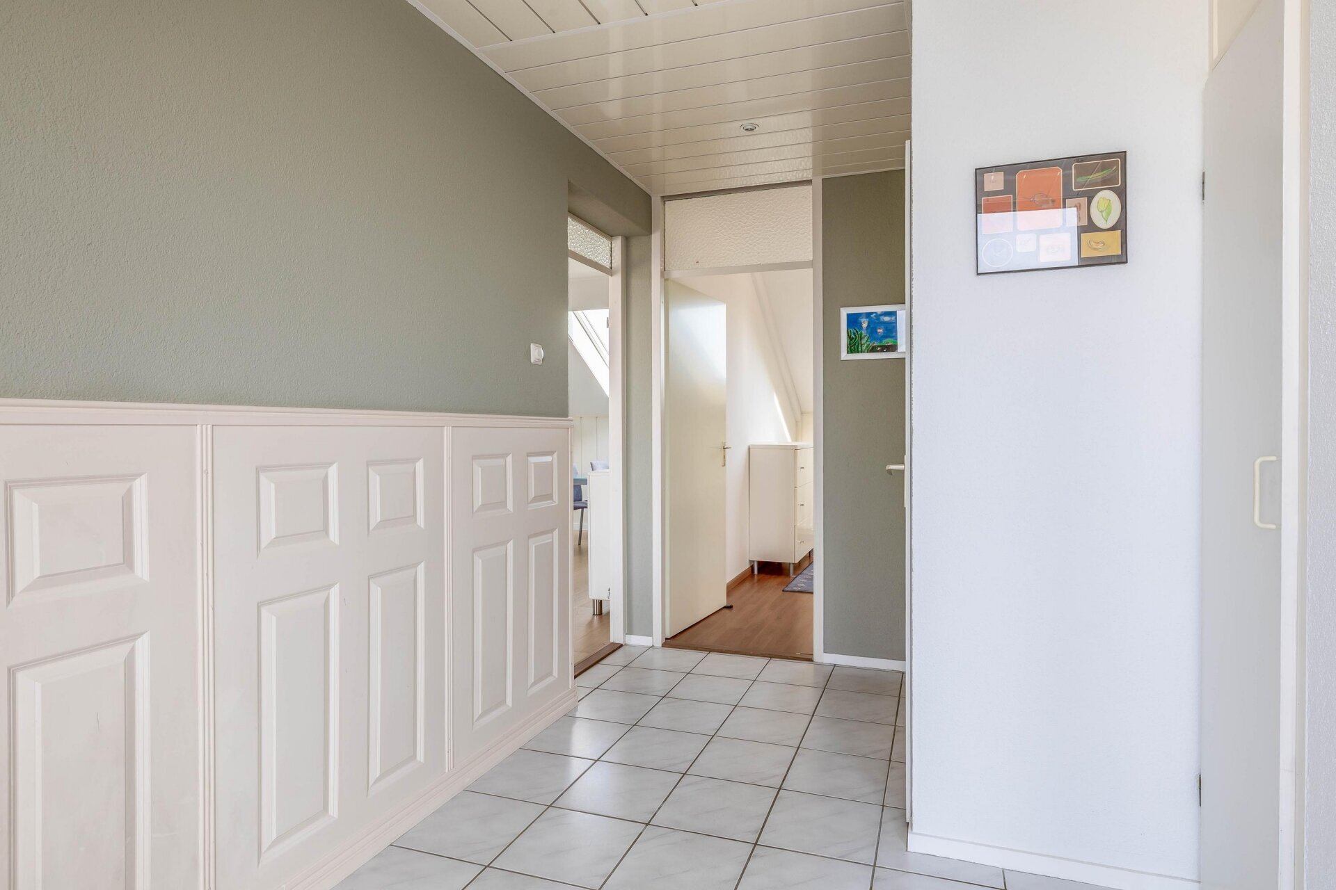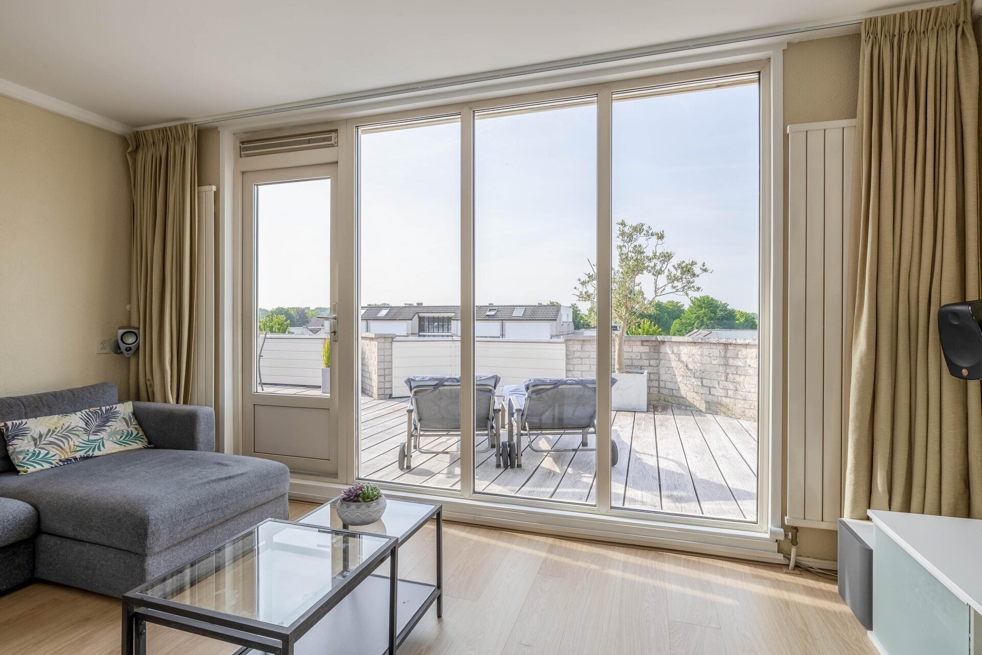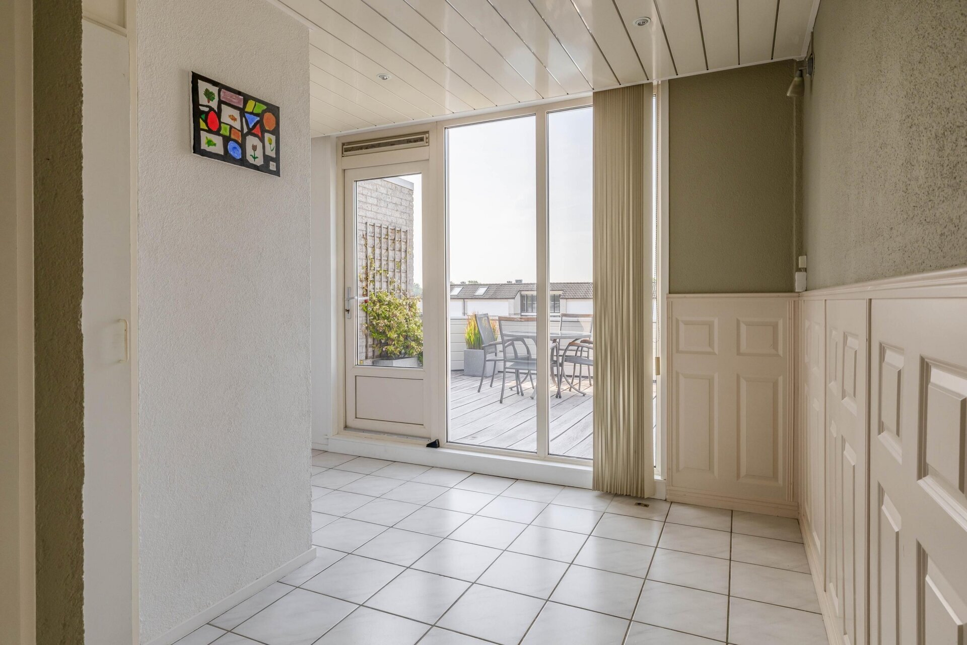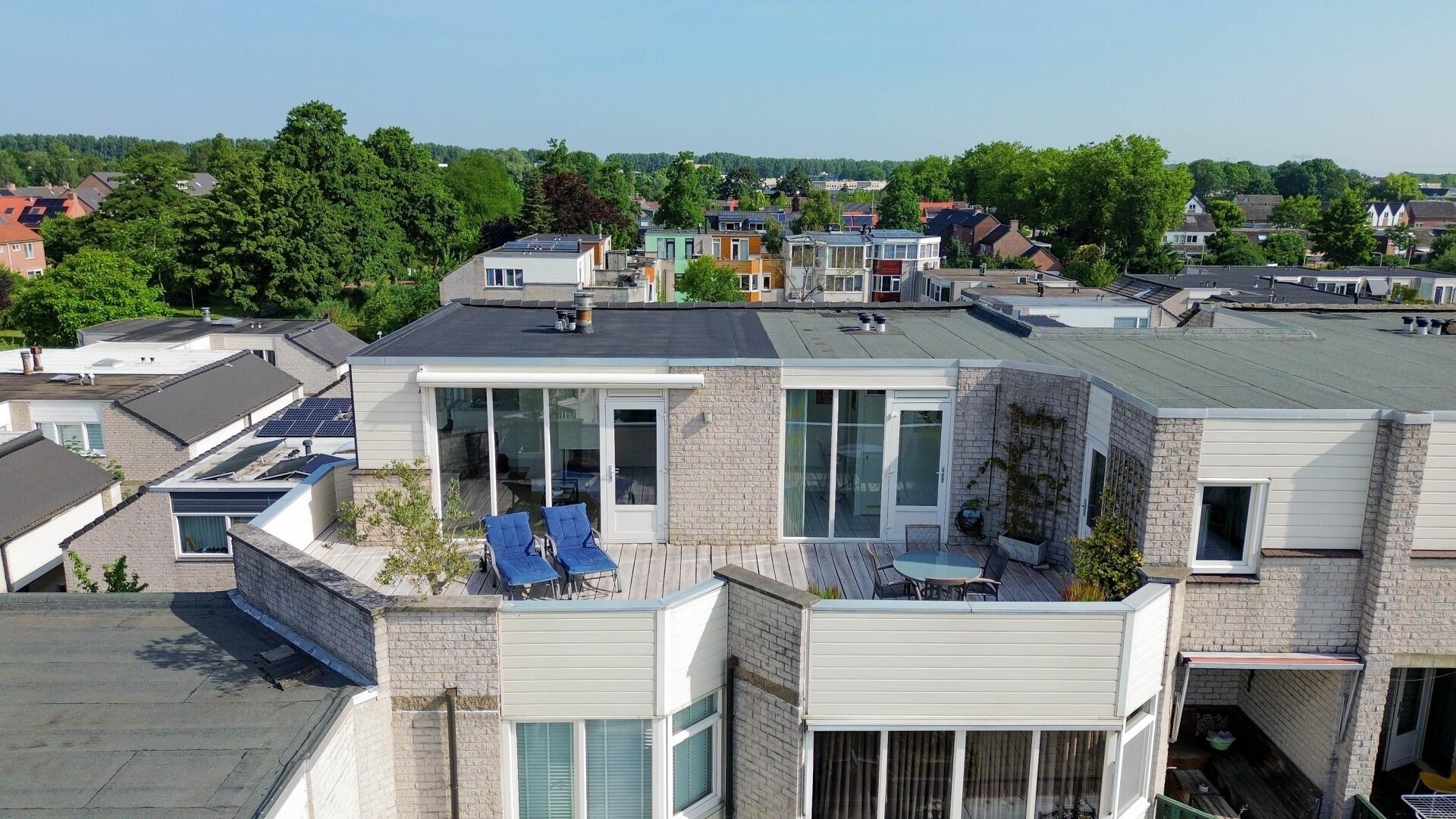 Entree, zeer ruime hal met toegang tot het dakterras, meterkast, het toilet, de slaapkamer en de woonkamer. De lichte woonkeuken is gelegen aan de voorzijde van het complex en vormt samen met de woonkamer een open en gezellige leefruimte. De keuken is voorzien van diverse losstaande apparatuur, waaronder een vaatwasser, een koel-vriescombinatie en een combimagnetron. De woonkamer beschikt over een sfeervolle, werkende open haard en biedt middels een loopdeur toegang tot het dakterras. Dit terras is een ware eyecatcher van het appartement! Door de zonnige ligging op het zuiden kan er optimaal genoten worden van de zon. Vanaf hier is er een fraai wijds uitzicht over de wijk. Op het dakterras bevindt zich bovendien een praktische berging, die in het gebouw is geïntegreerd.