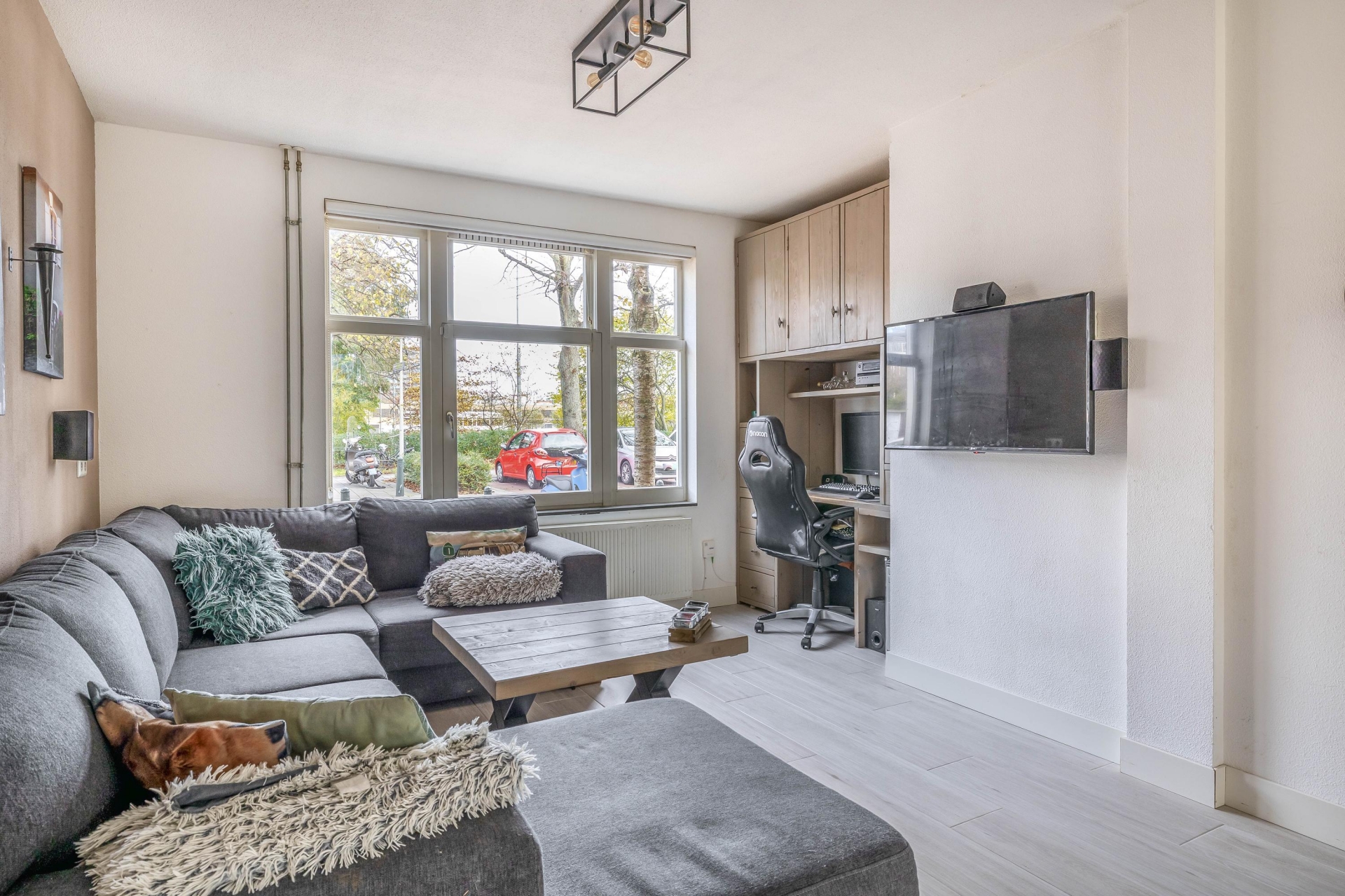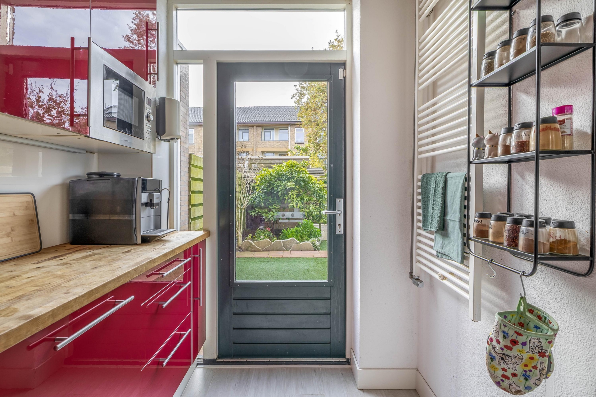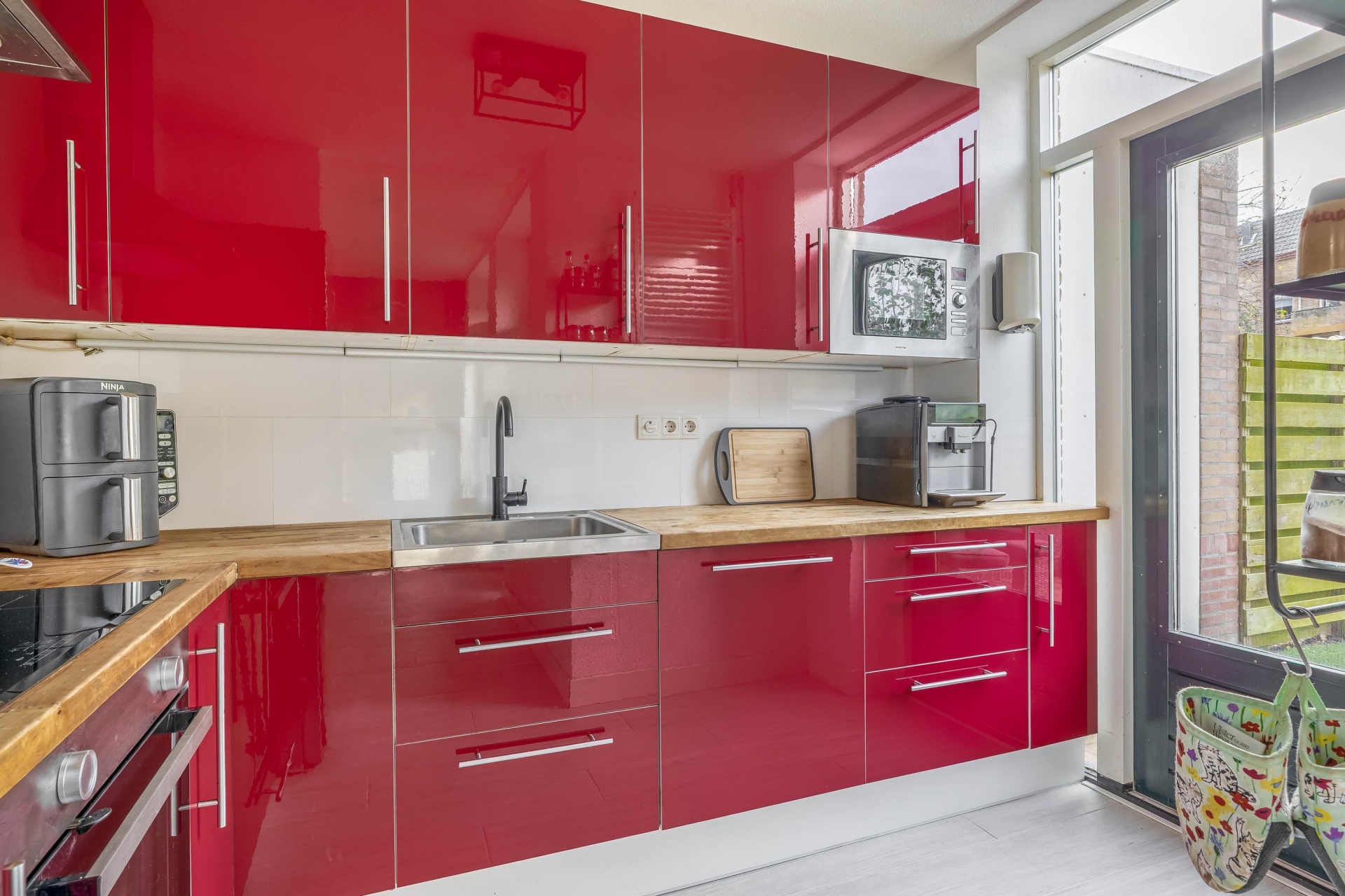Entree via de hal met meterkast, garderoberuimte en toiletruimte met fonteintje. De woonkamer bevindt zich aan de voorzijde van de woning en staat in open verbinding met het eetgedeelte aan de achterzijde, waardoor een lichte en ruimtelijke leefruimte ontstaat. Aan de achterzijde bevindt zich de half open keuken, voorzien van diverse inbouwapparatuur, waaronder een inductiekookplaat, vaatwasser, oven, magnetron en afzuigkap. Via een enkele deur in de keuken is er directe toegang tot de zonnige achtertuin.