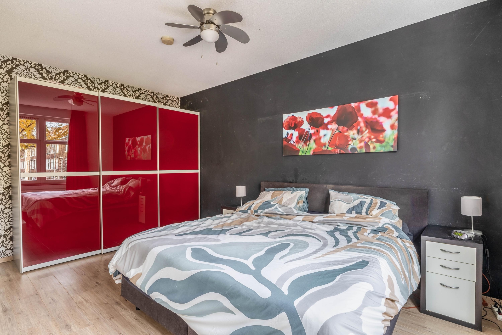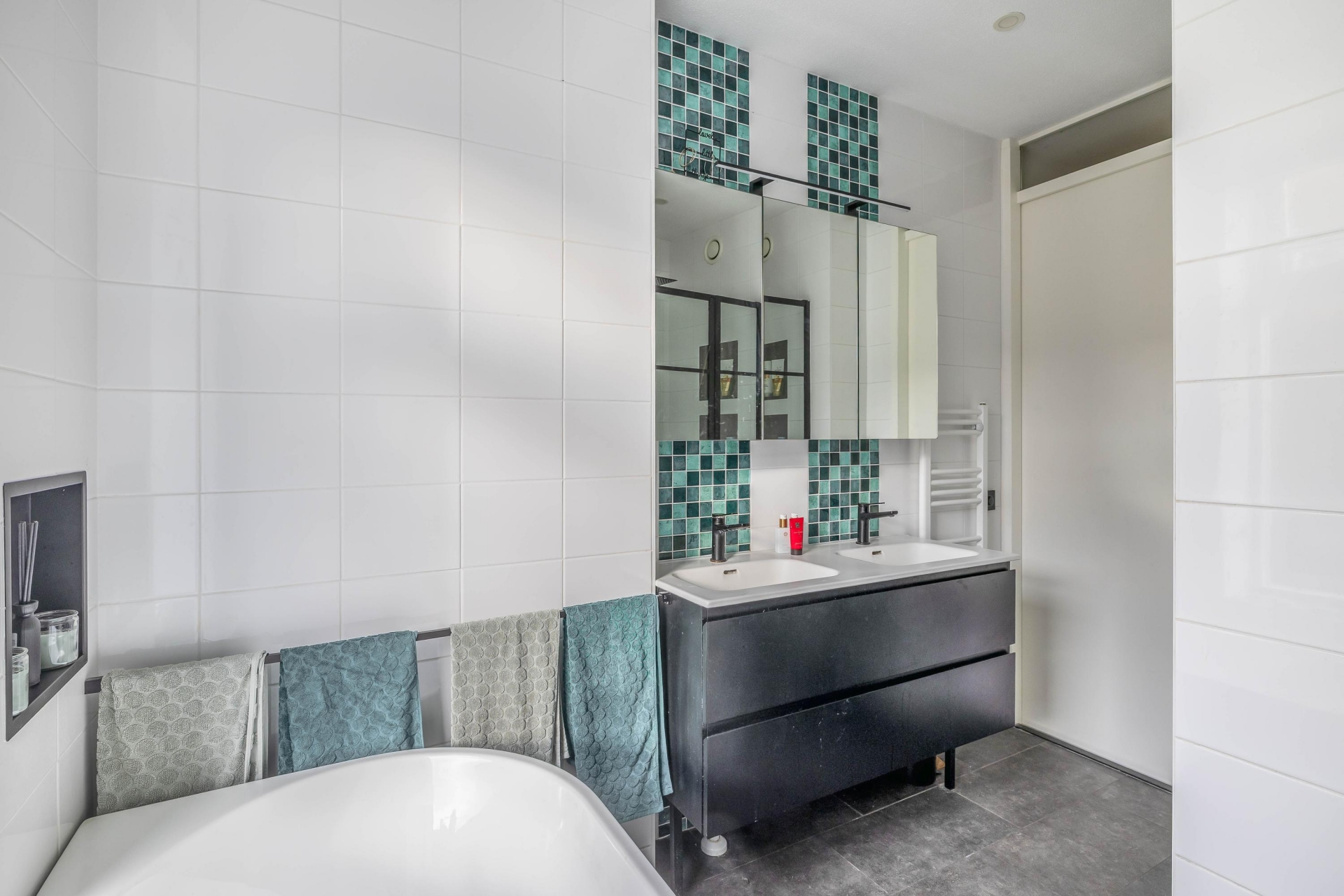 Overloop met toegang tot twee ruime slaapkamers, waarvan één aan de voorzijde en één aan de achterzijde. De slaapkamer aan de achterzijde heeft toegang tot het balkon. De badkamer bevindt zich aan de achterzijde en is voorzien van een inloopdouche, ligbad, dubbel wastafelmeubel en tweede toilet.