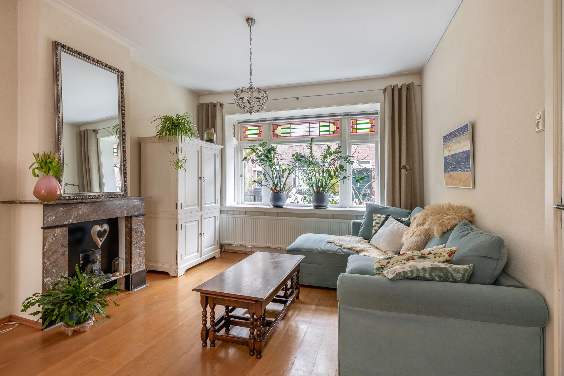 Toen ik 19 jaar geleden dit huis zag, was ik op slag verliefd op de erker met het glas in lood, de lichtinval, de openslaande deuren. Met heel veel plezier heb ik geleefd in dit fijne huis, in deze rustige straat. Meesjes en merels heb ik hun vleugeltjes zien uitslaan in mijn achtertuin. Rust in huis en tuin of in 10 minuten in de reuring van de stad, de keuze is aan jou/jullie.