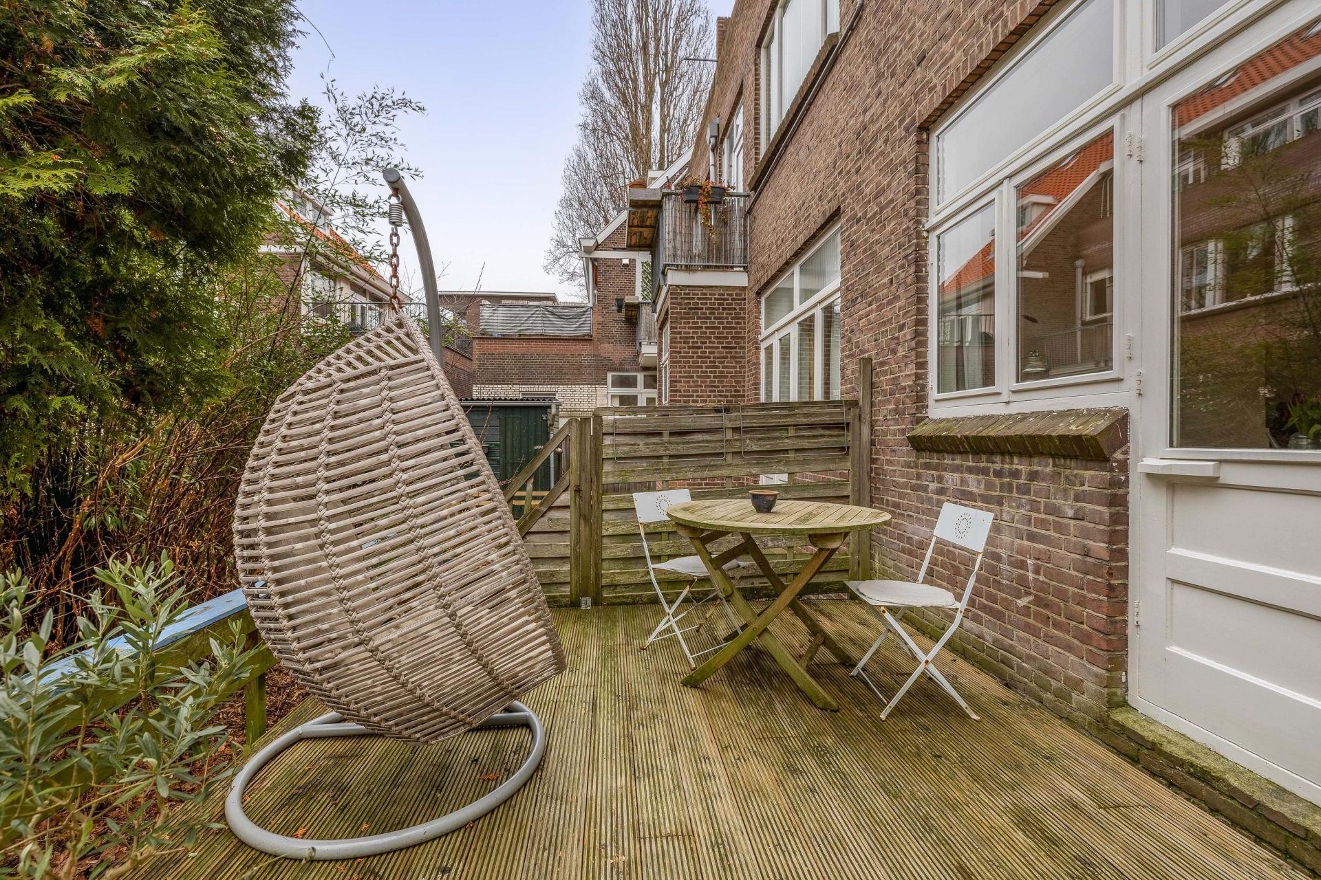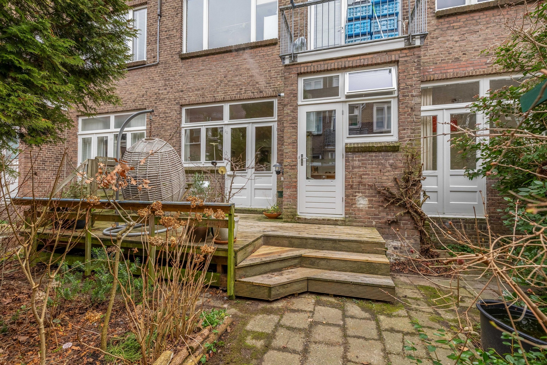 Aan de voorzijde van het huis ligt een nette voortuin die zorgt voor een prettige entree en extra privacy. De achtertuin op het noordwesten is een echte bonus in de stad: hier geniet je van middag- en avondzon. Perfect voor een borrel na werk of ontspannen barbecue met vrienden.