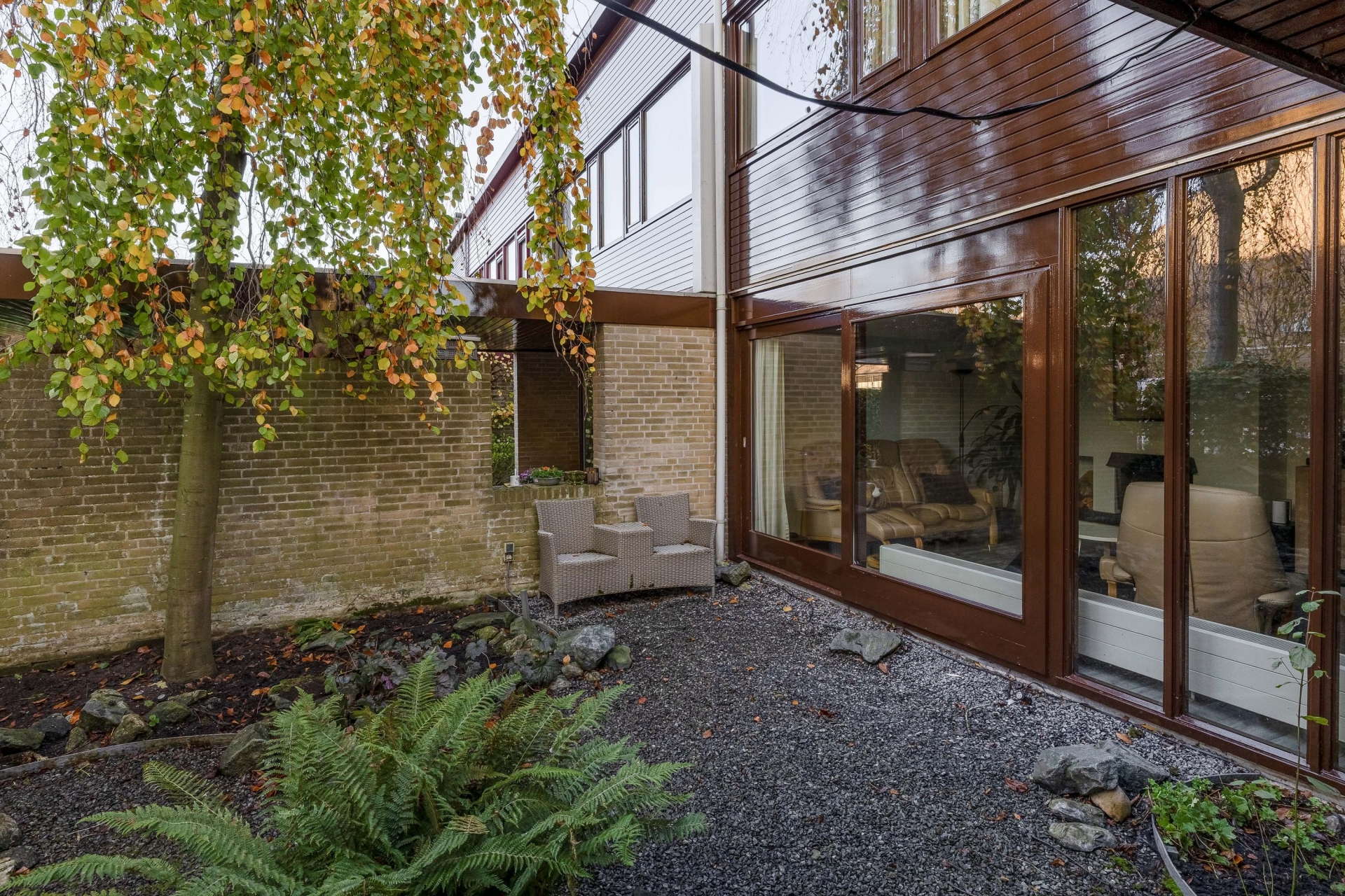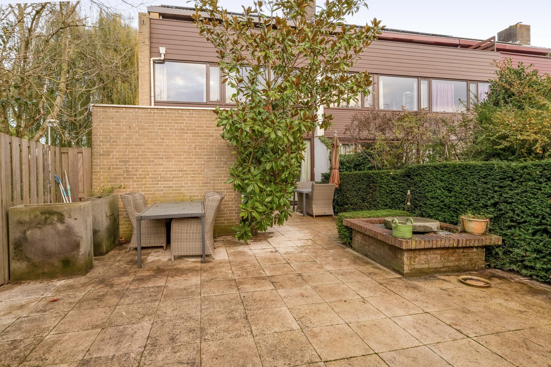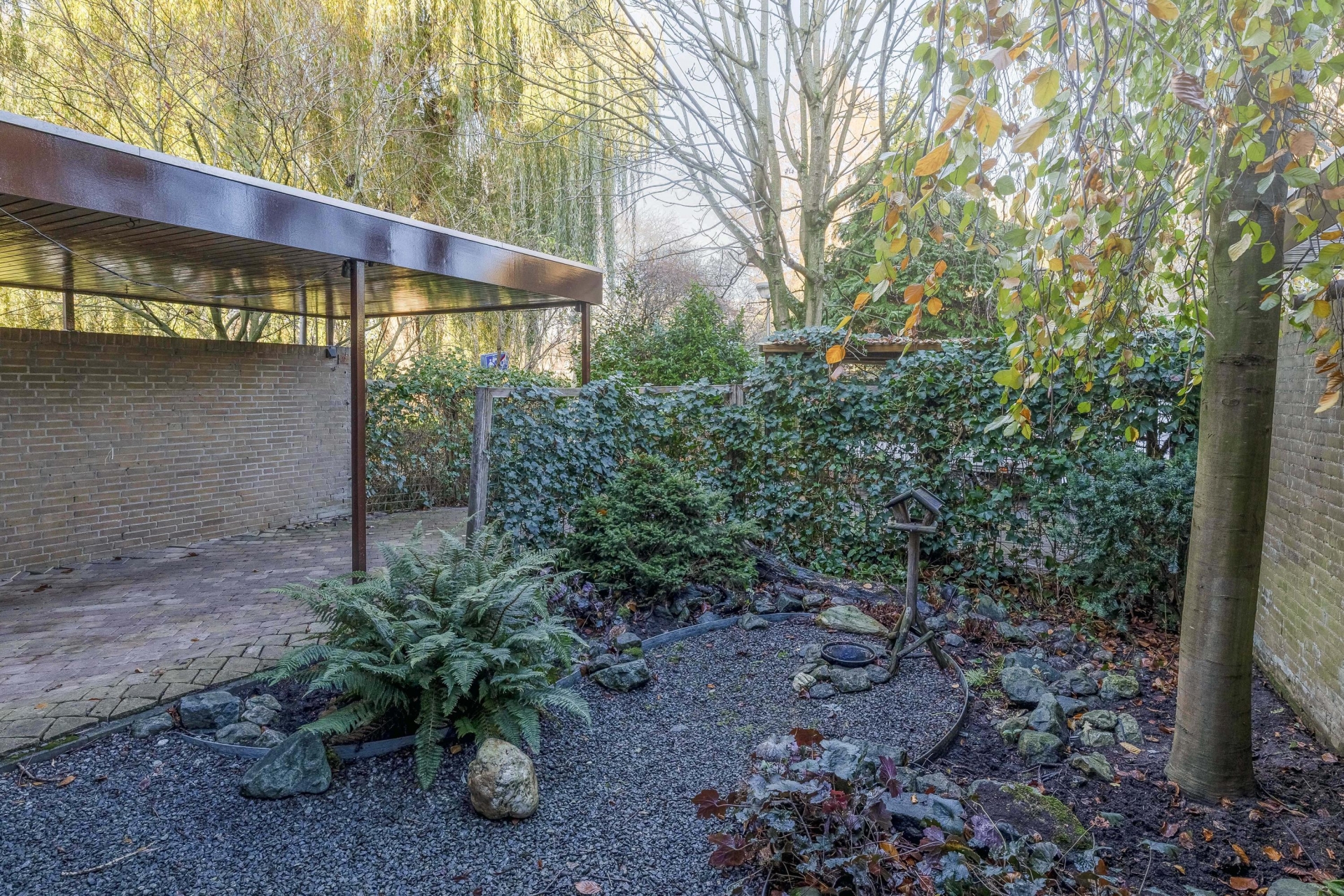 De achtertuin is onderhoudsvriendelijk aangelegd en biedt meerdere fijne zitplekken. Een van de highlights is de gezellige overkapping met zithoek achterin de tuin – een heerlijke plek om te ontspannen of borrelen met vrienden. De achtertuin is voorzien van een berging en de ligging is op het zonnige zuidwesten. De voortuin is eveneens royaal en voorzien van een ruime oprit waar je met gemak meerdere auto’s kwijt kunt, deels onder een carport.