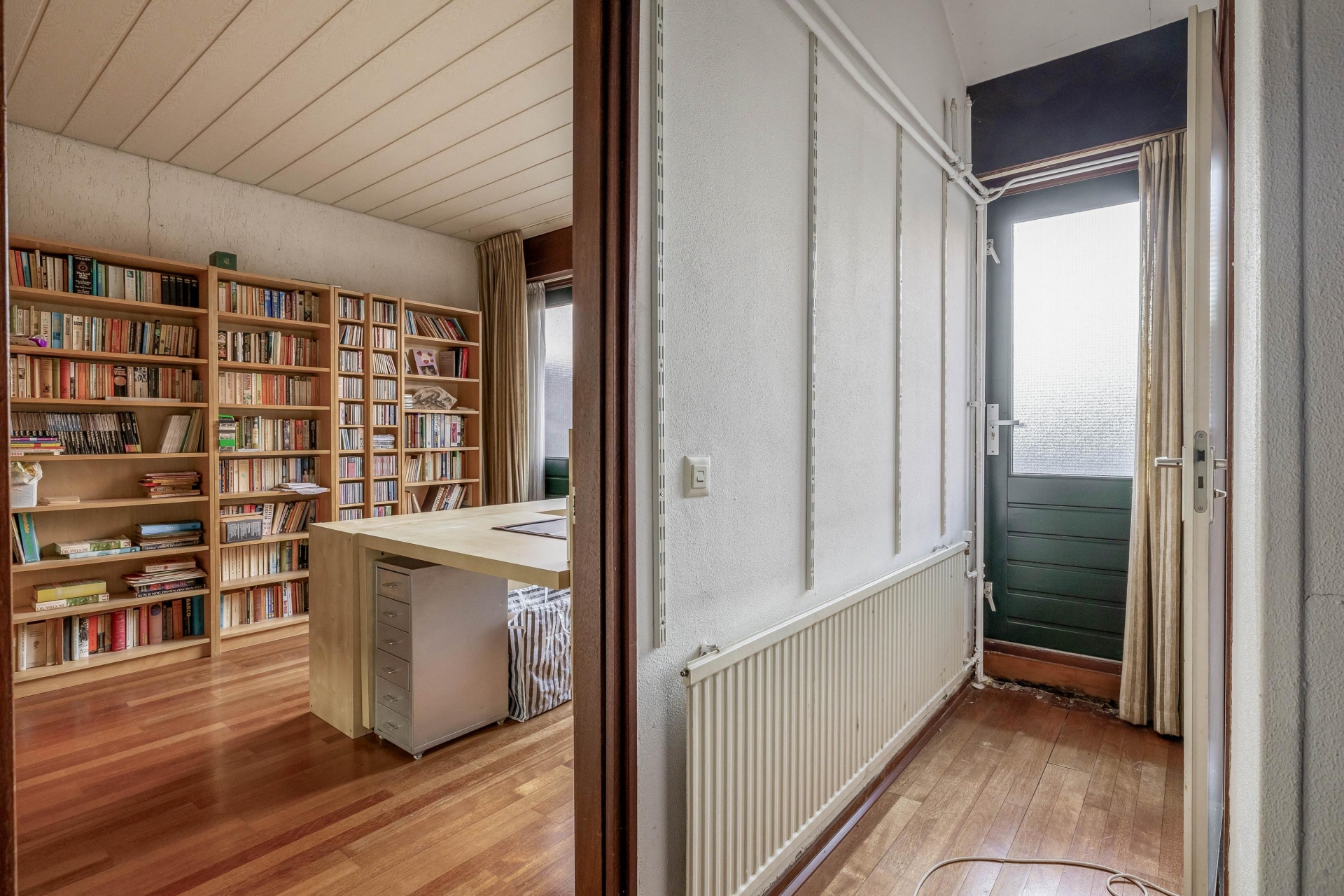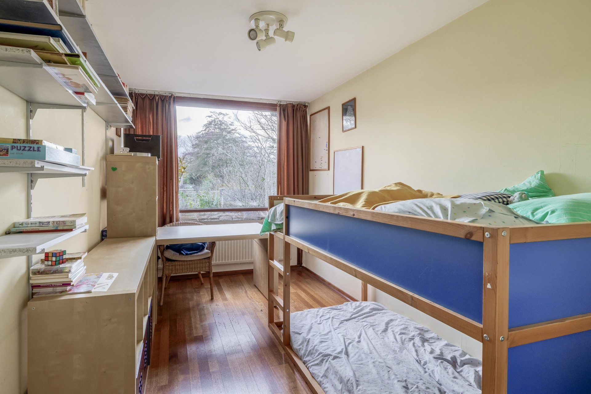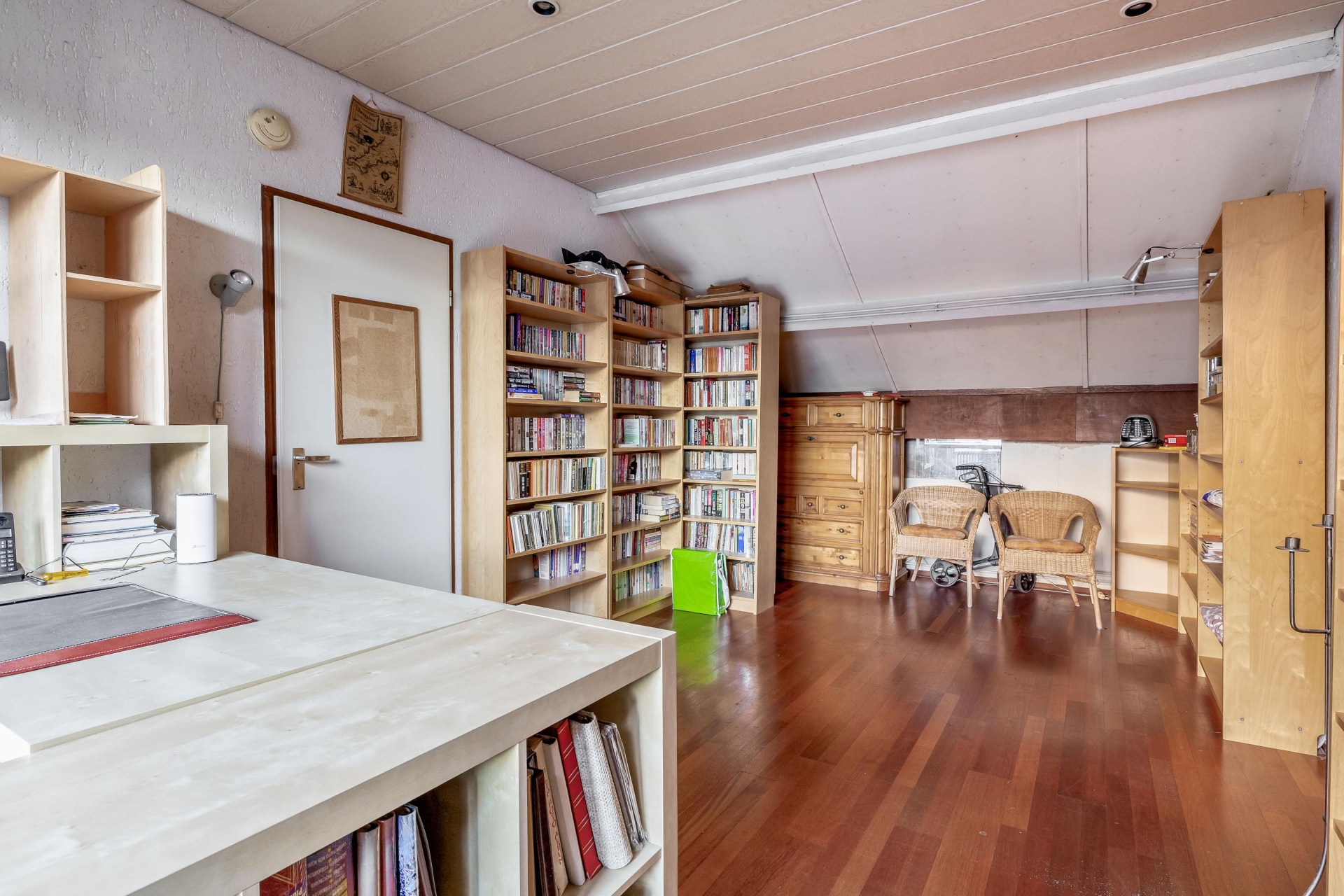 Op de eerste verdieping zijn vier goed bemeten slaapkamers te vinden, waarvan er een in gebruik is als werkkamer. Deze masterbedroom is ideaal in gebruik als ouderslaapkamer. De twee badkamers maken het ochtendritueel een stuk efficiënter – geen wachtrijen meer voor de douche! Op de tweede verdieping vindt u nog een royale kamer welke thans in gebruik is als bibliotheek en werkkamer. Hier zijn met enkele eenvoudige aanpassingen twee slaapkamers te realiseren. Op deze verdieping is er tevens toegang tot een kleine bergvliering.