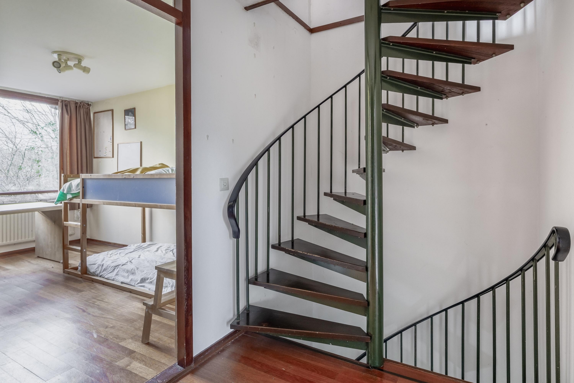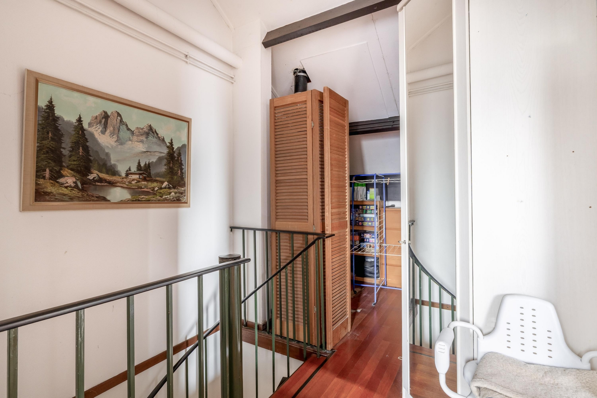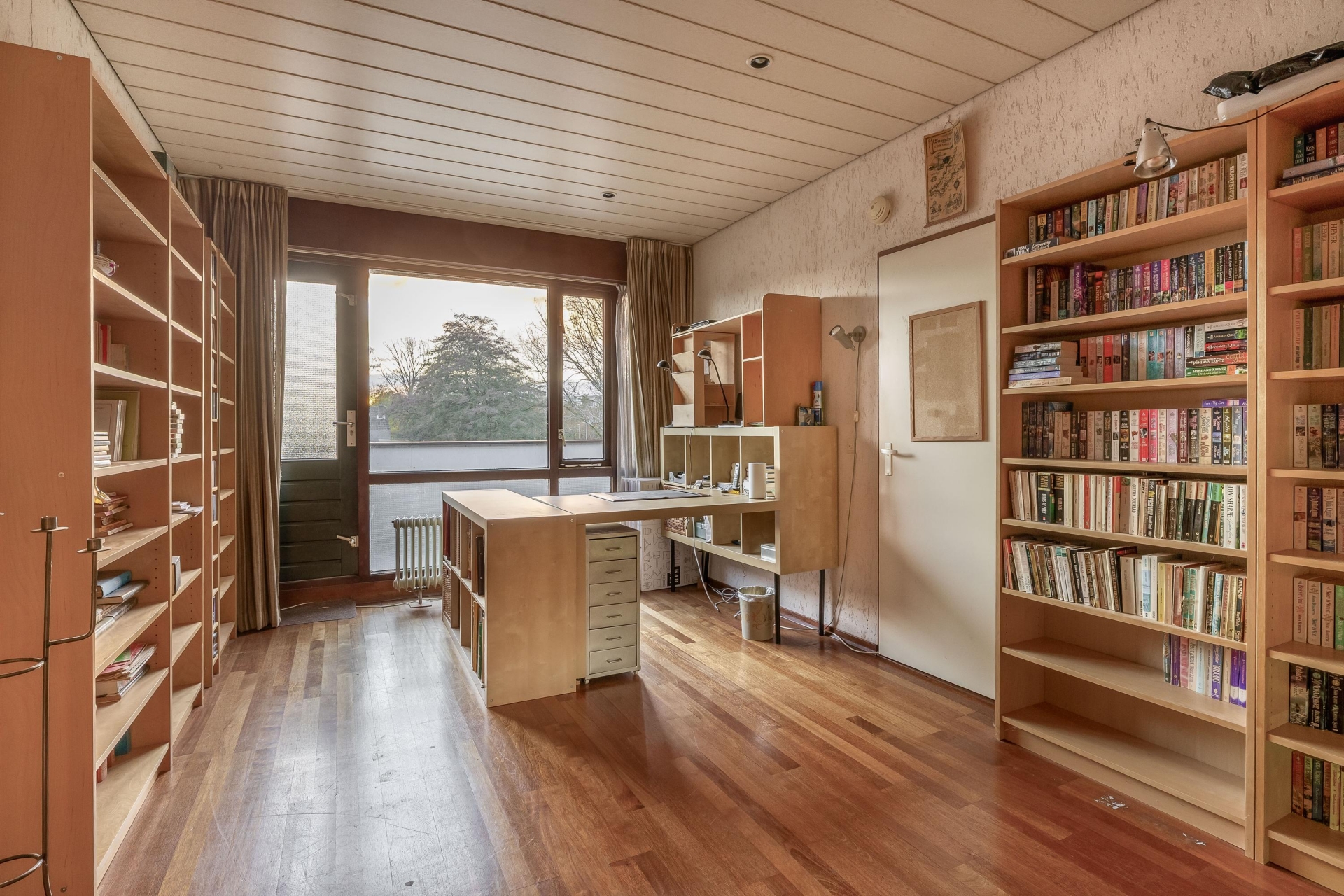 Op de eerste verdieping zijn vier goed bemeten slaapkamers te vinden, waarvan er een in gebruik is als werkkamer. Deze masterbedroom is ideaal in gebruik als ouderslaapkamer. De twee badkamers maken het ochtendritueel een stuk efficiënter – geen wachtrijen meer voor de douche! Op de tweede verdieping vindt u nog een royale kamer welke thans in gebruik is als bibliotheek en werkkamer. Hier zijn met enkele eenvoudige aanpassingen twee slaapkamers te realiseren. Op deze verdieping is er tevens toegang tot een kleine bergvliering.
