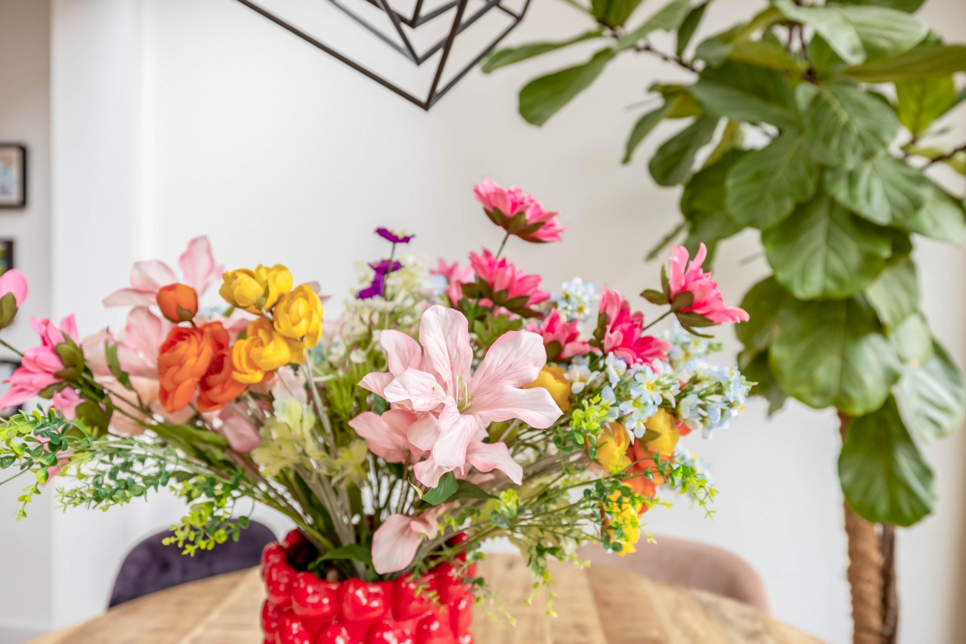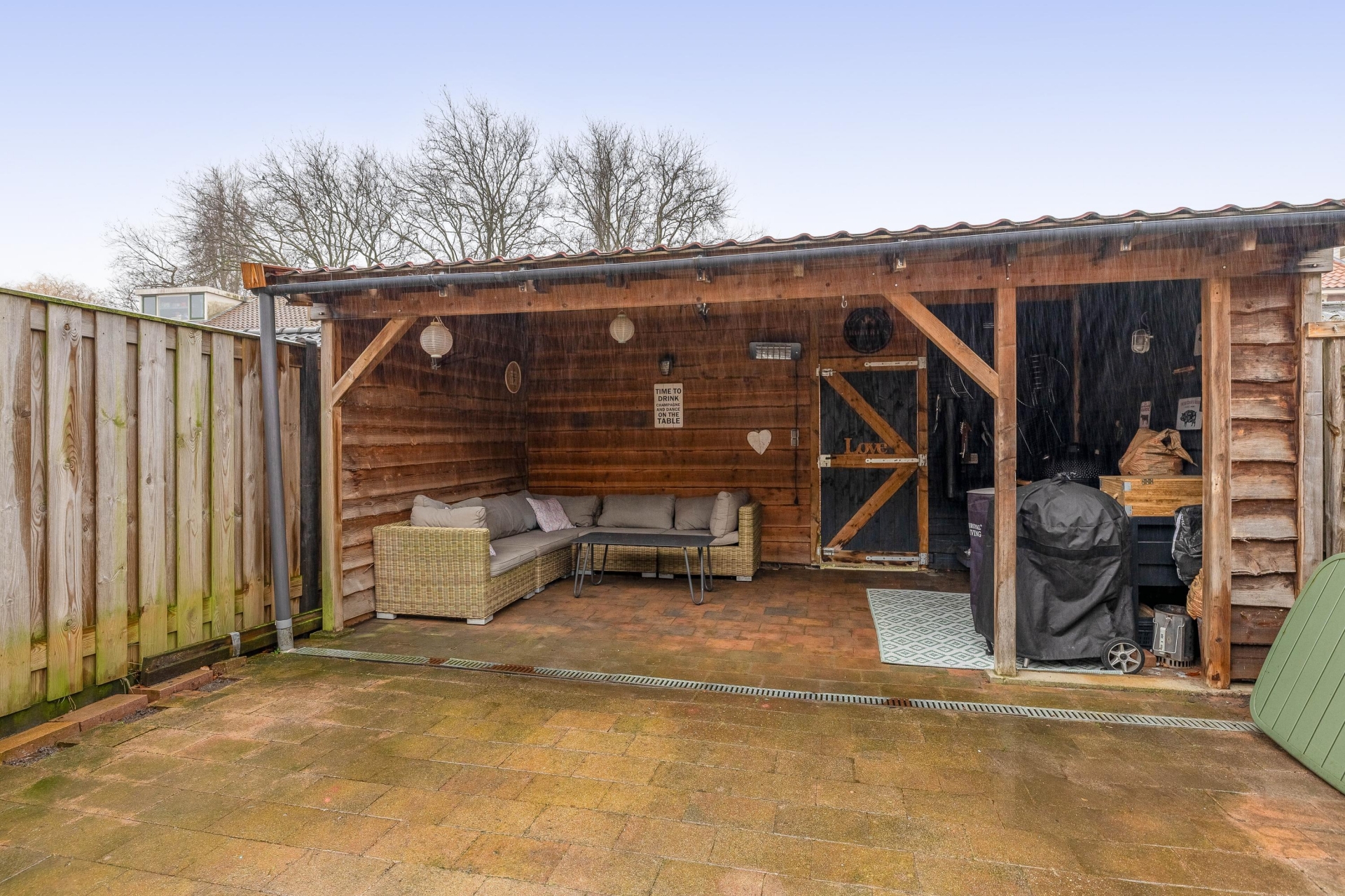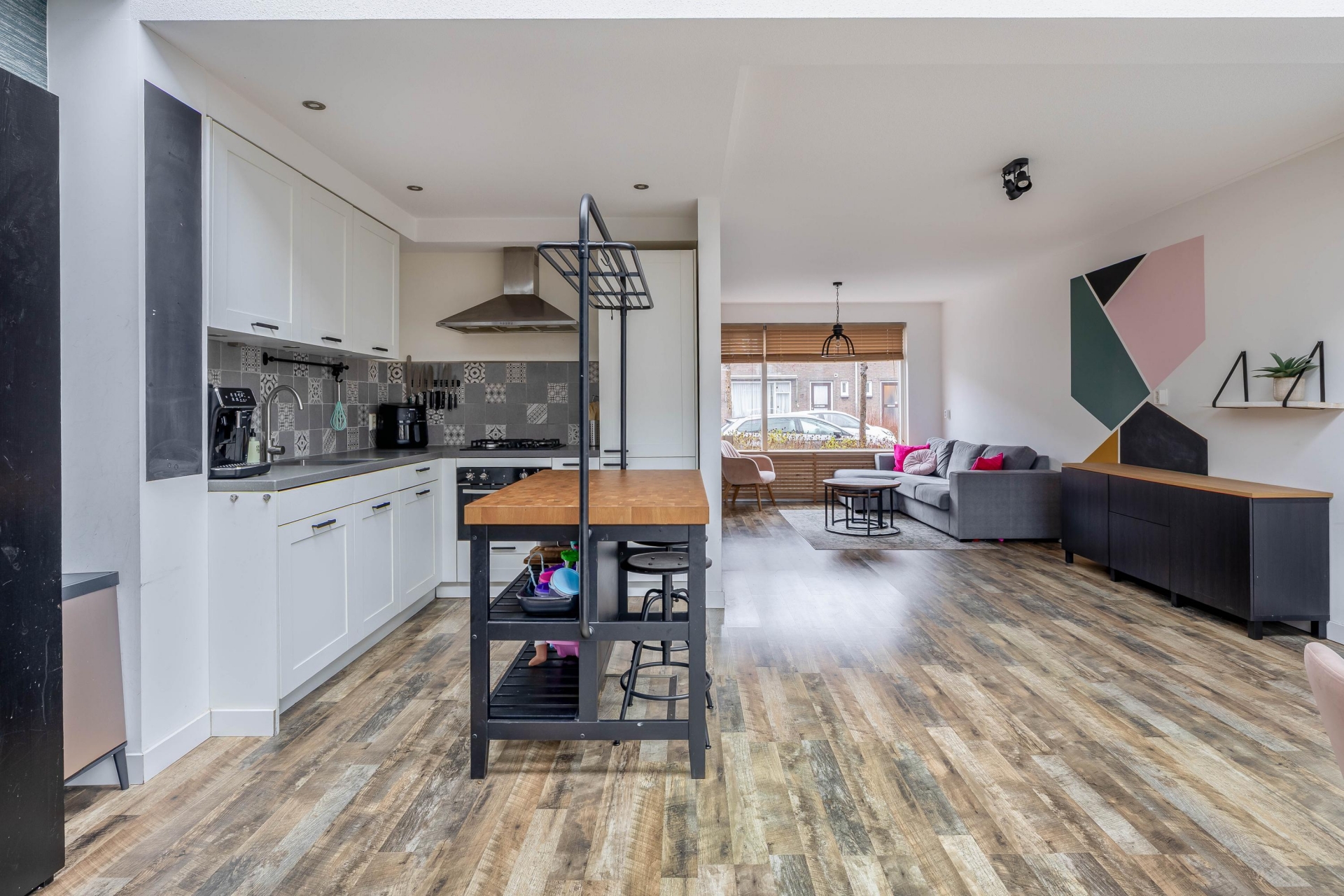 De begane grond is uitgebouwd en voelt ruim en licht aan, mede dankzij de lichtstraat in de uitbouw aan de achterzijde. Overdag komt het daglicht naar binnen en ’s avonds zorgt de indeling voor een warme, gezellige sfeer. Er is ruimte voor een comfortabele zithoek én een grote eettafel. De open keuken aan de achterzijde is uitgevoerd met diverse inbouwapparatuur waaronder een vaatwasser, combi-oven, kookplaat en afzuigkap. De afwerking van de woning is modern en verzorgd, waardoor je hier zonder klussen kunt wonen. Vanuit de uitbouw loop je via de dubbele openslaande deuren direct de tuin in, wat binnen en buiten mooi met elkaar verbindt. De tuin is voorzien van een fraaie loungehoek met overkapping en een berging.