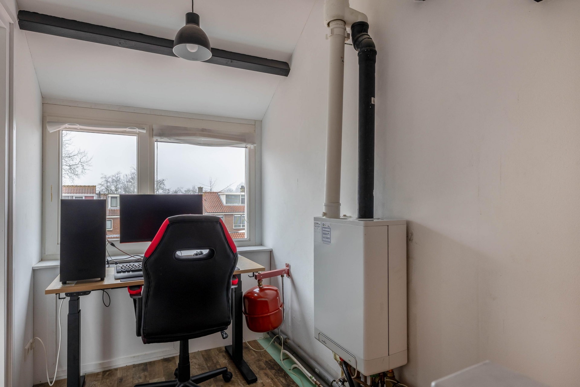 Dankzij de nokverhoging met dakkapellen op de 2e verdieping is ook hier een volwaardige 3e kamer ontstaan, met extra licht en bergruimte achter de knieschotten. Een fijne plek voor wie thuiswerkt of juist behoefte heeft aan een rustige slaapkamer.