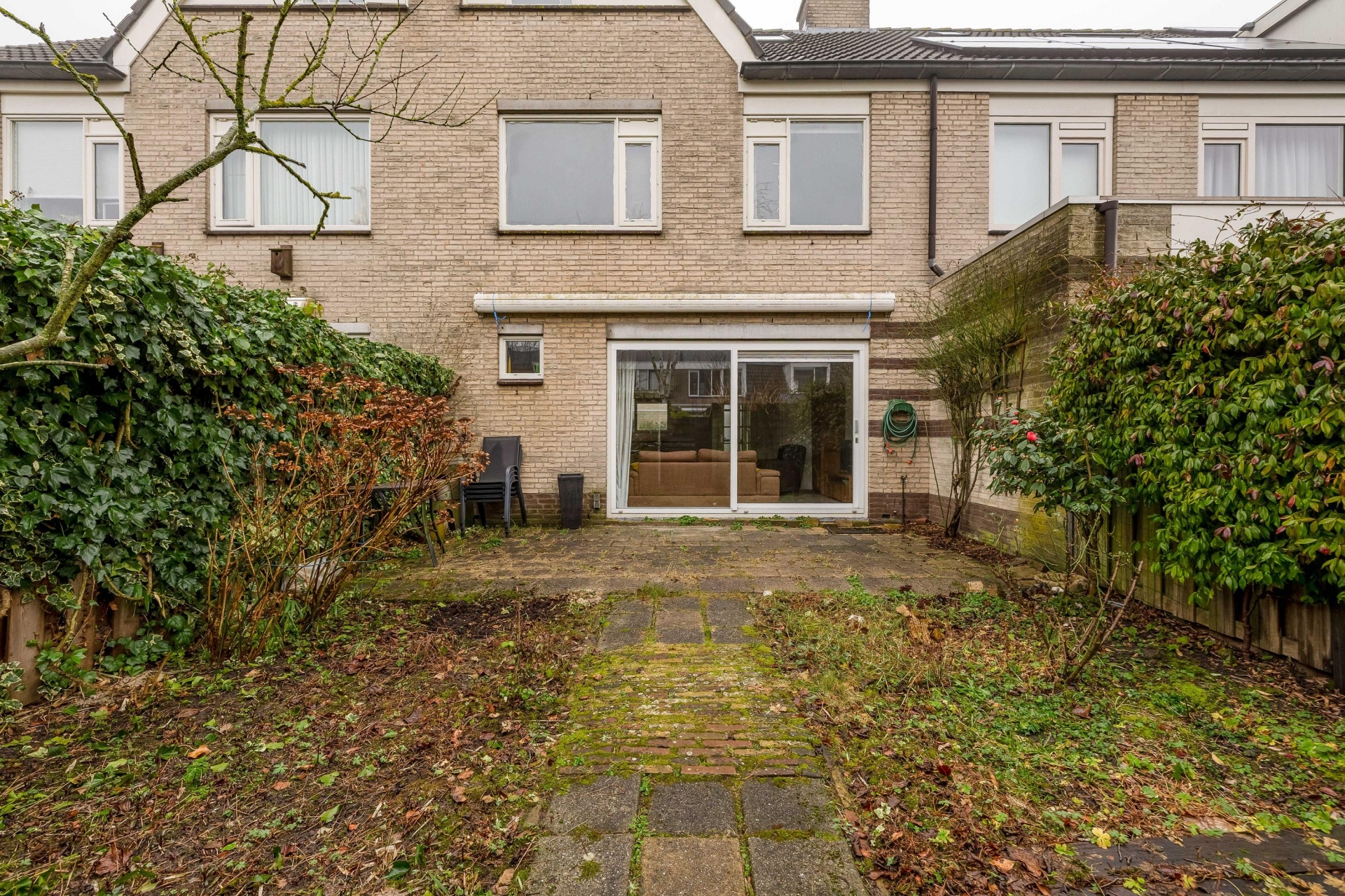 Aan de achterzijde van de woning is via een schuifpui toegang tot de achtertuin met een stenen berging.
