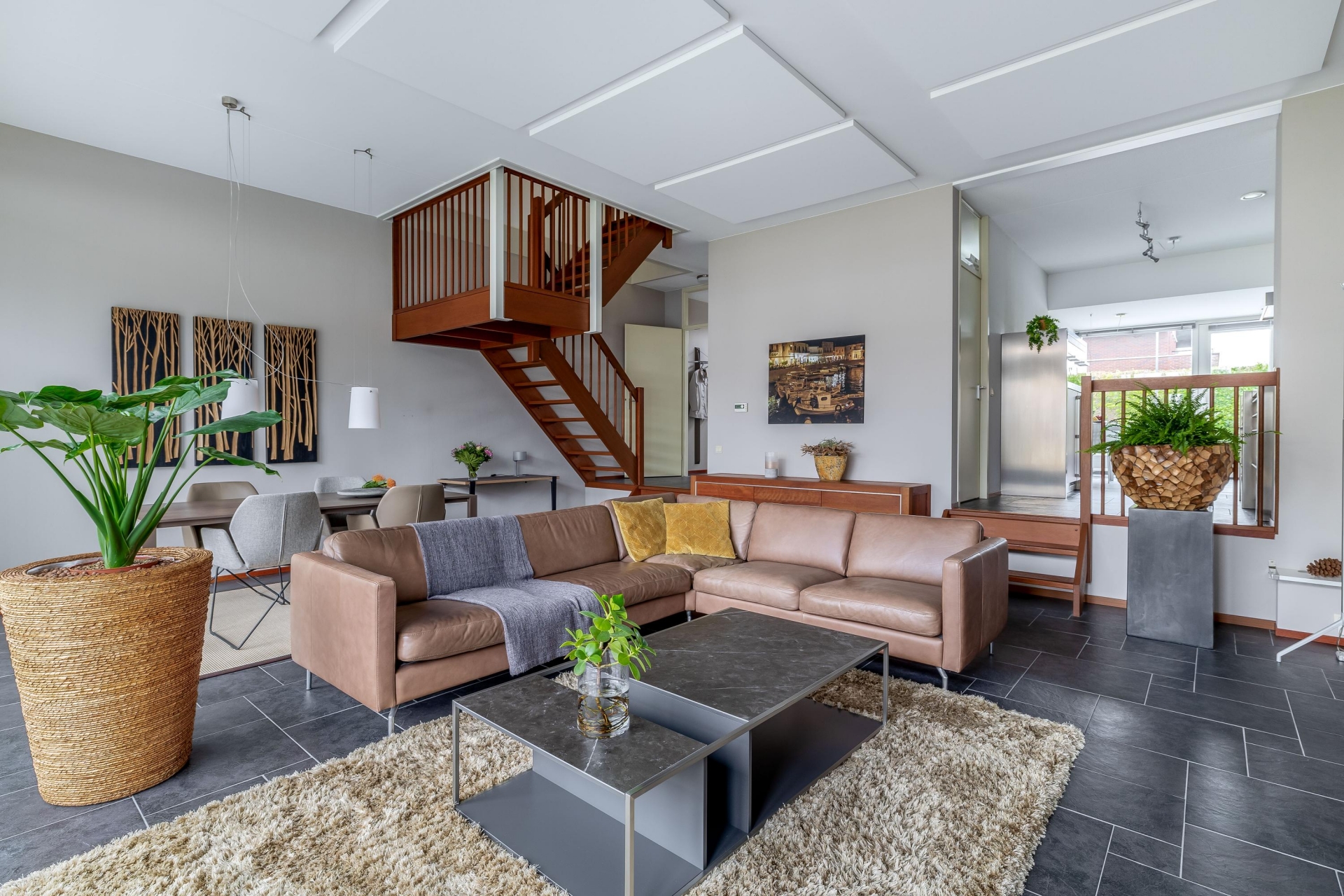De indeling is speels door het split-level niveau maar praktisch door de grote ruimtes. De woonkamer staat in open verbinding met de eetkamer, waar je met gemak een grote eettafel kwijt kunt. Dankzij de ligging op het westen geniet je hier en in de tuin volop van de middag- en avondzon. De moderne afwerking en de goede onderhoudsstaat zorgen ervoor dat je hier zonder klussen kunt intrekken. Alles voelt verzorgd en klopt gewoon.