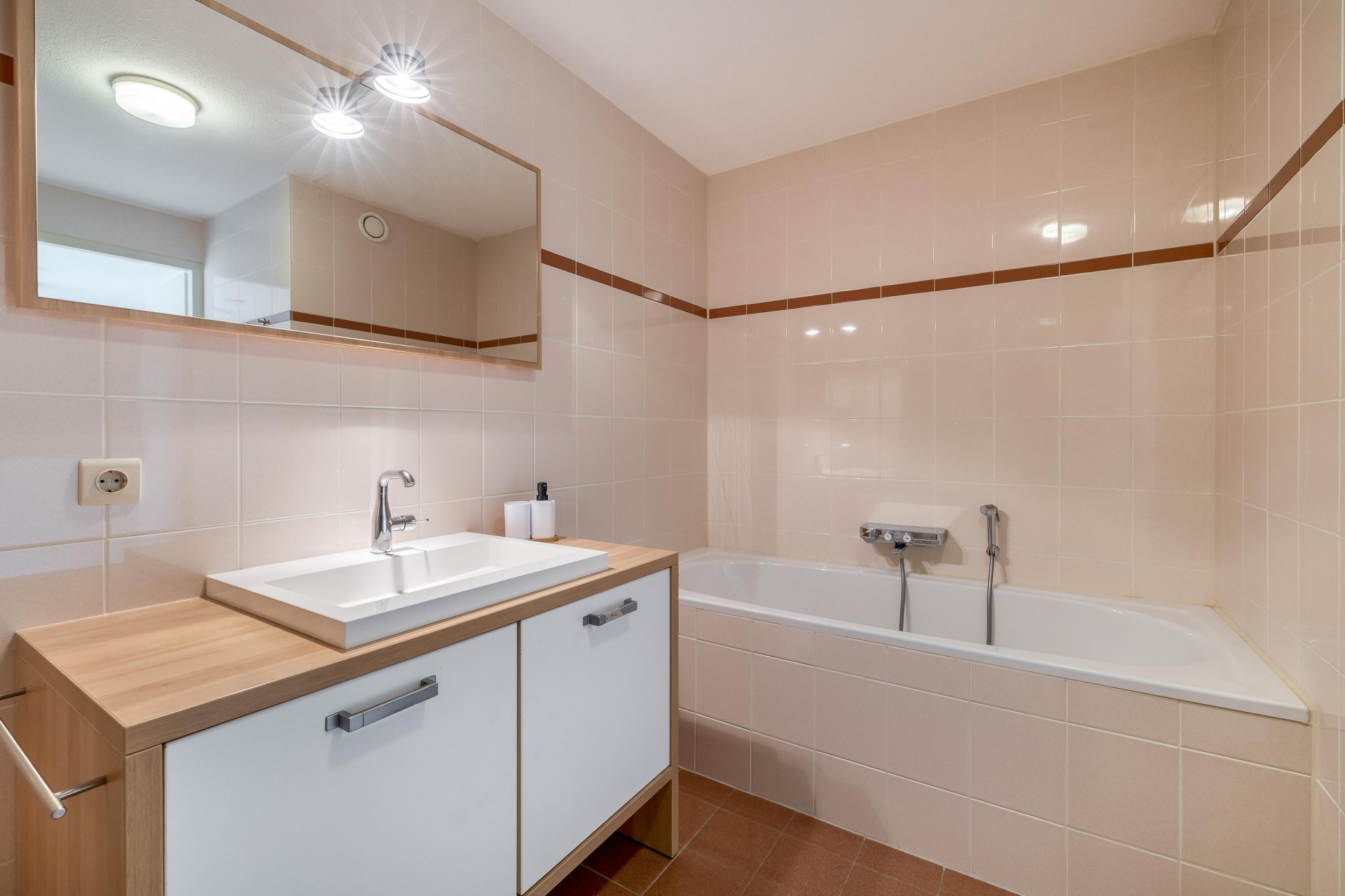 De badkamer is compleet uitgevoerd met een ligbad, separate douche en wastafelmeubel. Alles is netjes onderhouden en biedt een fijne basis. Zowel boven als beneden is er een apart toilet. Daarnaast is er voldoende bergruimte aanwezig in het huis: op de begane grond is een ruime berging, toegangelijk vanuit de keuken, de hal en met een deur naar buiten.