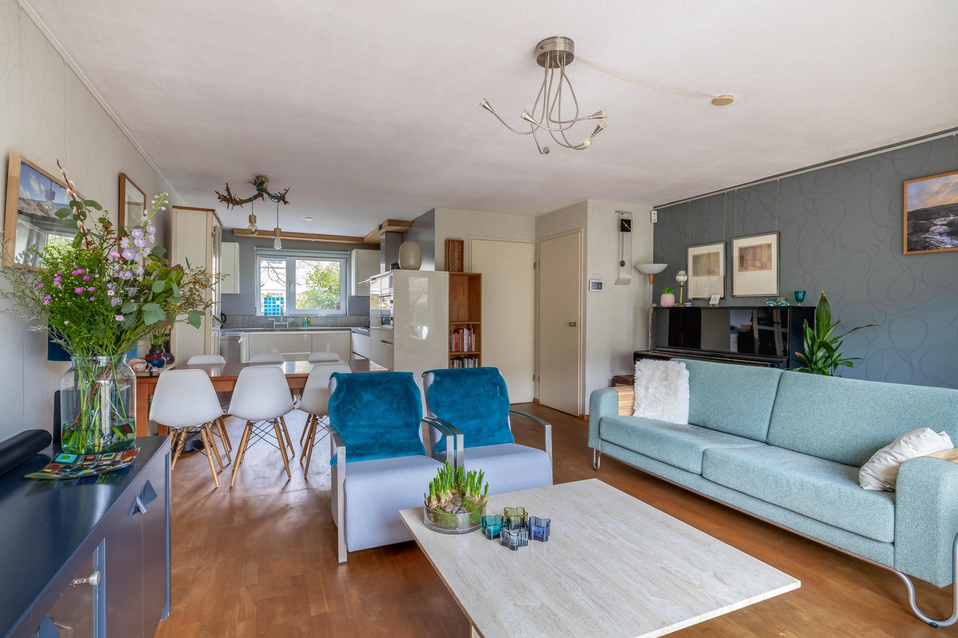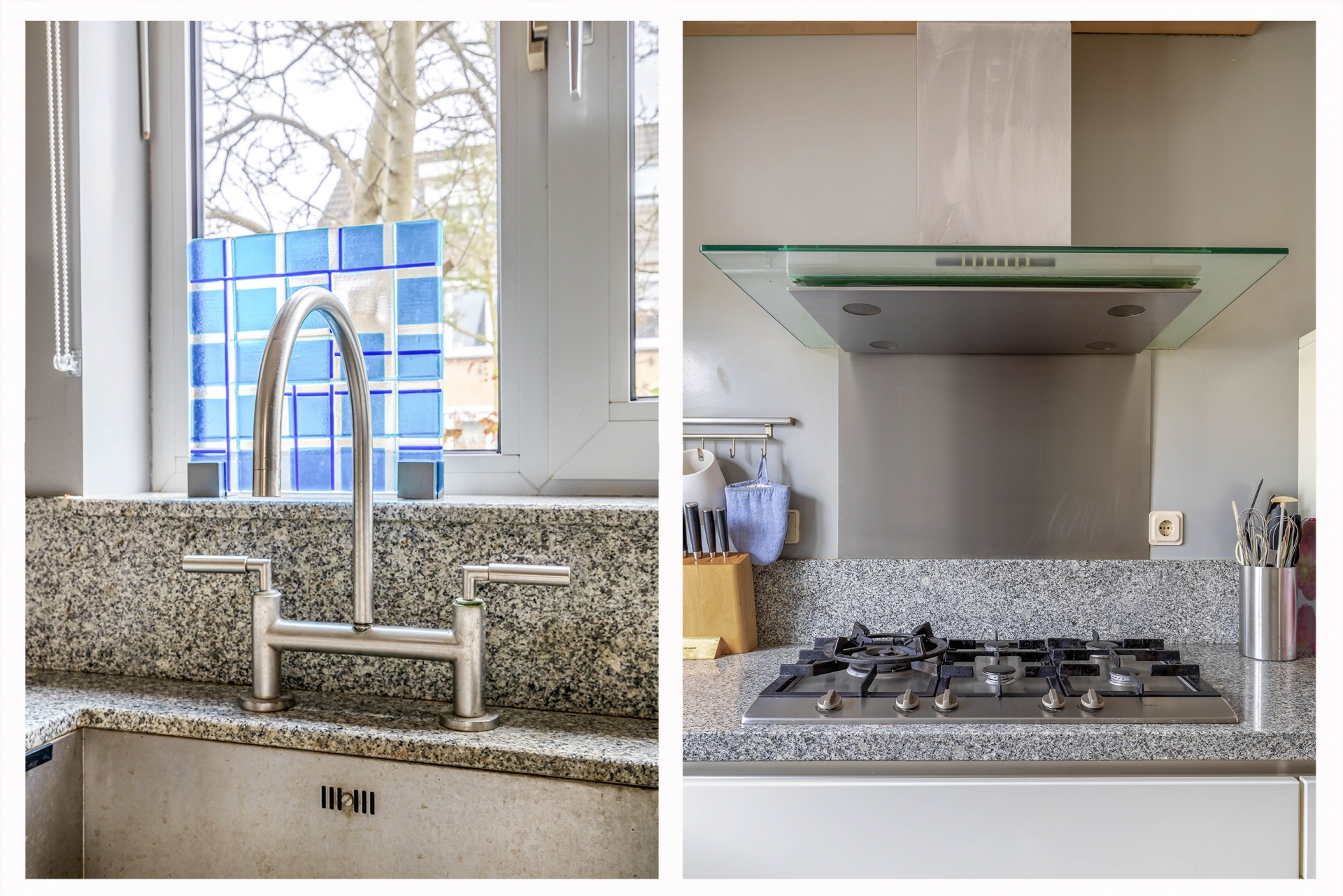 Via de entree komt u in de hal met toilet, meterkast en trapopgang naar de eerste verdieping. Vanuit de hal betreedt u de ruime, tuingerichte woonkamer met grote raampartijen die zorgen voor veel lichtinval. Aan de voorzijde bevindt zich de open keuken in praktische L-opstelling, voorzien van diverse inbouwapparatuur: een vaatwasser, 5-pits gaskookplaat, combi-oven en koelkast. De gehele begane grond is afgewerkt met een fraaie parketvloer.